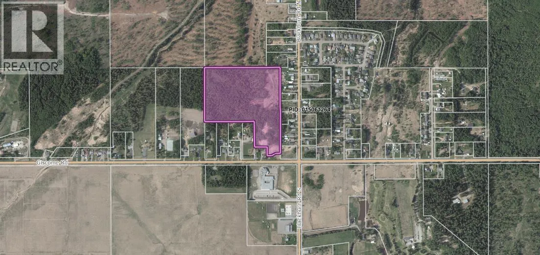 An exceptional acreage parcel directly across from Blackburn Elementary School with municipal services available at the lot line on Giscome Road. The property has direct frontage on Giscome Road and is also linked to Blackburn Road through an adjacent City-owned lot, offering flexibility for future access. A sanitary line runs nearby, adding further servicing options. With multiple neighboring parcels on the market, this location presents a rare chance to assemble a substantial landholding just 10 minutes from Prince George city center, with excellent access to key routes east of the city. Buyers are encouraged to contact the City of Prince George for servicing details and subdivision potential. (id:27476)