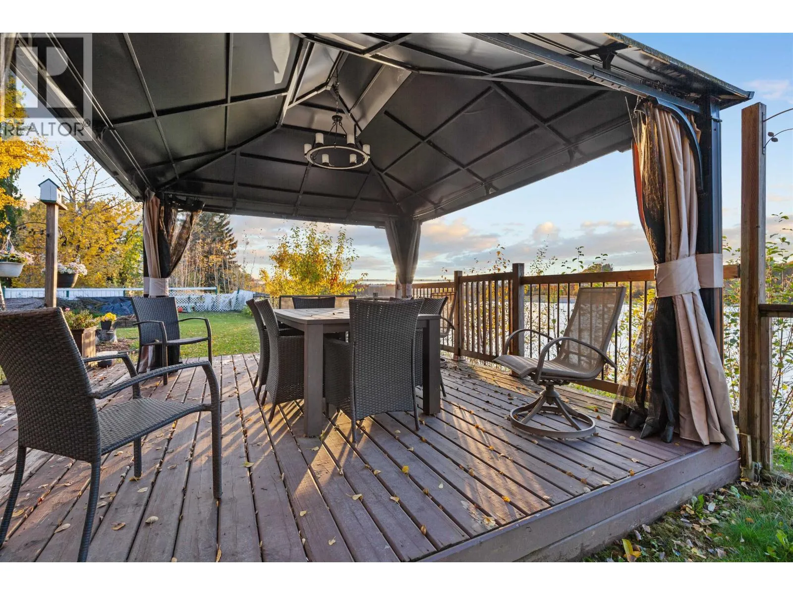 * PREC - Personal Real Estate Corporation. Beautifully updated 4-bed, 2-bath riverfront home on a stunning 0.5-acre lot. Enjoy a bright open-concept layout with large windows showcasing serene water views. The spacious 12x28 primary bedroom opens onto the upper deck, offering the perfect spot to unwind. The main bathroom features a modern walk-in shower. Outside, the landscaped yard includes cherry and pear trees, strawberry, saskatoon, domestic blackberry and honey berry patches as well as raised garden beds. Also includes a 12x20 shelter, green house and a 2 person hot tub. Experience peaceful riverside living just minutes from town. (id:27476)