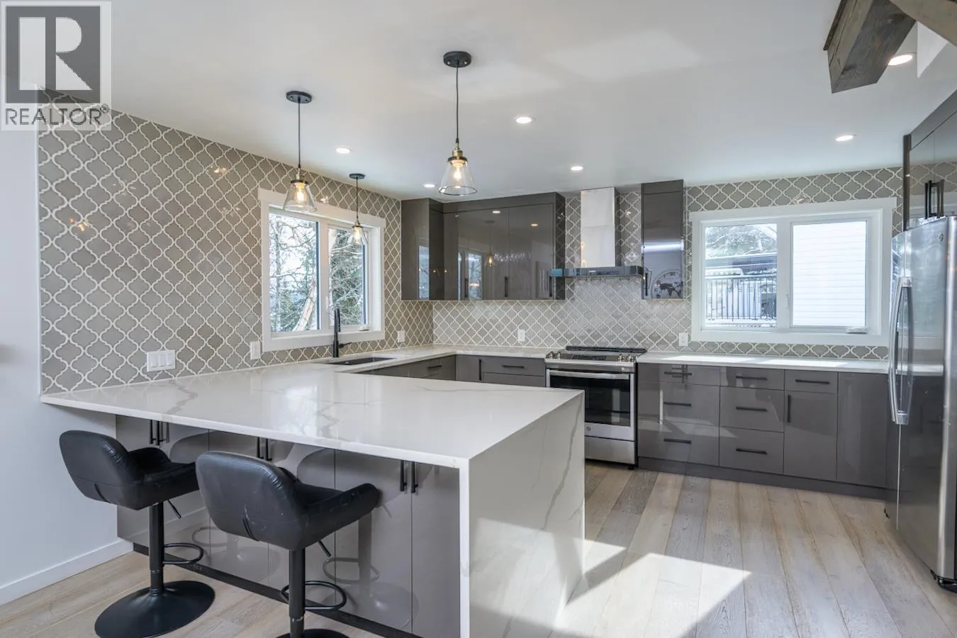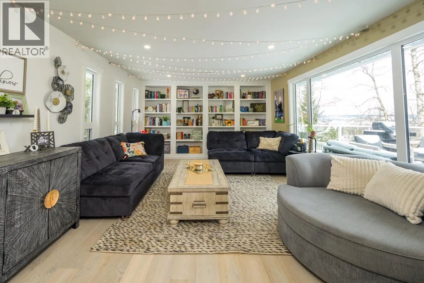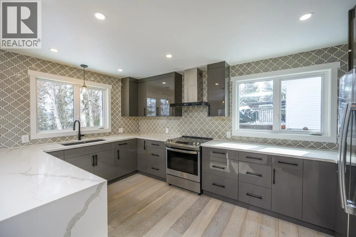 This beautiful architecturally designed home is on 1.15 acres in one of the most prestigious locations in town and boasts stunning 180 degree panoramic city views. An entertainers delight, every room on the main floor takes full advantage of PG vistas including the amazing updated kitchen with modern flat panel cabinetry, diamond quartz counter tops, and chief style prep and cocktail island. Handcrafted solid wood stairs with floor to ceiling glass panels lead to an amazing second floor with 3 large bedrooms including a masterbed with work-from-home office, dressing area, and full 5 piece ensuite. Fully finished basement has a gym and walks out to a fully landscaped and tiered backyard. This is a really cool unique home with way too many extras to list. I was impressed and you will be too. (id:27476)