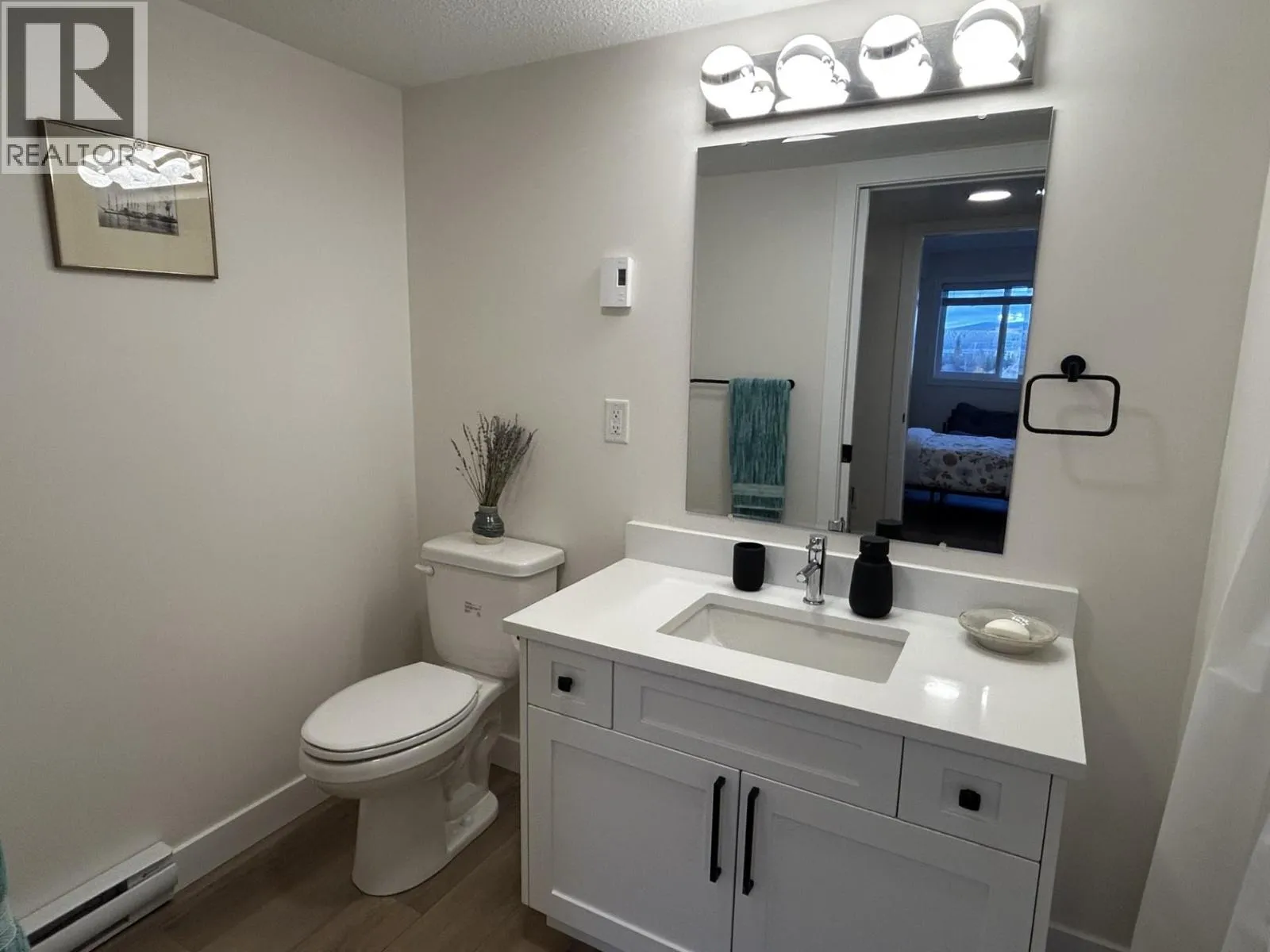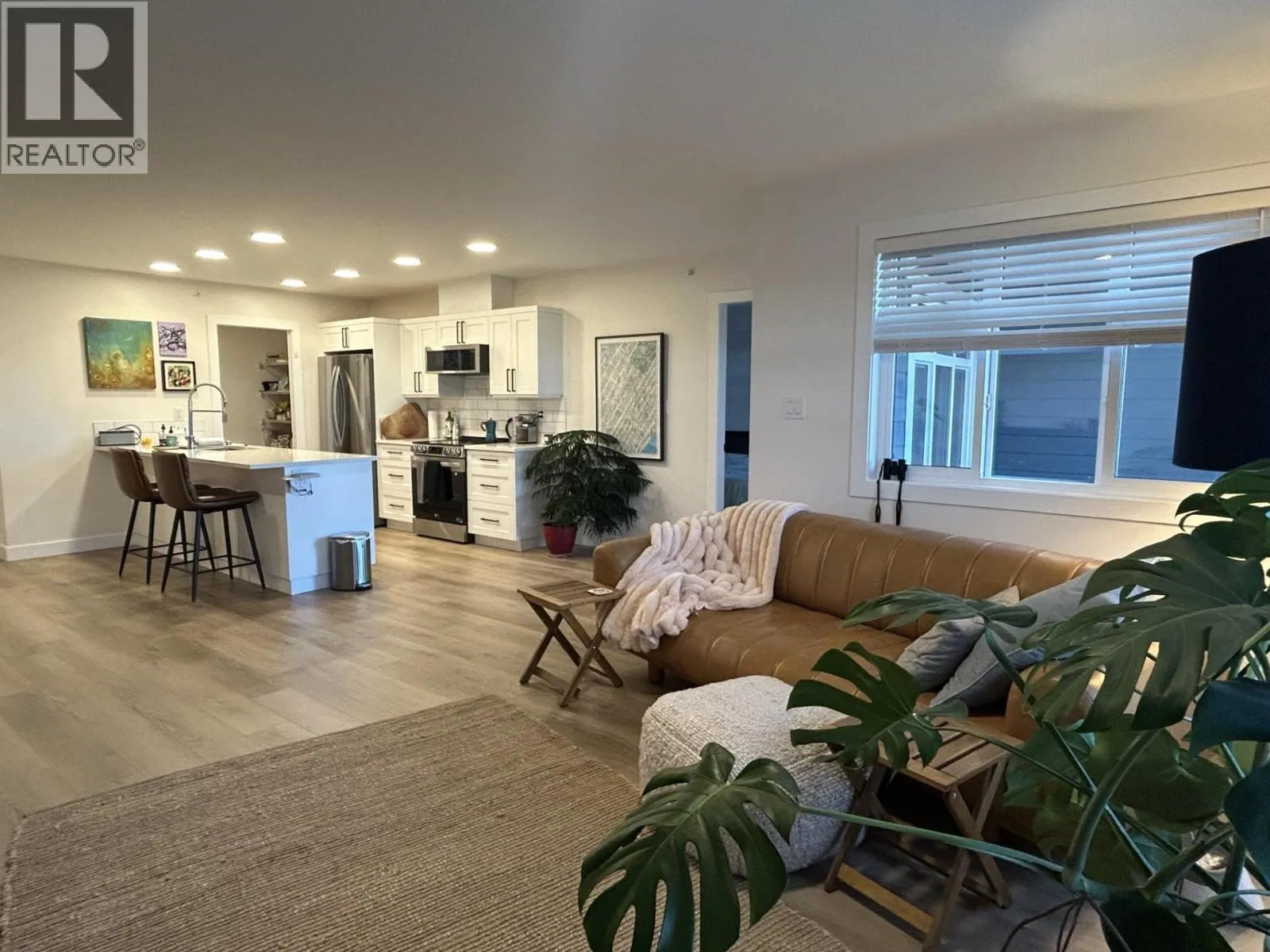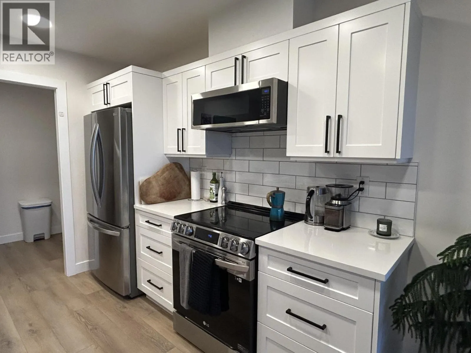 Desirable TOP FLOOR unit with underground parking and elevator. Stylish kitchen is equipped with quartz countertops, a large island peninsula, and a spacious pantry--ideal for cooking, entertaining, and keeping things organized. Step out onto the expansive covered sun deck and enjoy views of Tabor Mountain, perfect for relaxing or hosting. Both generously sized bedrooms feature full ensuites, with the primary offering a walk-in closet. You'll also find a convenient powder room for guests and in-suite laundry for added ease. Closet to all major amenities, UNBC, CNC and Ginters field. All measurements are approximate and must not be relied upon without further verification. (id:27476)
