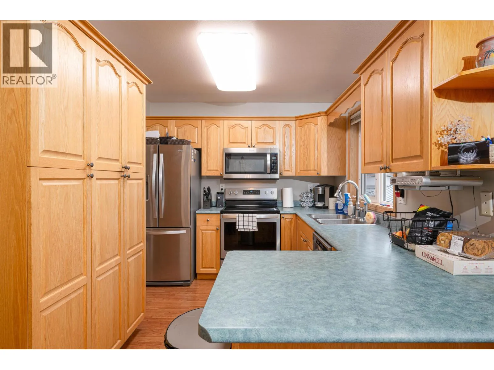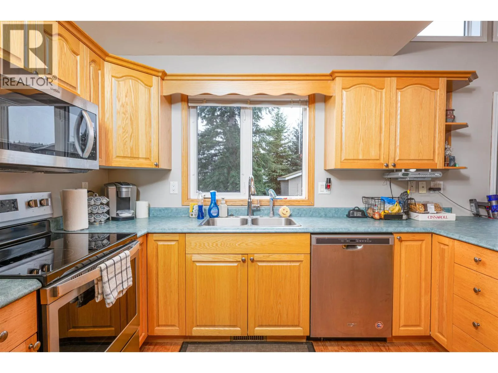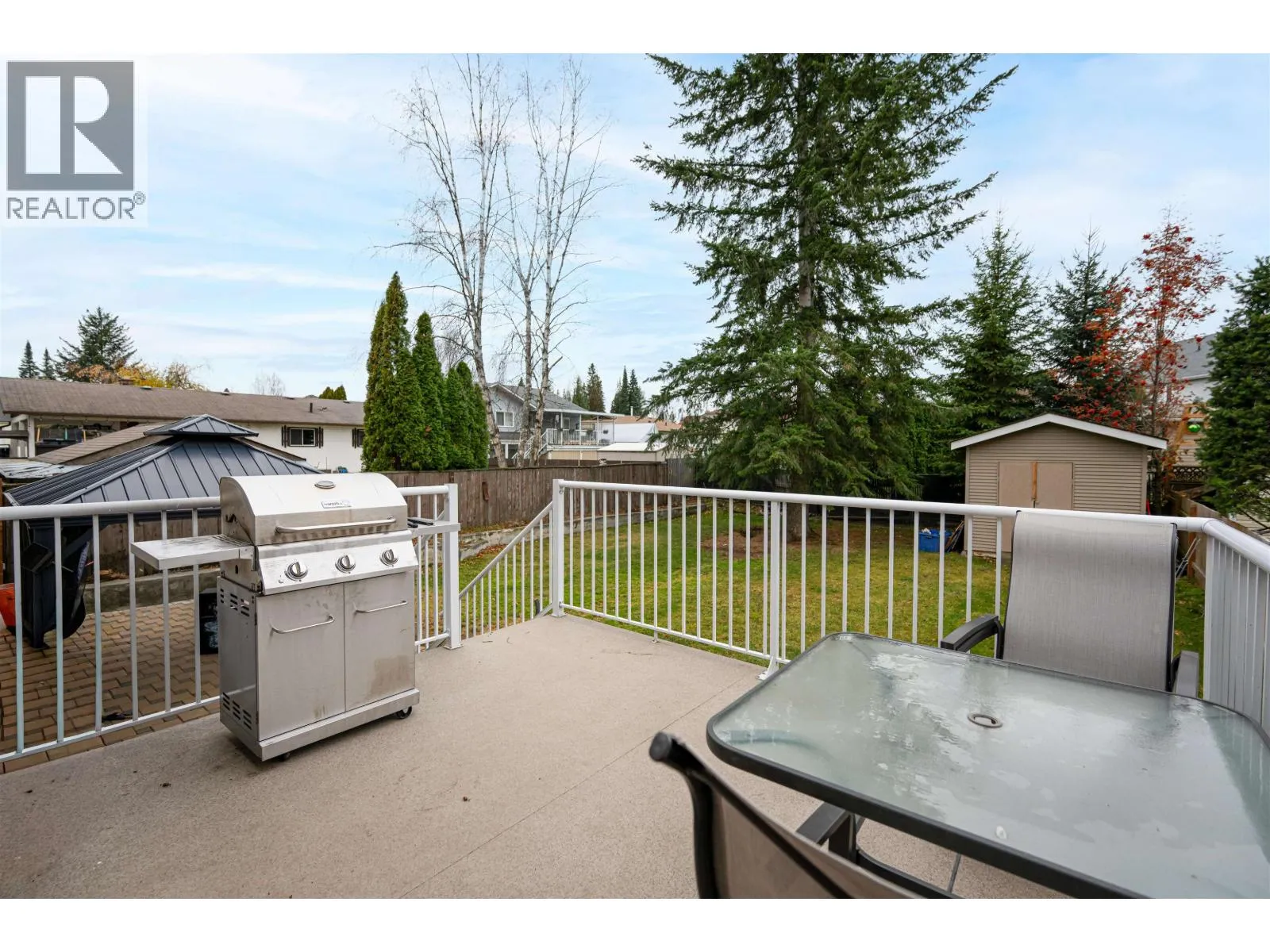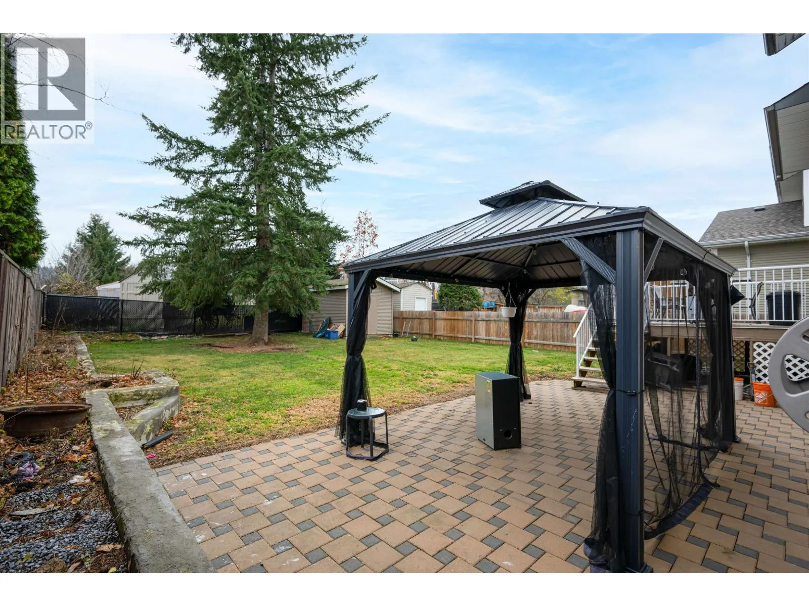 Soaring ceilings and West Coast contemporary design welcome you to this bright, spacious home. Clerestory windows fill the open living and dining areas with light, and garden doors lead to a sundeck and large fenced backyard with interlocking brick patio. The main-floor primary bedroom features a walk-in closet, 4-piece cheater ensuite, and nearby laundry. Upstairs offers two bedrooms with walk-in closets and a full bath; the lower level includes a large rec room, extra bedroom, bath, and flex space. Central air conditioning. 200 AMP in garage, Updates include a new roof, hot water tank, and furnace. Double garage and fantastic location! (id:27476)