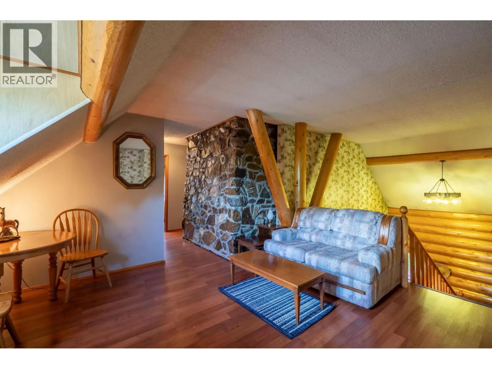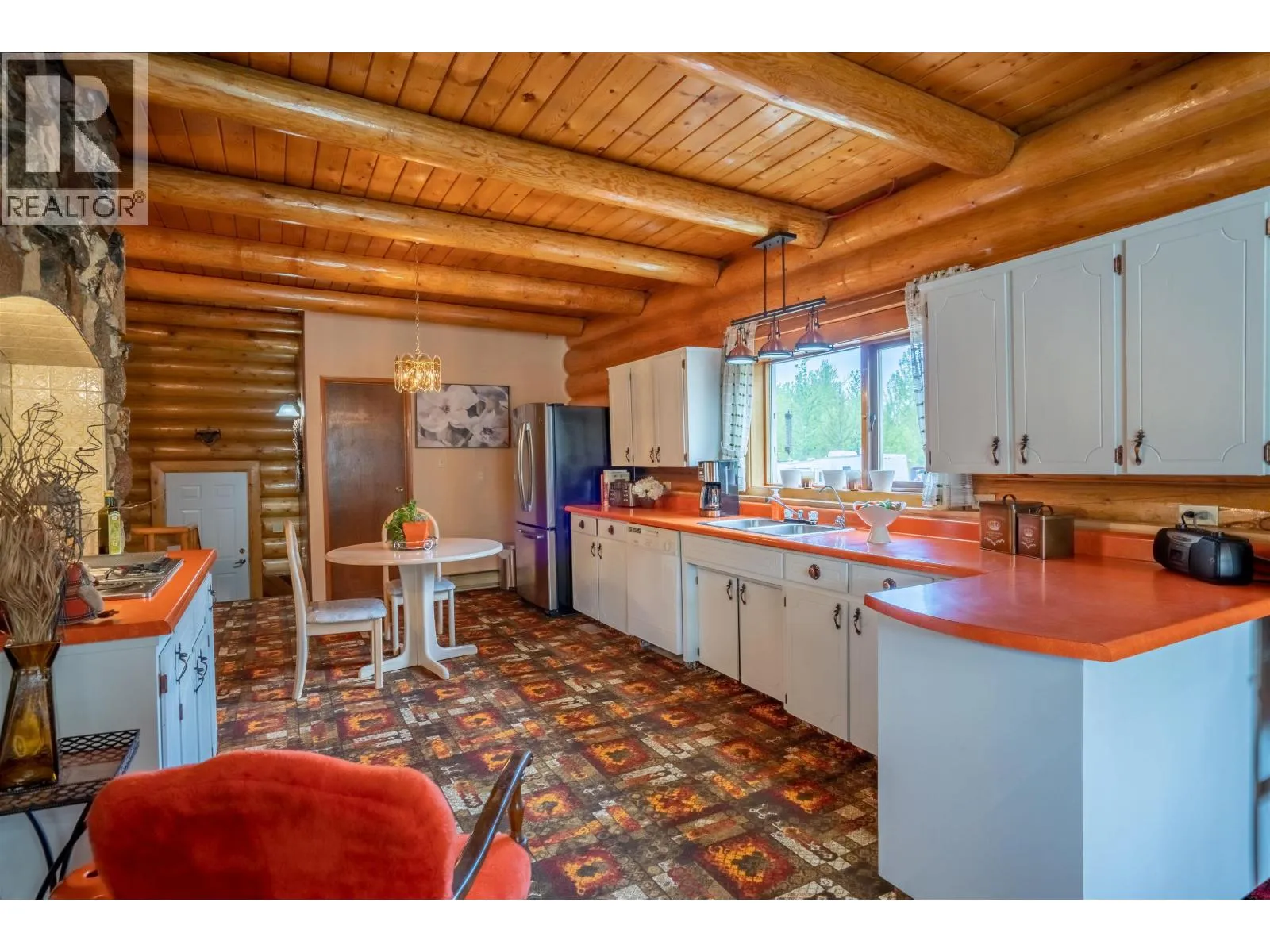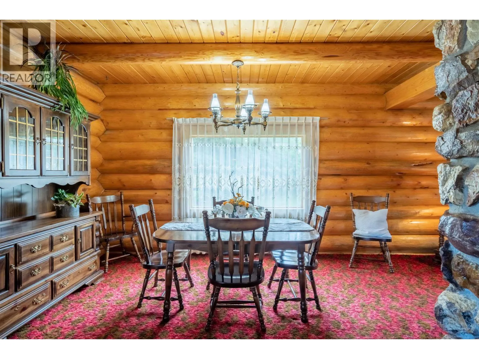 Custom log home just past Stone Creek RV Park and Campground. Beautiful 2-storey log house beside creek w/convenient highway access, plenty of open parking, double garage & a 25 min drive to Prince George. 1.1 acre nicely landscaped, lilac trees strategically placed for privacy, new deck out front of house. Metal roof on house, new insulation in attic. Lg country kitchen w/eating area & separate dining rm. Lg living rm w/floor to ceiling natural stone fireplace (propane insert). Main floor boasts bedroom (or den) and 3 pc bath. Upstairs 3 bedrooms, 3 pc bath, plus bonus area for TV room/den/craft room. Basement is awaiting your ideas, a few walls are up, bring your imagination. Well 25gpm (id:27476)