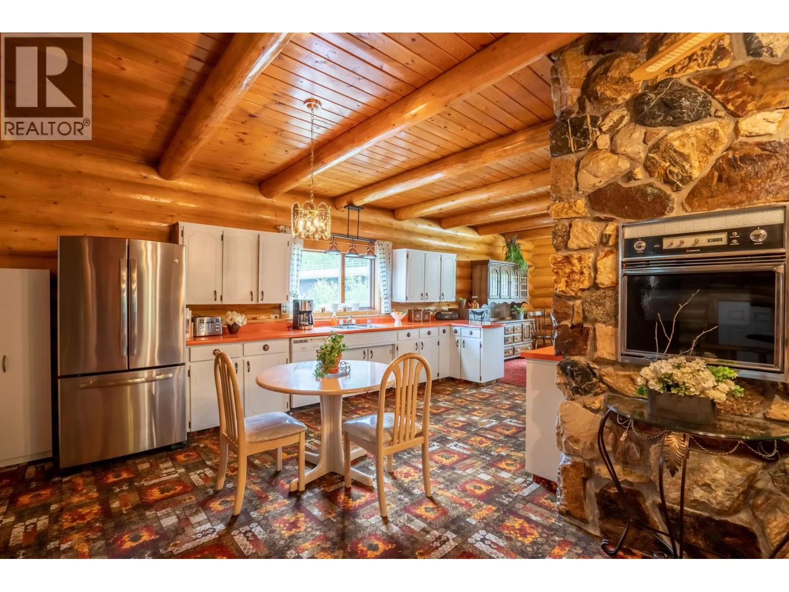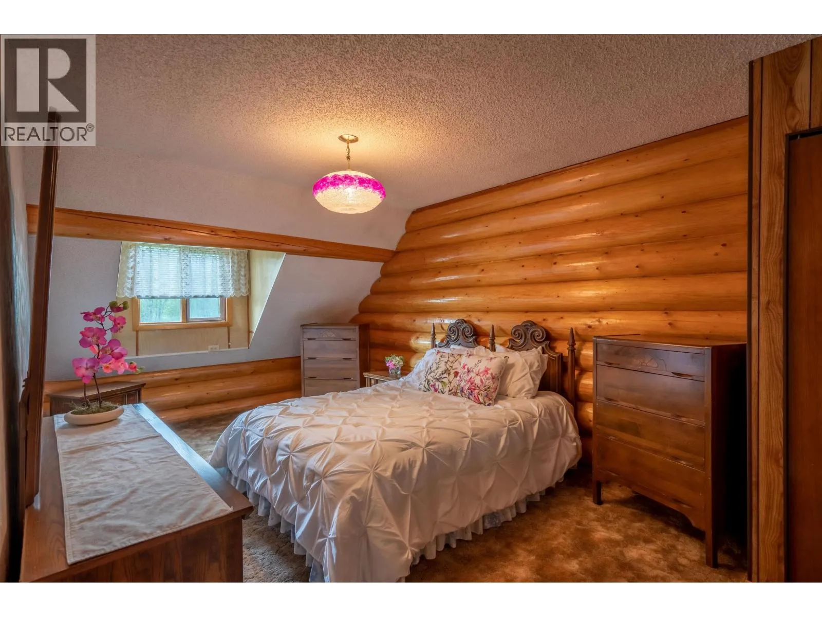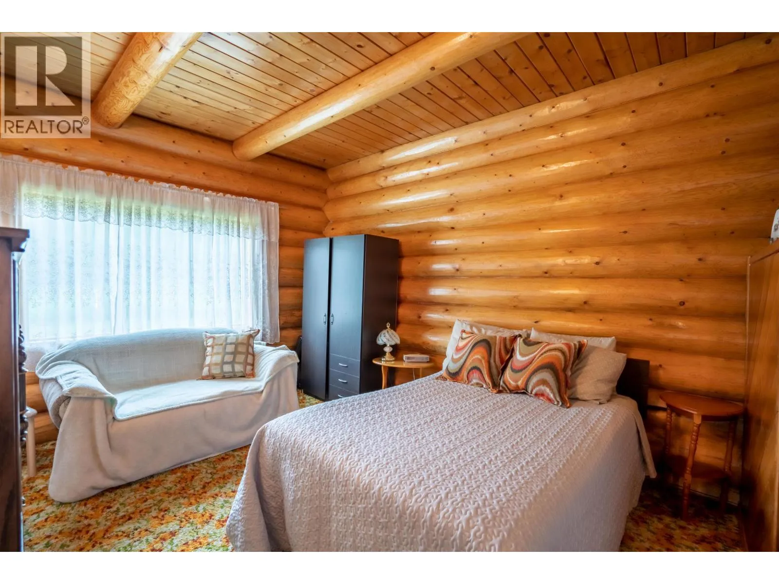 Custom log home just past Stone Creek RV Park and Campground. Beautiful 2-storey log house beside creek w/convenient highway access, plenty of open parking, double garage & a 25 min drive to Prince George. 1.1 acre nicely landscaped, lilac trees strategically placed for privacy, new deck out front of house. Metal roof on house, new insulation in attic. Lg country kitchen w/eating area & separate dining rm. Lg living rm w/floor to ceiling natural stone fireplace (propane insert). Main floor boasts bedroom (or den) and 3 pc bath. Upstairs 3 bedrooms, 3 pc bath, plus bonus area for TV room/den/craft room. Basement is awaiting your ideas, a few walls are up, bring your imagination. Well 25gpm (id:27476)