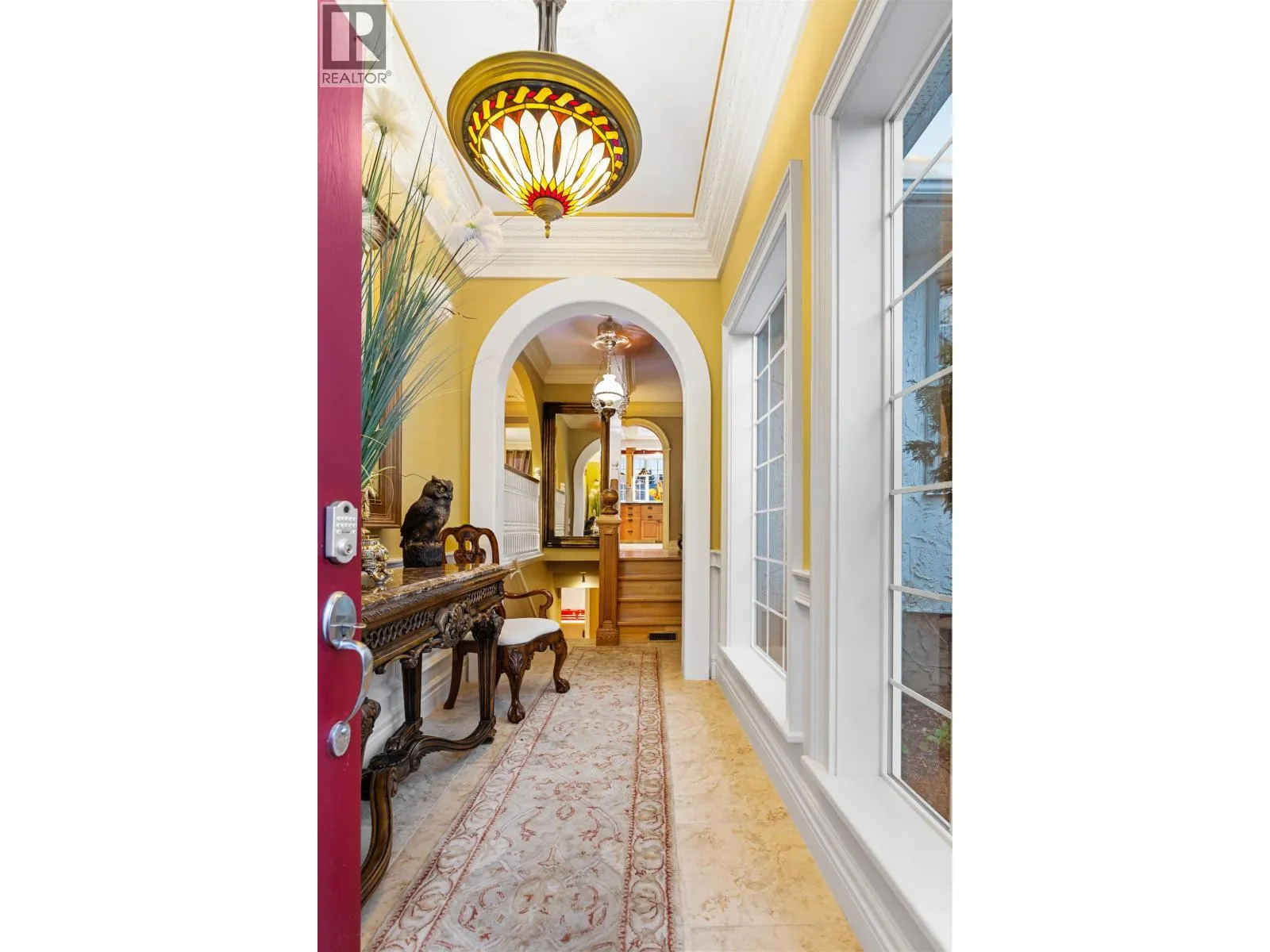 Timeless elegance meets classic charm in this stunning 2,400 sq ft Heritage home. The main level features a grand living room with bay window, formal dining room with garden doors, and a bright kitchen with breakfast nook, elegant pillars, and arched doorways that radiate an old-world sophistication. Upstairs offers two spacious bedrooms, each with its own 2-piece ensuite, plus a lovely 4-piece main bath. The lower level adds a large rec room with outside basement entrance, third bedroom, another full bath, and abundant storage. An opulent and graceful home that exudes class and character at every turn. Outside enjoy a carport, fenced yard, gardens, heated / powered workshop, and the close proximity to Moores Meadow! (id:27476)