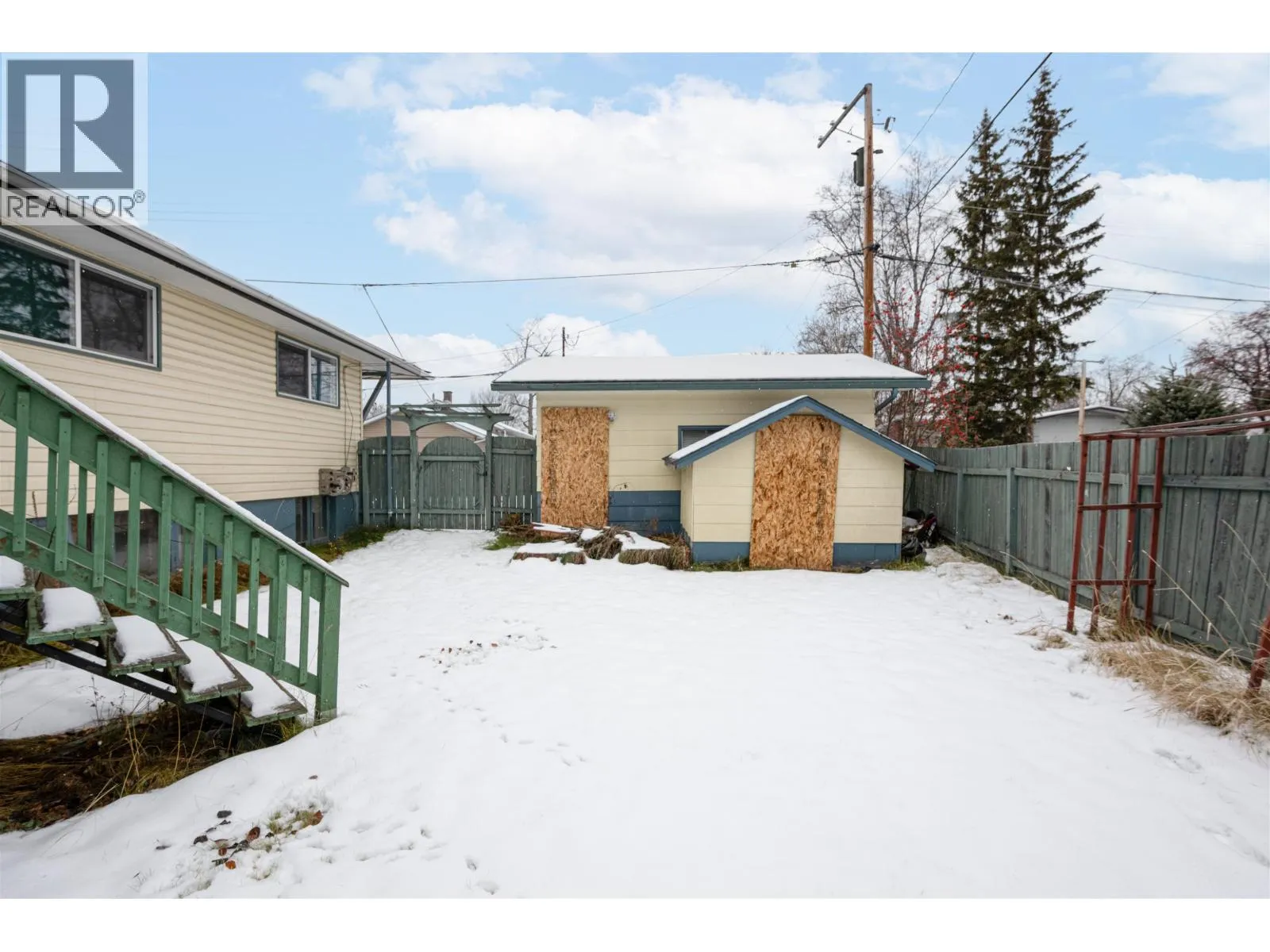 This centrally located family home offers plenty of space and flexibility. The upper main includes 3 bedrooms and 1 bathroom, a large living room featuring a wood burning fireplace and a functional kitchen, with oak hardwood floors throughout the main level. The primary bedroom features access to the deck. The basement includes a 2 bedroom suite, making it ideal for extended family or as a rental suite for additional income. A detached garage and fully fenced backyard provide practical benefits for families, offering secure parking, storage, and room for kids or pets to play. Located near a school and close to everyday amenities, this property is well-suited for those looking for a comfortable home with the opportunity to add value through future updates or improvements. (id:27476)