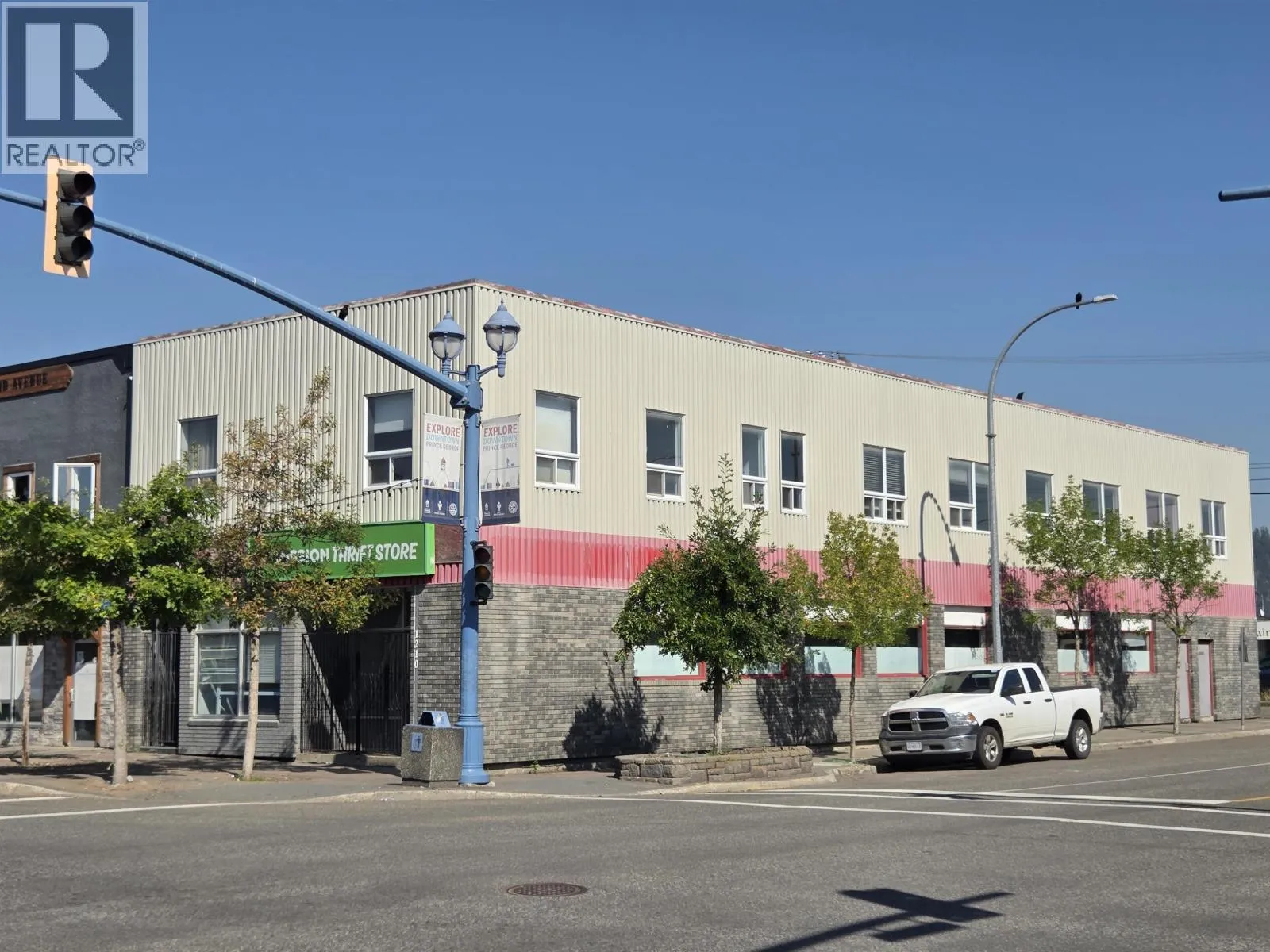 Solid former bank building located downtown amongst several good businesses with excellent C1 zoning, which allows about the biggest range of uses of any commercial zoning in Prince George, making it great for an owner occupied businesses, a rental property or even a residential rental with reno's. Encompassing the entire 3,300 square foot corner lot, this building features an open retail layout, a covered double-door entrance, a lunchroom, and an authentic bank safe. The partial basement is a great bonus, offering extra storage, two additional rooms perfect for offices or a break area, and two multi-stall washrooms. The second floor has three washrooms, a lunch room, seven private offices, a couple of big open rooms plus storage and is accessible via two separate stairways: one from 3rd Avenue and another from Dominion Street. Information, lot size, building size approximate and to be verified by buyers if deemed important. (id:27476)