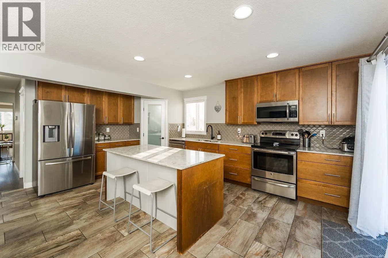 Beautiful END unit townhome in Vida complex. 3 bdrms up with 4th bdrm & studio suite on ground floor or use as a flex room. Easy-care laminate & tile floors throughout the main floor. The kitchen boasts solid surface counter tops, tiled back splash & large pantry. Awesome x-large west-facing sundeck. Spacious living room with additional south facing windows & feature wall with electric fireplace. Primary bdrm with walk in closet & 4 piece ensuite. Upper level laundry with newer washing machine & dryer. Fridge, dishwasher, & microwave have also been updated. Fresh paint in various rooms. Single car garage, but the ability to park 3 cars across the driveway (as per seller). All measurements approximate. Convenient location close to schools, shopping, transit. (id:27476)