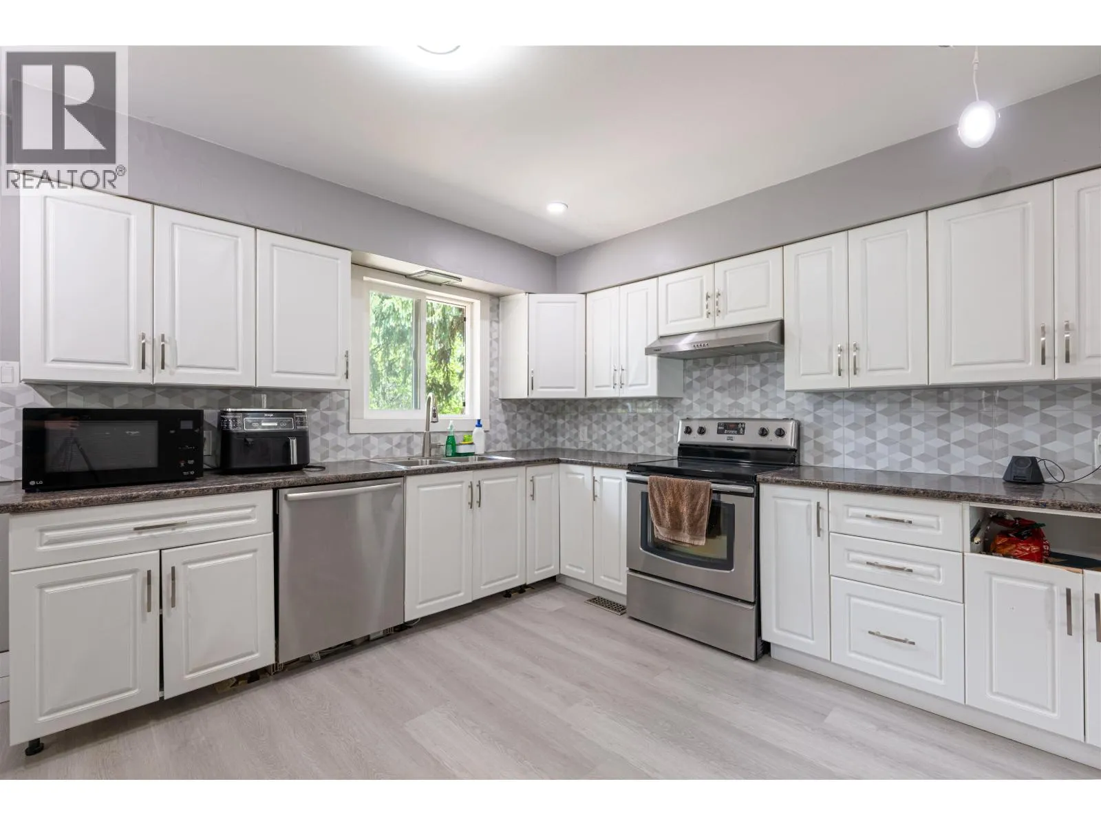 Fantastic location! 2910 Charella Dr is located close to all amenities in the desirable Charella area. Are you looking for a one level home for easy living? This home offers a great layout with a large living room, open kitchen space with updated kitchen, tile backsplash, vinyl plank flooring, SS appliances leading to a laundry and outdoor access to a very large back deck for your BBQ's. Two bedrooms, one bathroom. The second bedroom has an outside entrance for potential home office/mudroom if desired. Recent updates include furnace, roof, windows, exterior doors, lighting, trims/base boards and painting. Great updated, one-level home with single carport on a 9095 sq ft lot RS1 zoning. All measurements approx; buyers to verify. (id:27476)