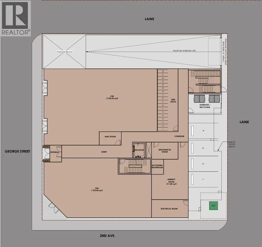 On over 12,000 square feet this lot has endless possibilities. Zoned C1 this zoning code allows for a mix of uses for the central business area for the city. Paved parking lot in Downtown PG with a convenient location across from the court house. Multiple income streams from Impark and Pattison Billboards. Redevelopment potential with sought after corner lot location - preliminary site plans available for a mixed use residential and commercial development. Great holding property with future redevelopment potential. (id:27476)