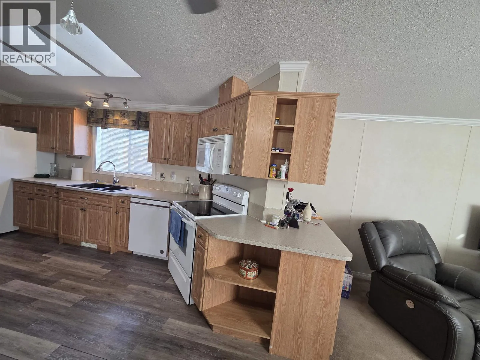 Welcome to this beautifully maintained 2008 mobile home located in a desirable park just west of town, close to schools, shopping, and everyday amenities. This bright and inviting home features an open-concept layout with a spacious living area and a gorgeous kitchen that offers plenty of cabinetry and prep space-perfect for both daily living and entertaining . With 2 bedrooms and 2 full bathrooms, the thoughtful floor plan provides comfort and privacy for residents and guests alike. Major updates bring peace of mind, with all appliances, the furnace, hot water tank, and air conditioning replaced within the past five years. Step outside to enjoy a nicely kept yard, convenient storage shed, and ample parking. A fantastic opportunity for affordable, low-maintenance living in a great location (id:27476)