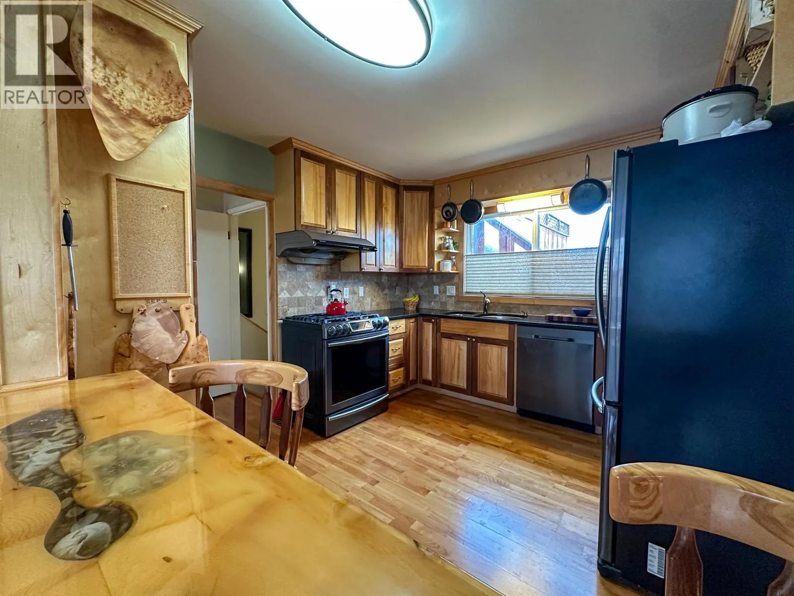 This 5 bedroom, 3 bathroom home has mind blowing touches ranging from engineered cherry hardwood flooring, black walnut and pine cabinetry, basement ceiling finishes in ash, granite counters and an eating bar created out of inglewood pine. The basement has a small kitchenette so it could be rented if someone wanted. The furnace, roof, hot water tank and furnace have all been updated. The yard is to die for with multi tier decking, roof top deck, planter boxes, an outside kitchen complete with granite counters with cabinetry and built in bbq, grill and burner. There is a pond, sunken firepit , carport and single heated garage. This is all on a park in Seymour. What a spectacular opportunity! (id:27476)