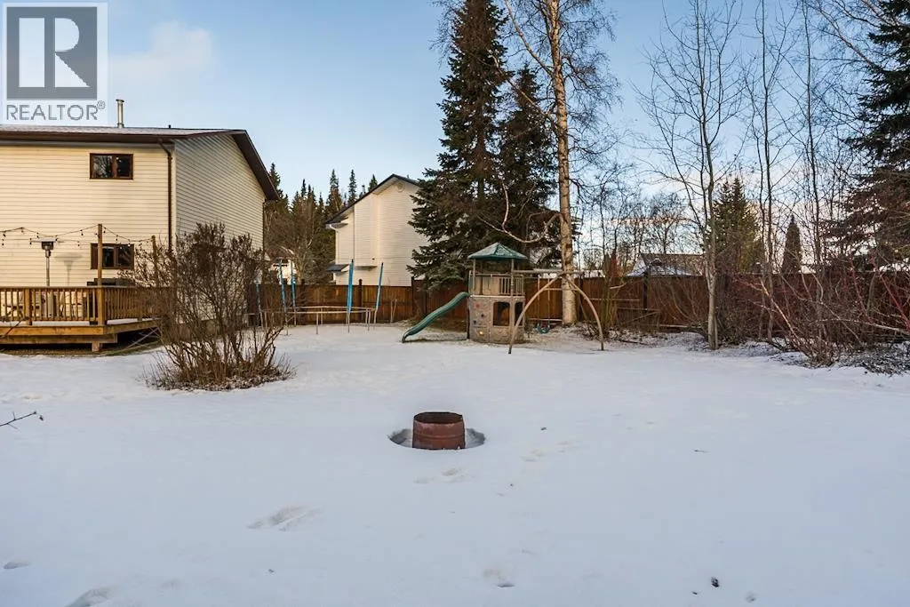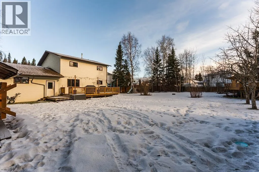 Spacious six-bedroom, three-bathroom home situated on a quiet cul-de-sac on a rare 0.32-acre pie-shaped lot. Enjoy privacy and greenery with mature apple trees, a large fully fenced yard with backyard access, and an extra-large deckâperfect for entertaining or relaxing outdoors. Bright open-concept kitchen with eating area, plus a separate formal dining room. The generous layout offers flexible living space for growing families, home offices, or guests, all in a peaceful neighborhood setting. Large two-bay garage with nine-foot doors offers excellent storage, along with an additional storage shed. Ideal family home within walking distance to the Hart shopping center. All measurements are approximate, buyer to verify if deemed important. (id:27476)