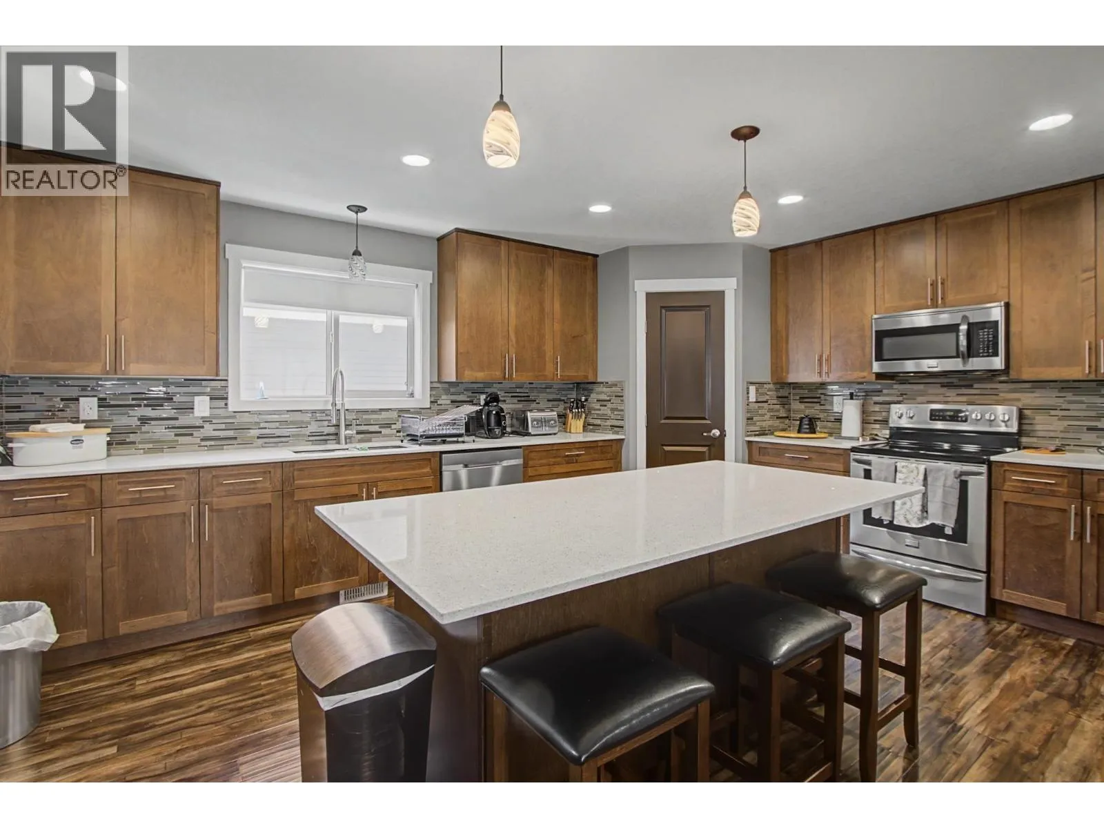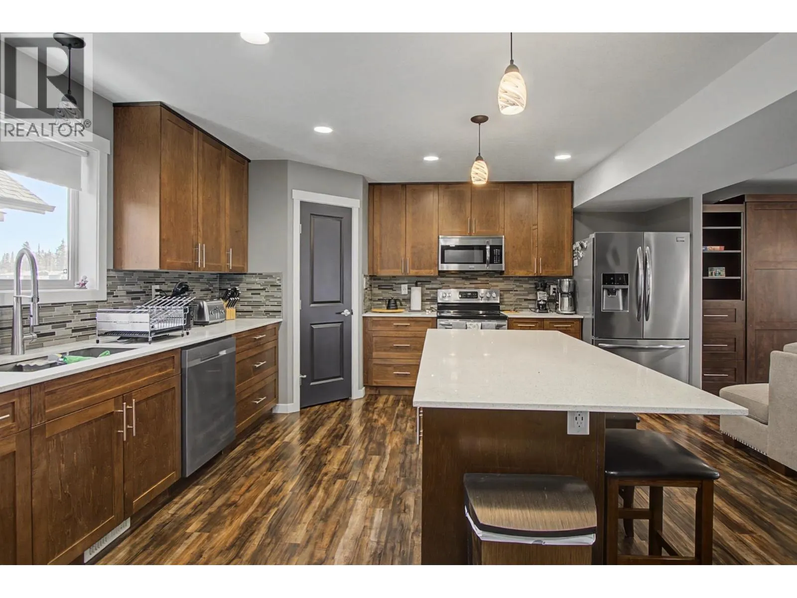 Welcome to Creekside Way. This beautiful, well-maintained, three-storey, end-unit townhouse with three bedrooms & two bathrooms offers plenty of room with over 1,700 feet of modern living. The main floor is open concept with a spacious gourmet kitchen with pantry, quartz countertops & an oversized island/eating bar that flows into the living room & dining room. There is also a two piece bathroom. Upstairs there are three bedrooms, a bathroom with a cheater door off of the primary bedroom & full laundry room. Double garage with ample storage space. Situated near transit, schools & shopping. Close to greenbelt with access to lots of trails & nature. Lot size taken from BC Assessment; all meas. are approx., & the buyer is to verify any info. deemed important. (id:27476)