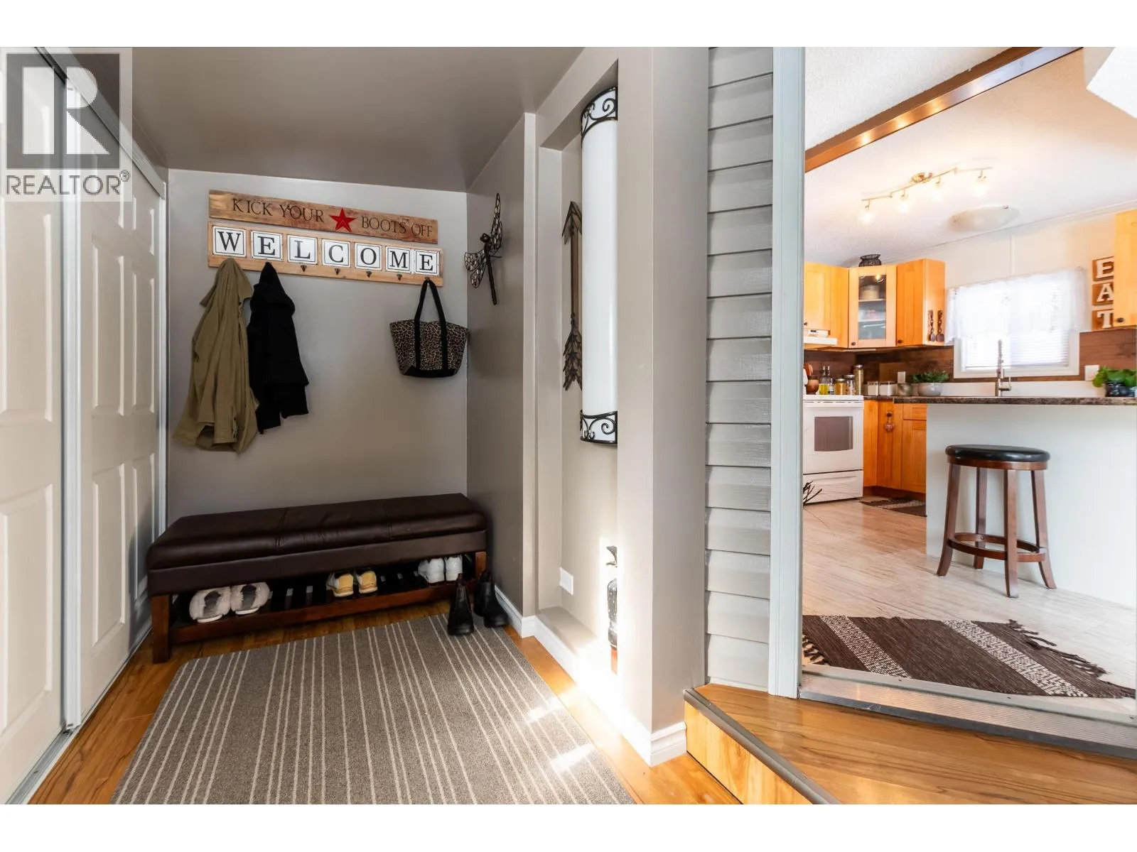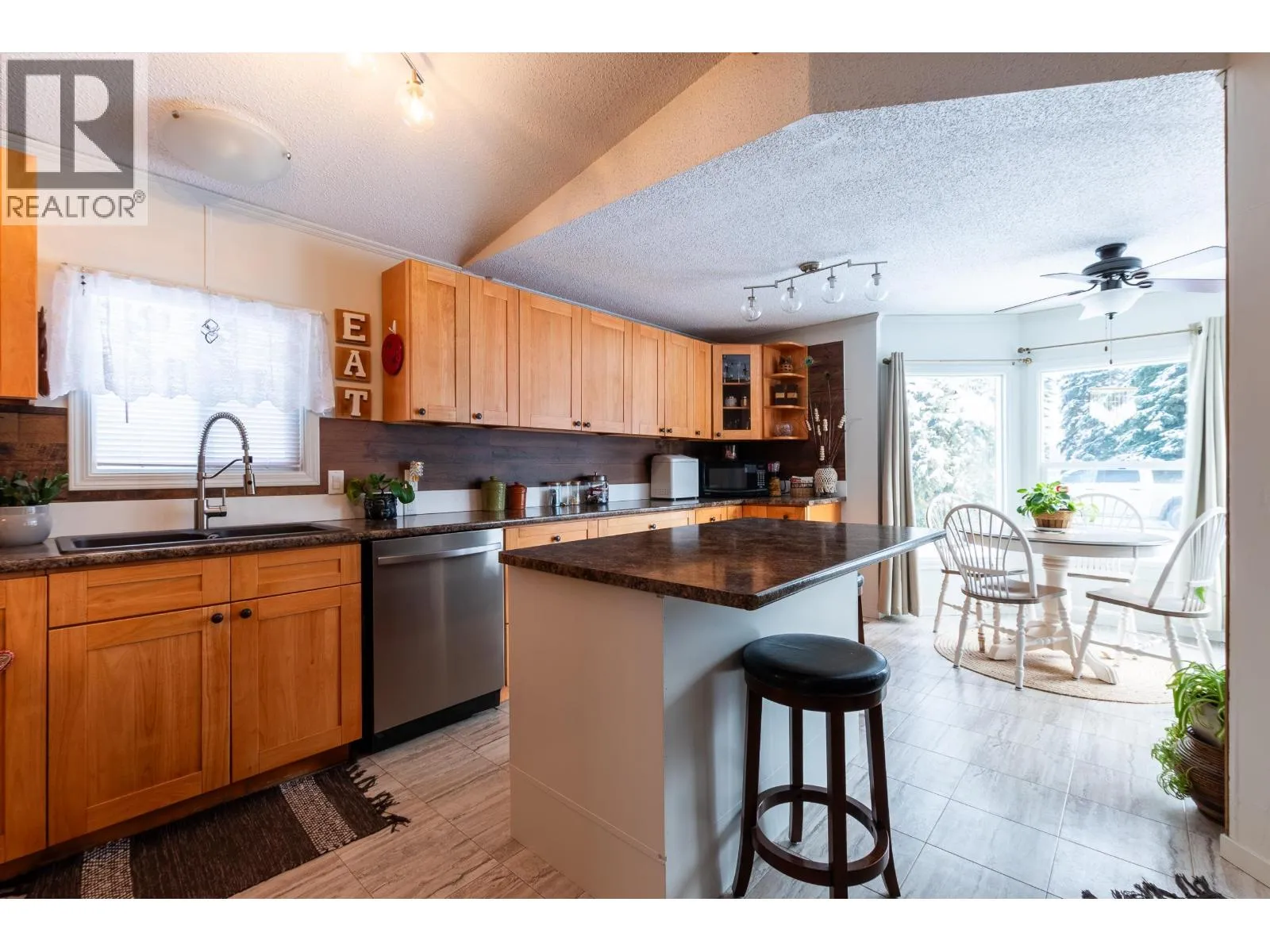 Affordably priced, well-maintained home west of the city with strong curb appeal and a very tidy, move-in ready interior. The large, updated kitchen with island offers abundant cabinetry and generous counter space; the sunny dining room is an ideal spot for your morning coffee. Recent upgrades include some newer windows and a newer hot water tank, adding value and peace of mind. Bright rooms, practical storage, a spacious mud room and low-maintenance make daily life easy. Outside, a relaxing patio space awaits - offering a peaceful, private spot to unwind after a long day. Located in a quiet area, with a clean presentation that shows very well. Pad rental is $480 monthly, rentals not allowed. (id:27476)