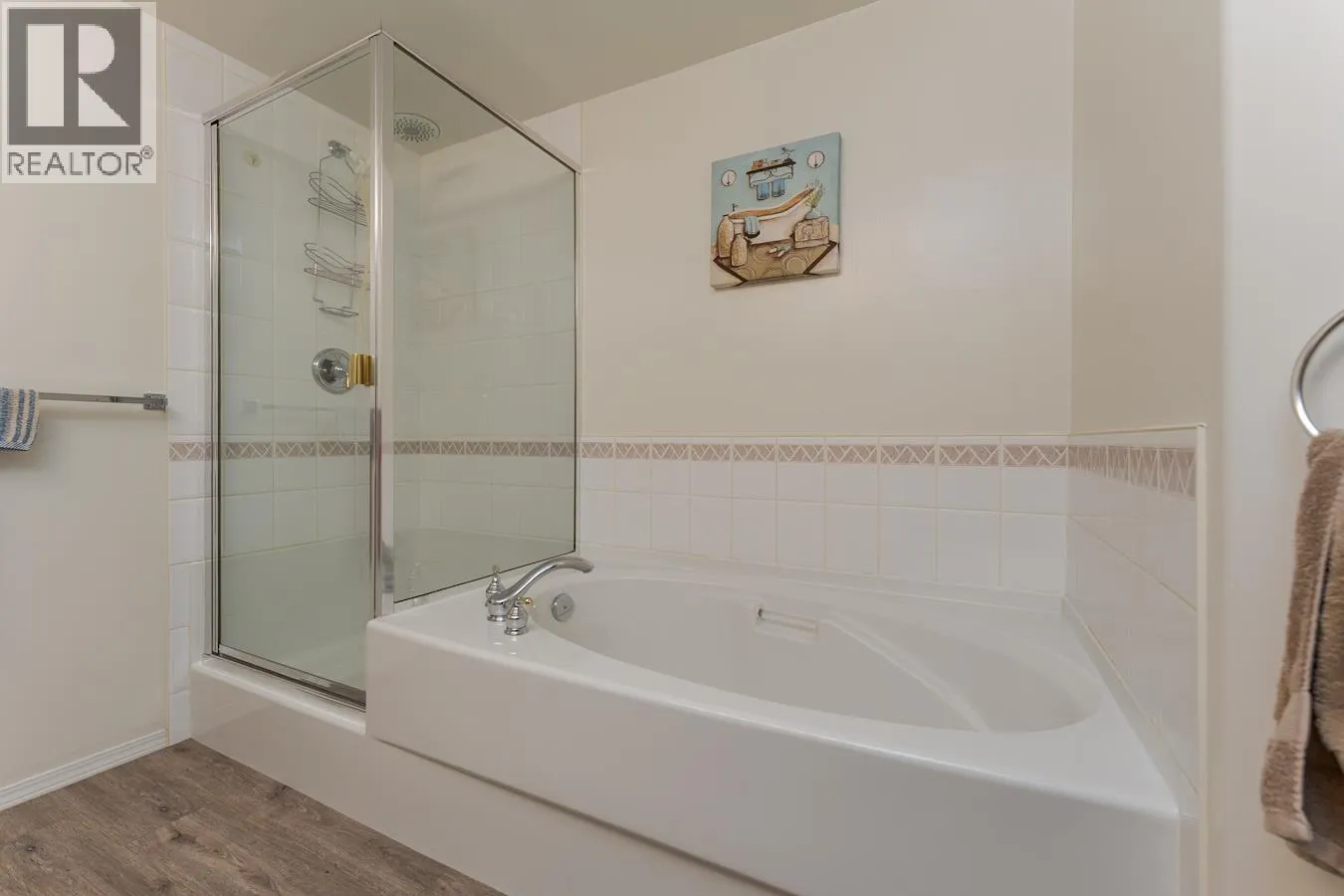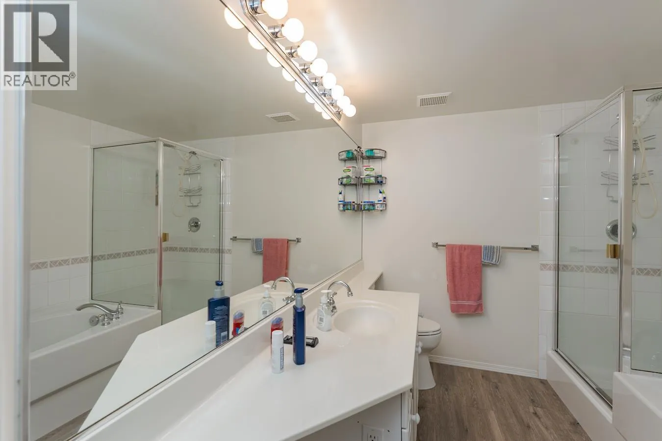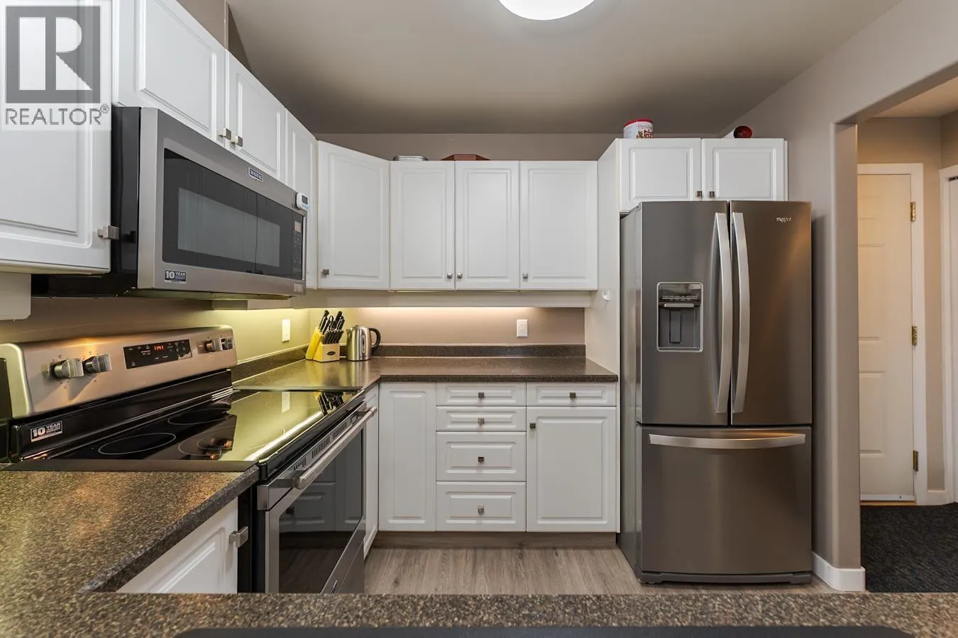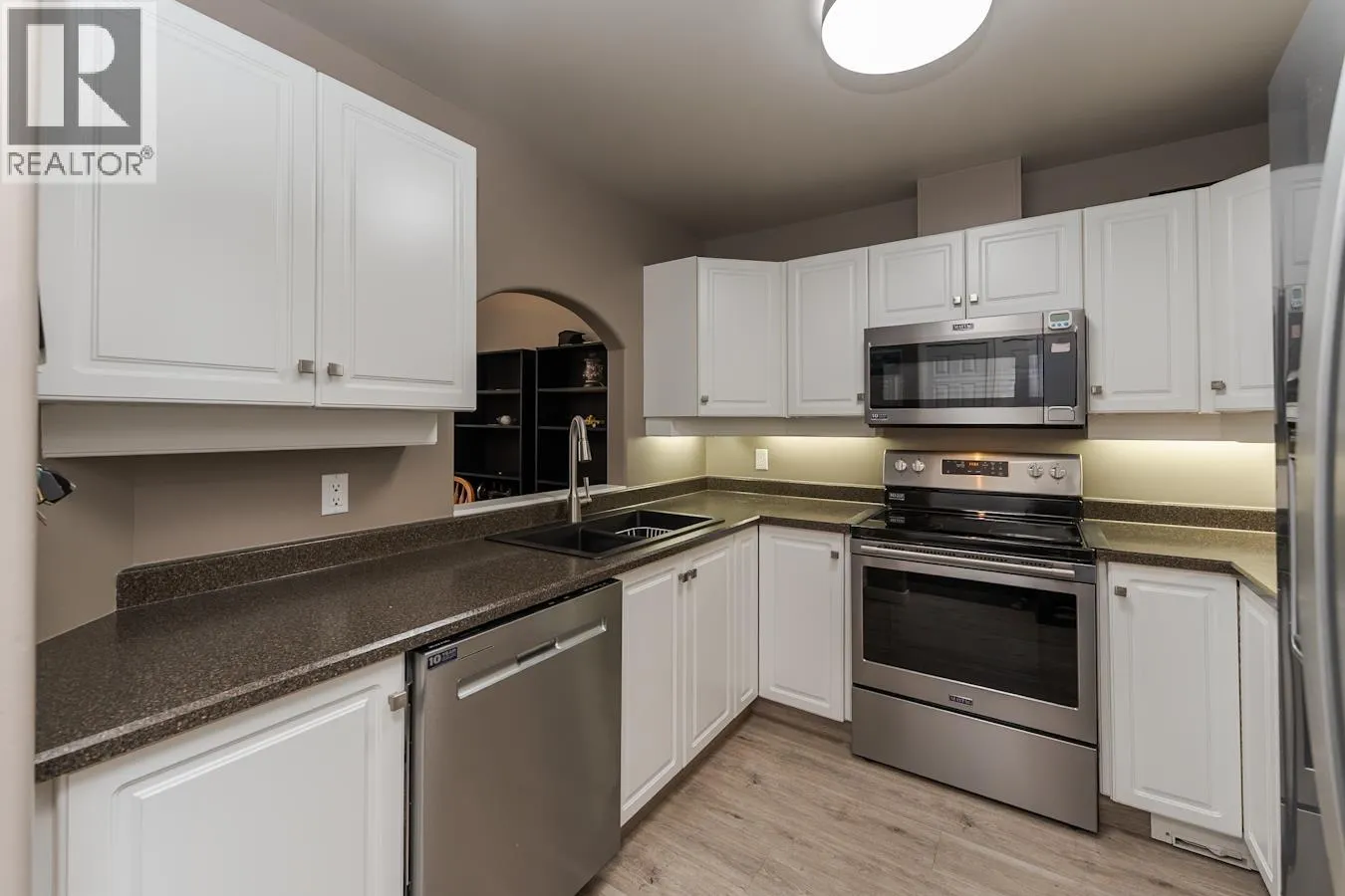 This updated 2 bedroom ground floor unit features garden views and a bonus fenced in patio area. Boasting modern vinyl laminate floors and light fixtures throughout, big sun lit living area with natural gas fireplace, covered 120 SF patio with additional 100 SF outdoor patio area, this unit will absolutely impress. The Magnolia Gardens complex has plenty of amenities including elevators, underground parking with a recycle center and car wash bay, the Magnolia club lounge that is a great place to socialize or can be rented out for family events, gym with all updated equipment, and 2 guest suites that members can book for visiting family and friends to stay at. (id:27476)