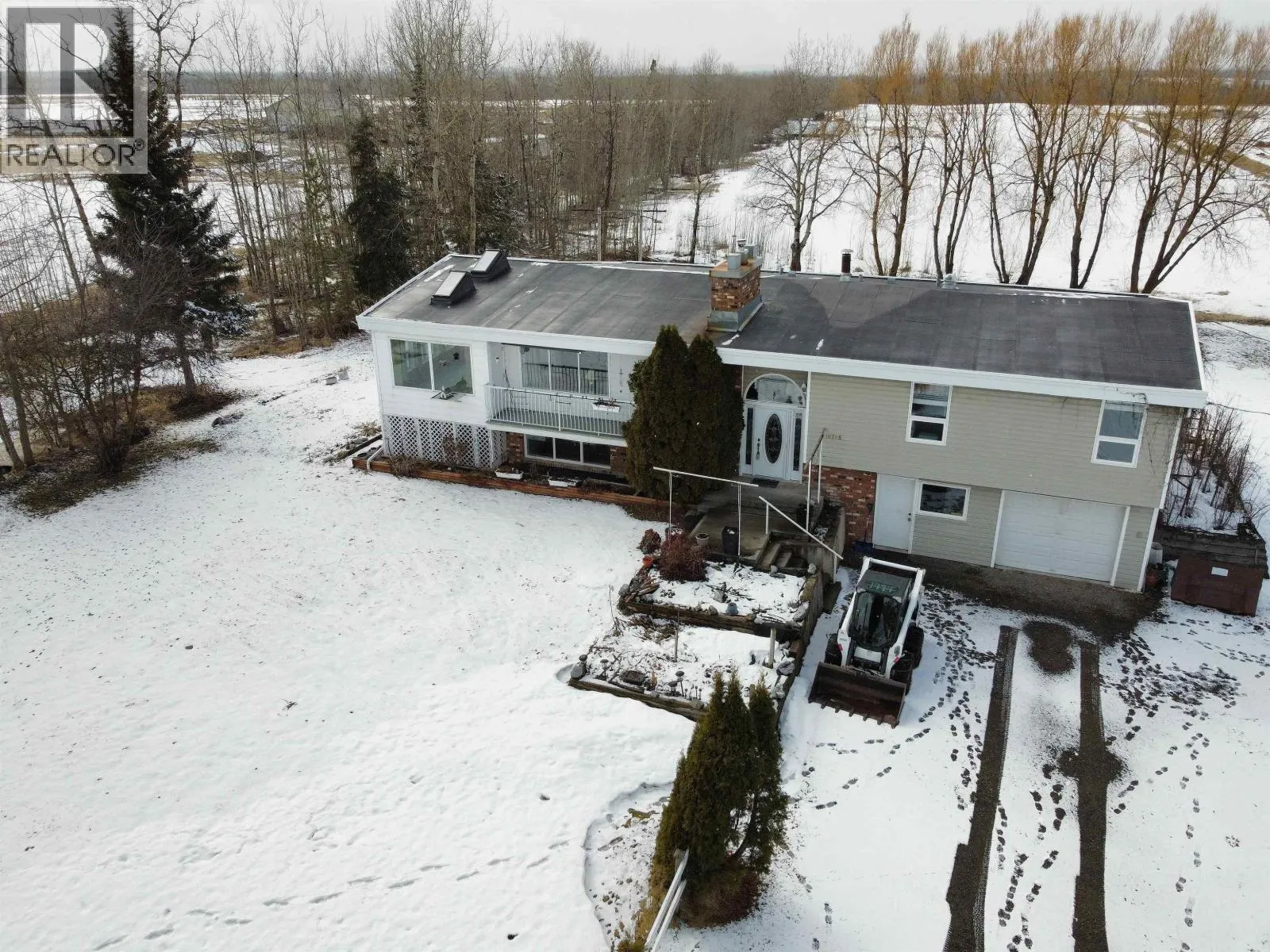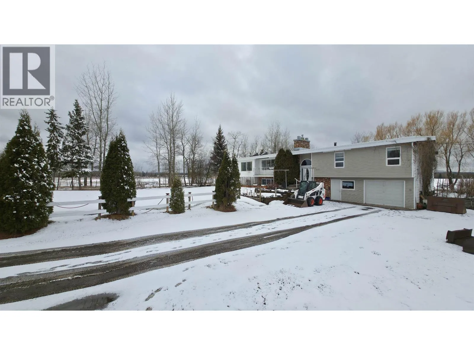 Looking for a peaceful rural setting without taking on a huge acreage? Just 15 minutes north of Prince George, this inviting 1-acre property offers open views of the surrounding hay fields and sits on a piece of the well-known Johnson Farm -- the one with the landmark silos on the north side of town. The home is well-cared-for and features vinyl windows, newer Duradeck, and gorgeous hardwood flooring. The main level includes three bedrooms, including a generous primary with its own ensuite. Downstairs you'll find two additional bedrooms and a spacious rec room with its own outside entrance, giving you plenty of flexibility for guests, hobbies, or extra living space. An attached single garage adds even more convenience. Measurements are approximate; buyers should verify if deemed important. (id:27476)
