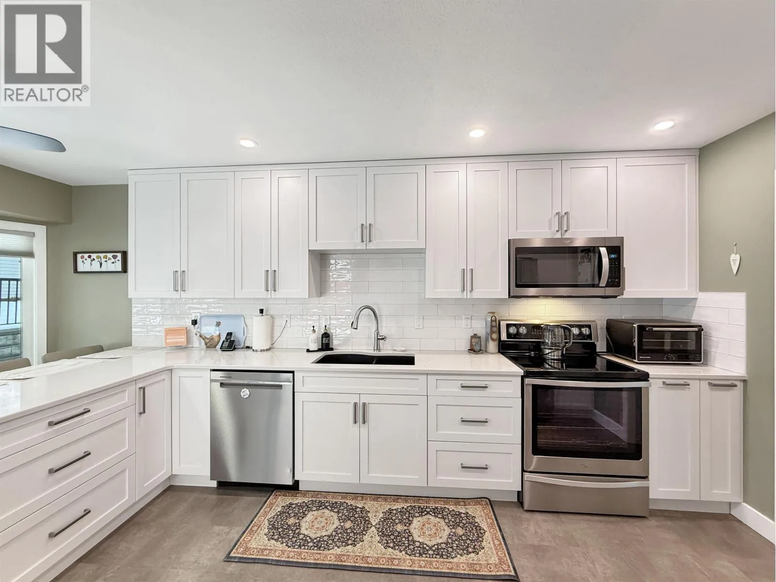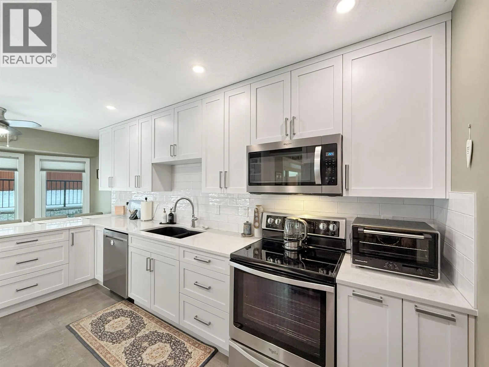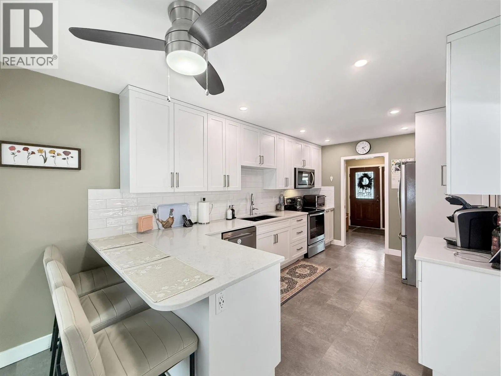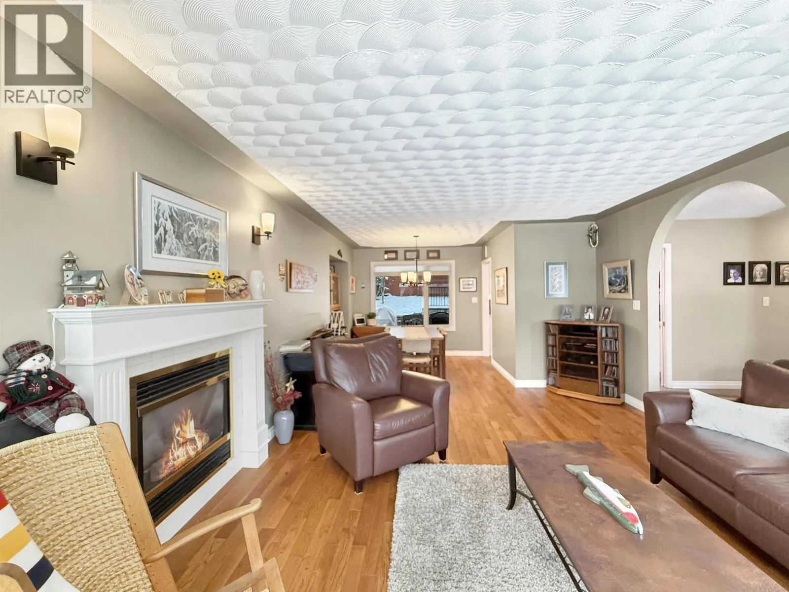 Pride of ownership shines in this one-owner, 2,818 sq ft Hart Highlands home. A large, inviting foyer leads to a bright living room with a gas fireplace or into the new gourmet kitchen with quartz counters and SS appliances. Formal dining, main floor laundry, and updated bathroom vanities add modern convenience. The massive basement rec room features a dedicated TV area at one end and a 2nd gas fireplace at the other. Outside, a covered deck leads to a stunning stamped-concrete patio with a new professional retaining wall and private, newly fenced yard. Notable upgrades: triple-glazed windows up and 2019 roof. Double garage, quiet street, and near schools and Hart Ski Hill. Move-in ready and truly home sweet home! (id:27476)