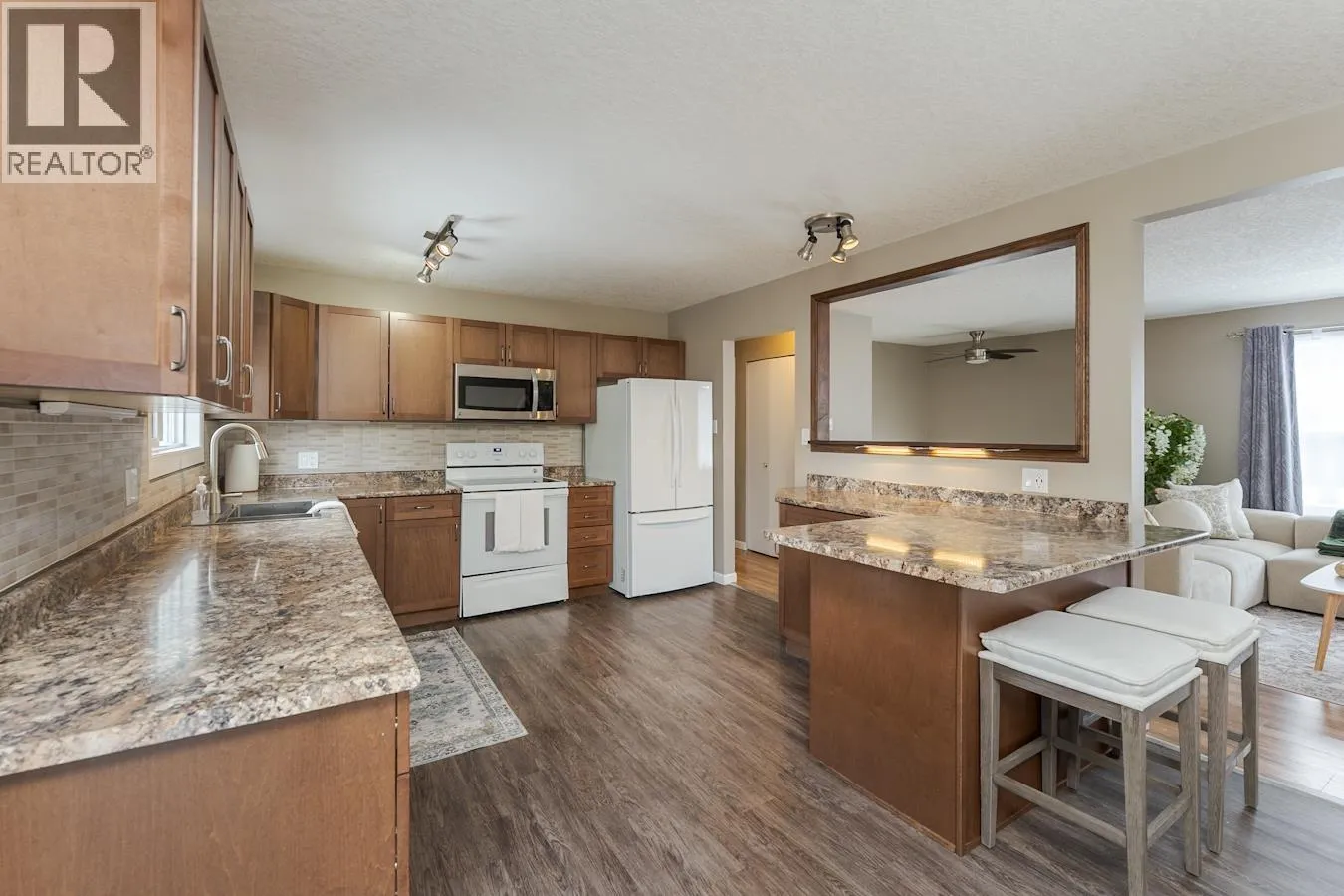 Updated 5 bedroom, 2 bathroom home in the sunny Hart Highlands. Cozy, warm, bright, and spacious, this home is move in ready. Open concept main floor with a large updated kitchen with an island, perfect for entertaining or doing homework. 3 bedrooms up and 2 more downstairs. Additional cozy family room and a large flex space; perfect for a gym or potential for a suite. A great area for an active family; close to a ski hill, rink, hiking, biking trails, shopping, schools and more. Get in before summer! (id:27476)