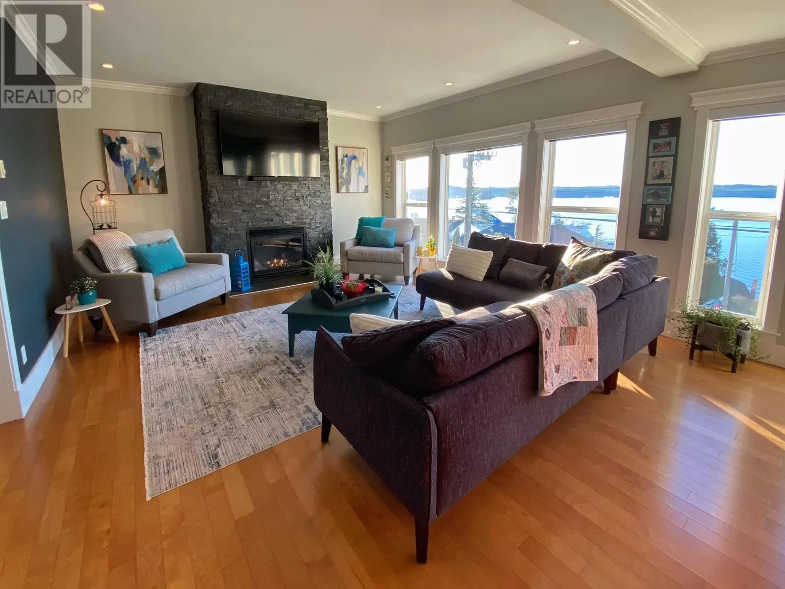 This spectacular 3/4 bedroom, 3 bath oceanview home has been meticulously renovated with quality materials over the years, inside & out. Whether you're whale watching by the cozy gas fireplace in the living room, or enjoying sunsets from the primary bedroom, you can bask in the views from all 3 floors. Outside, beautiful stamped concrete stairs lead to an outdoor patio and main entrance of the home. The main level features high ceilings, an open layout and expansive windows that flood the home with natural light. The kitchen is ideal for entertaining and has French doors that open onto the fully fenced / nicely landscaped backyard. 3 bedrooms are found on the upper level with the primary boasting a walk-in plus a charming ensuite with a free-standing soaker tub. (id:27476)