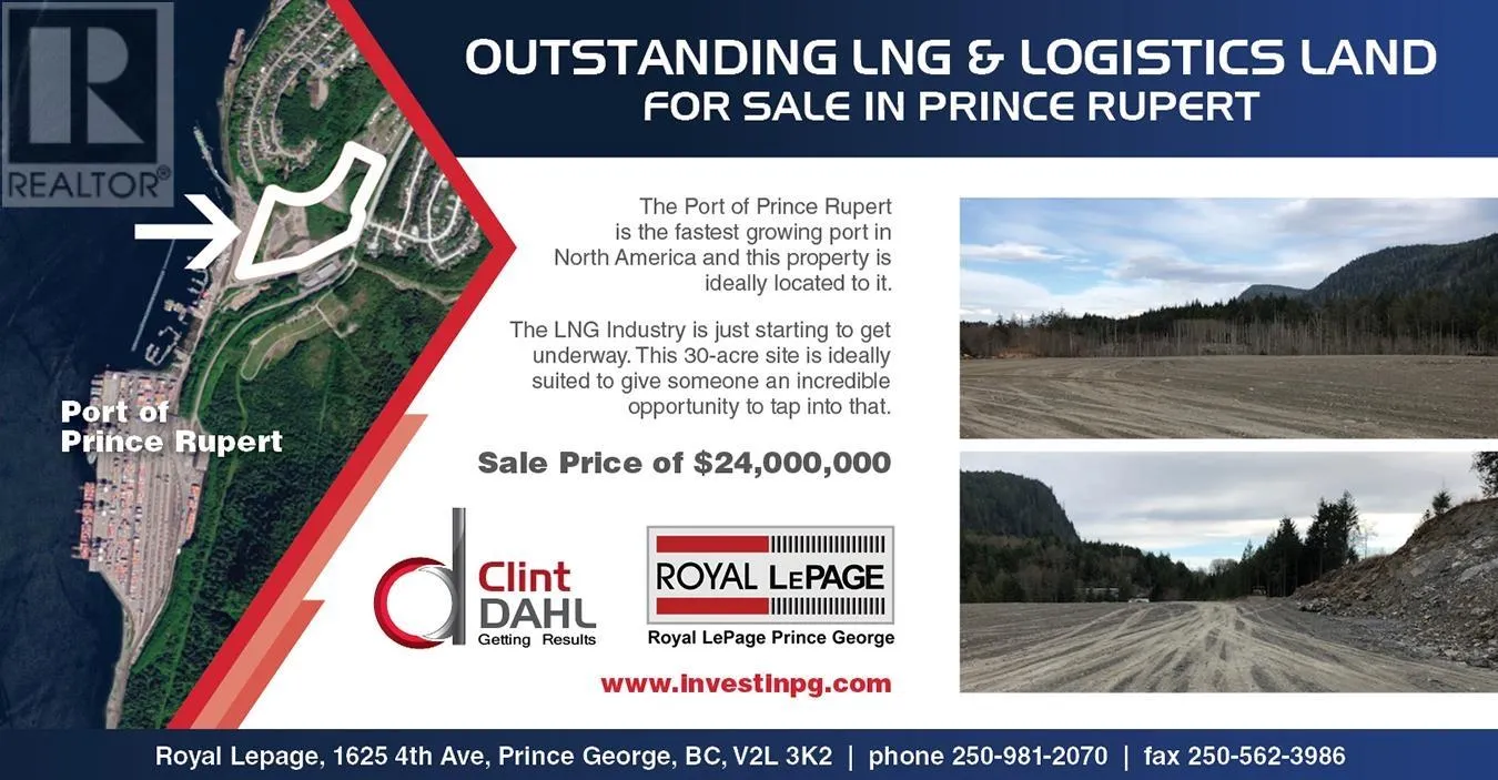 The best property available in Prince Rupert. Over 30 acres of relatively flat ground with Ocean view. Ideal site for residential, multi-family and industrial development. The Port of Prince Rupert continues to grow with significant developments ahead. Land is extremely hard to find in Prince Rupert and this property is ideally located. (id:27476)