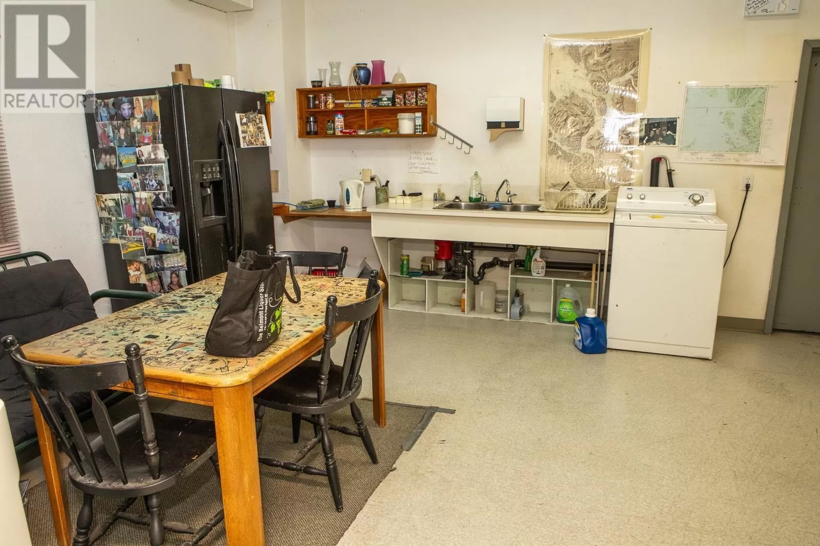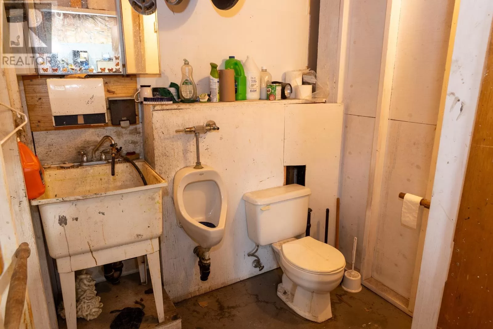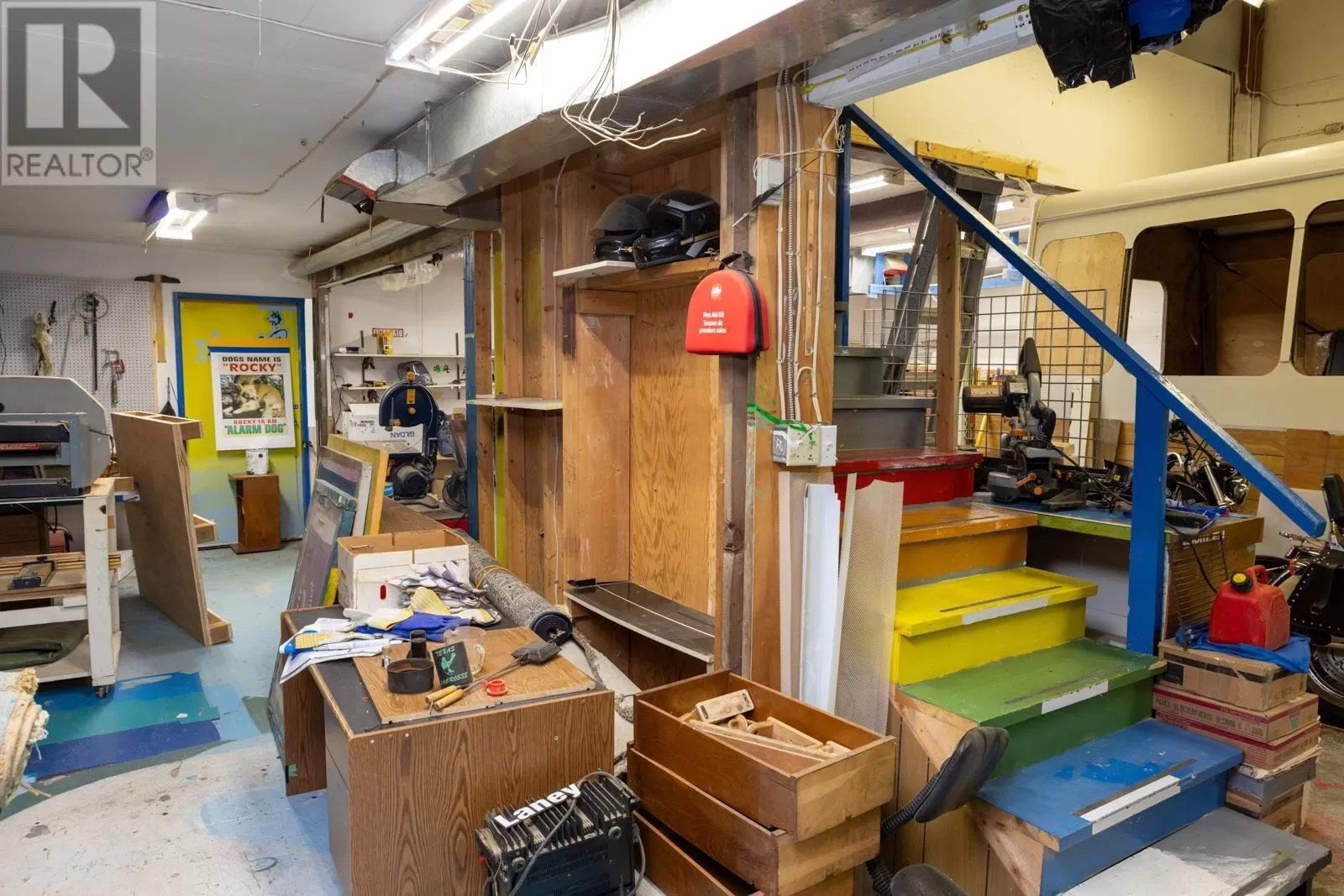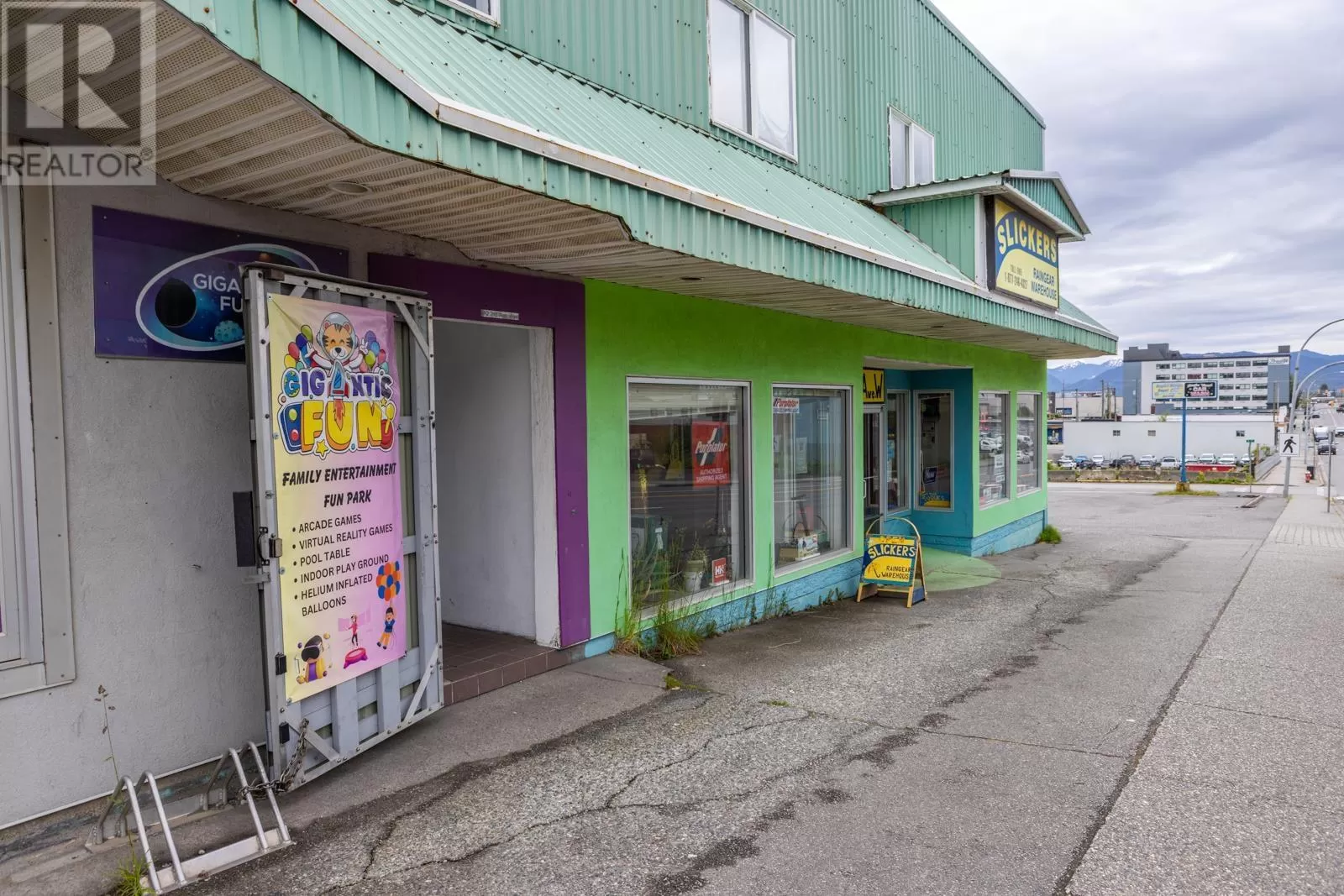 If you are looking for workshop space Prince Rupert - look no further. This 2-storey wood frame building situated on 2nd Ave W has great central exposure for through traffic to & from west side of town residential, port facility & BC Ferries. The building currently houses Slickerâs Raingear Warehouse & an arcade/pool hall business, as well as two large separate workshop / storage areas with mezzanines. One workshop is used by owner; the other 3 spaces are tenanted. Currently zoned C1 - uses include Retail use, Personal service establishment, Office, Entertainment centre located beyond 200 metres of a school property line, Traveler accommodation, Child Care Facility, Theater, Multiple family dwellings, Assembly hall, Sales of alcoholic beverages on lots with a minimum area of 250m2, Animal Hospital or Clinic. There is 400 Amp electrical within building, separate electrical. All separate units have 1 or more bathrooms. Rental income. (id:27476)