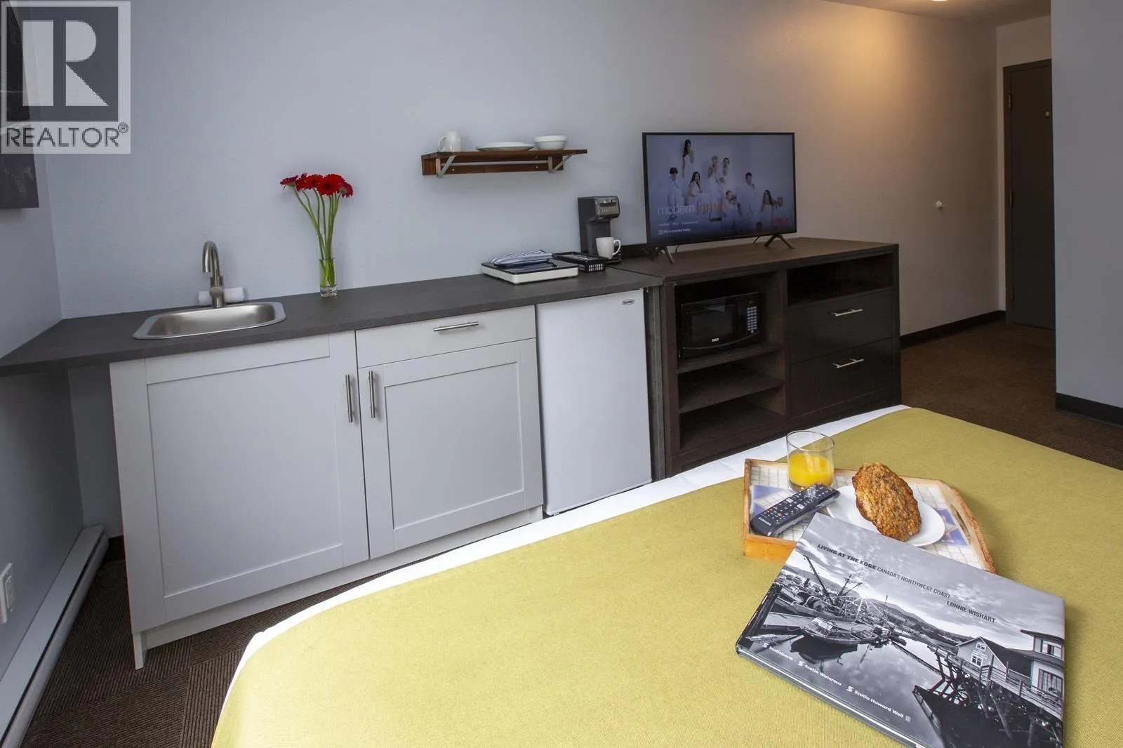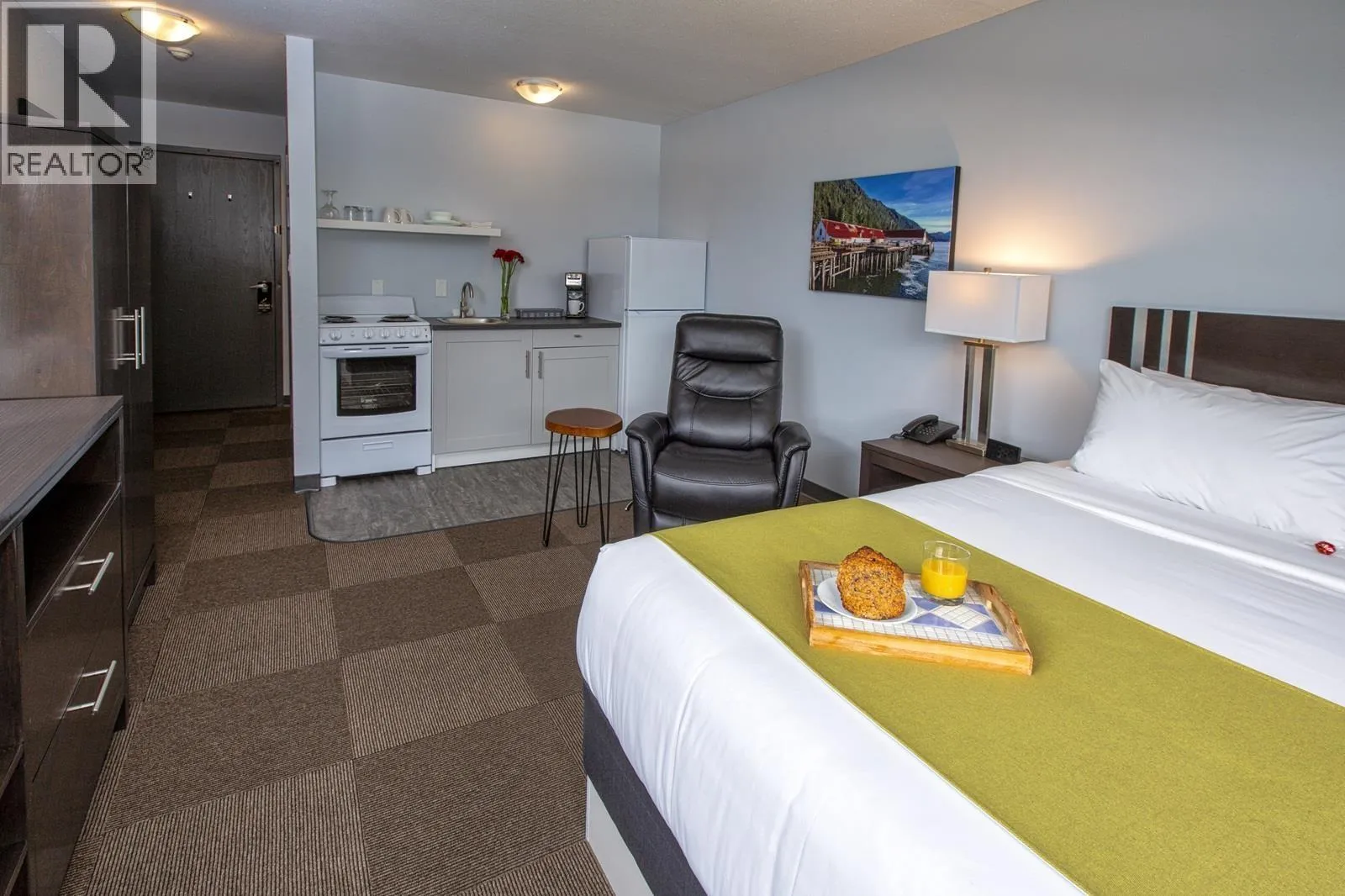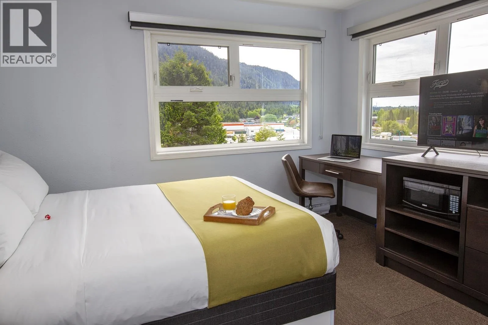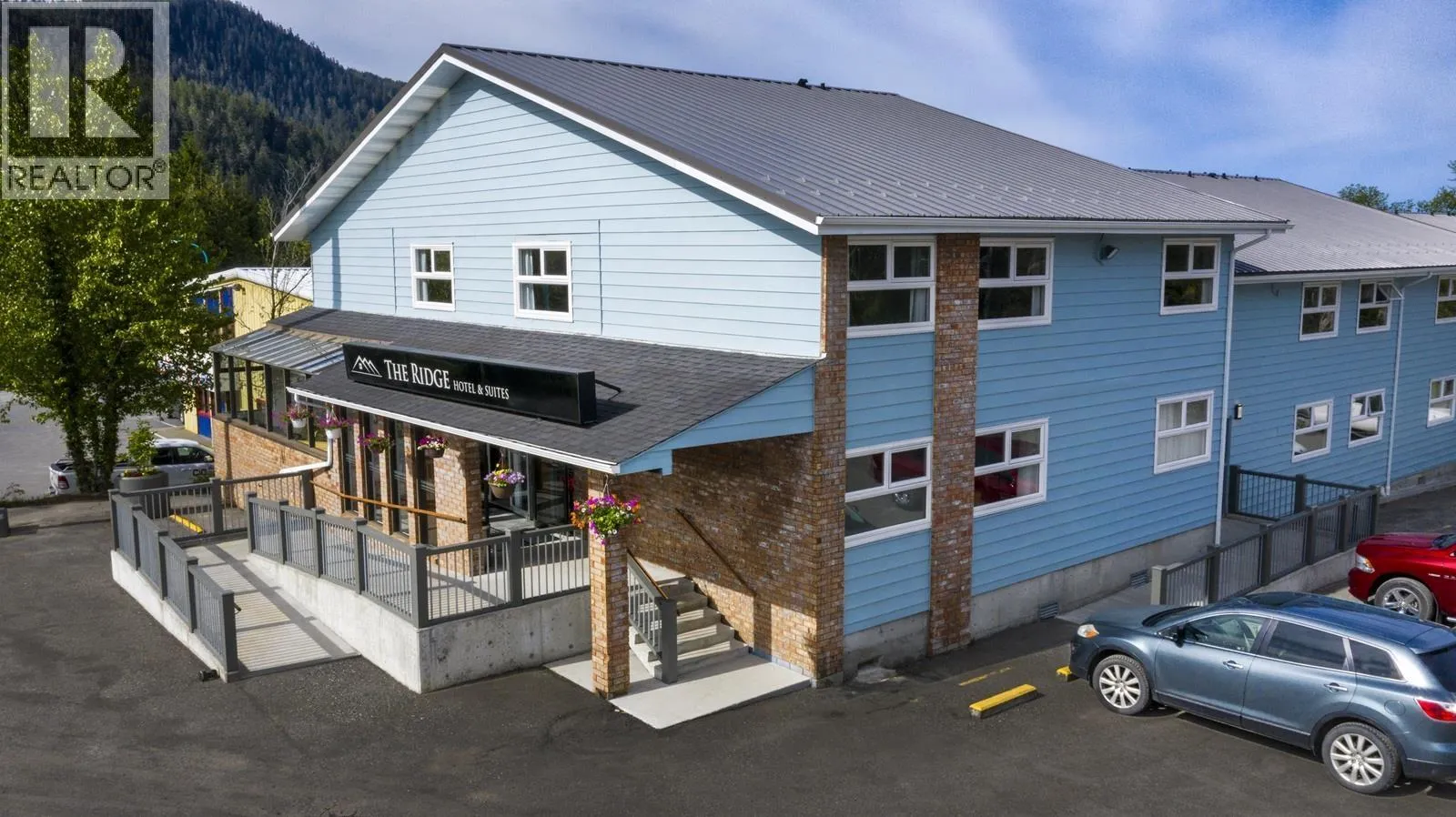 The Port City is bustling & growing! Situated on 1.176 acres, gentle sloping sunny lot, The Ridge Hotel and Suites is -16,000 sf with recent extensive renos inside & out completed in 2019. 37 rooms, 2 are 3-bdrm full-service suites with laundry. 35 rooms reno'd to include kitchenettes, upgraded bathrooms, and furniture. Wide hallways, & each level has supply closet for easy cleaning, linens & bedding storage. On-site laundry facilities for guests, & industrial sized machines available if not using local laundry cleaning service. Restaurant seating capacity for 40 persons with renovated kitchen and newer appliances. Rock now replaces the muskeg allowing for plenty of parking for all sized vehicles. 3-phase power and a BC Hydro Transformer on property if more power required. Expansion of accommodation (increased harbour views) potential with city approvals. Ever increasing revenues. Share sale preferred. Turnkey business. (id:27476)