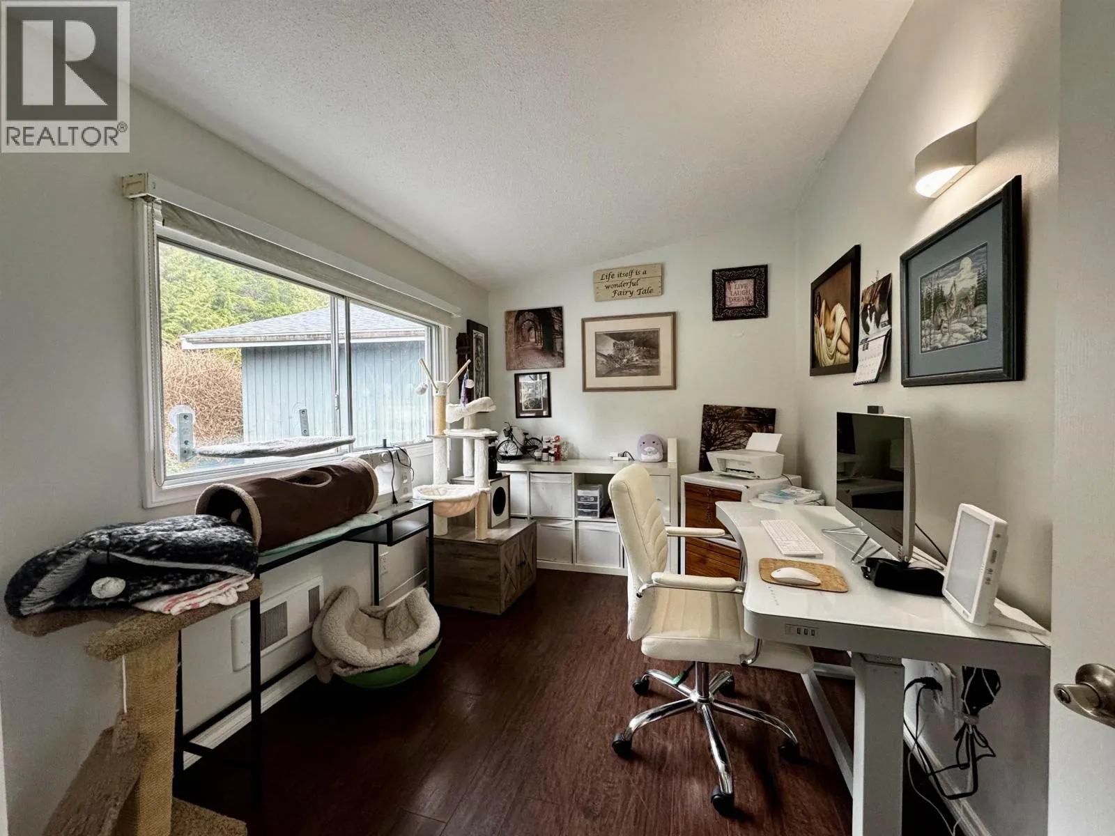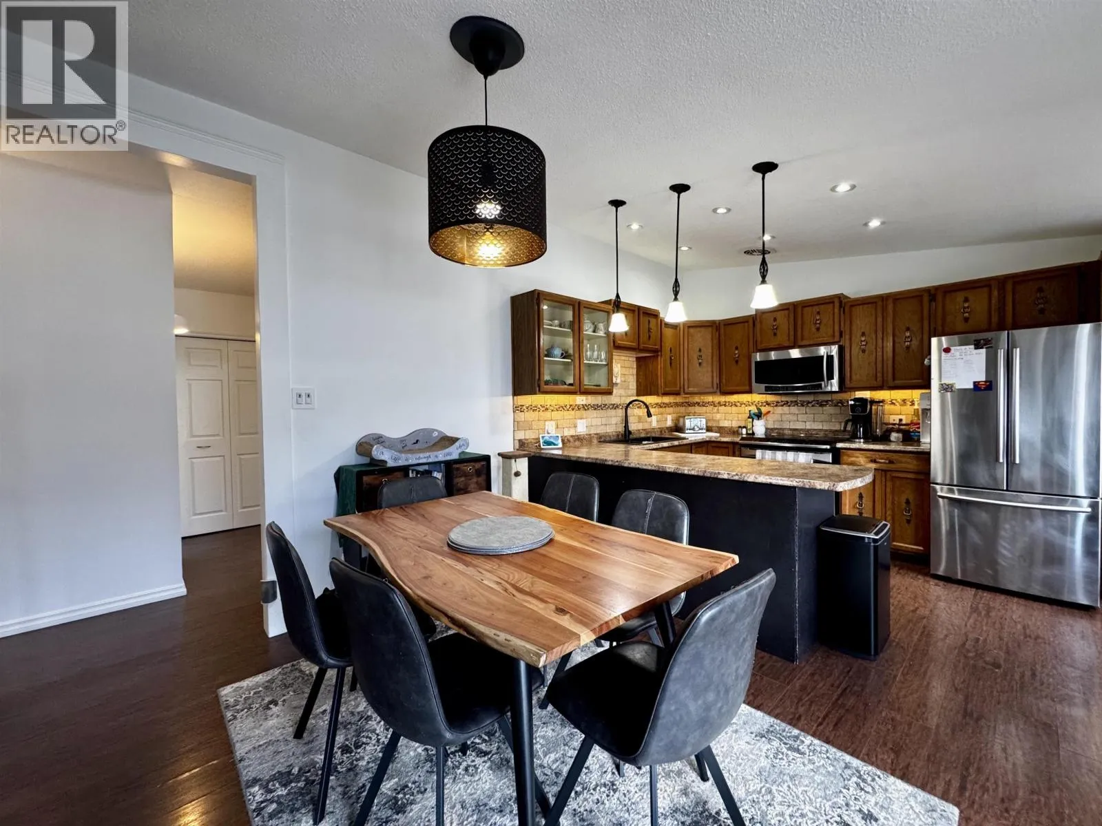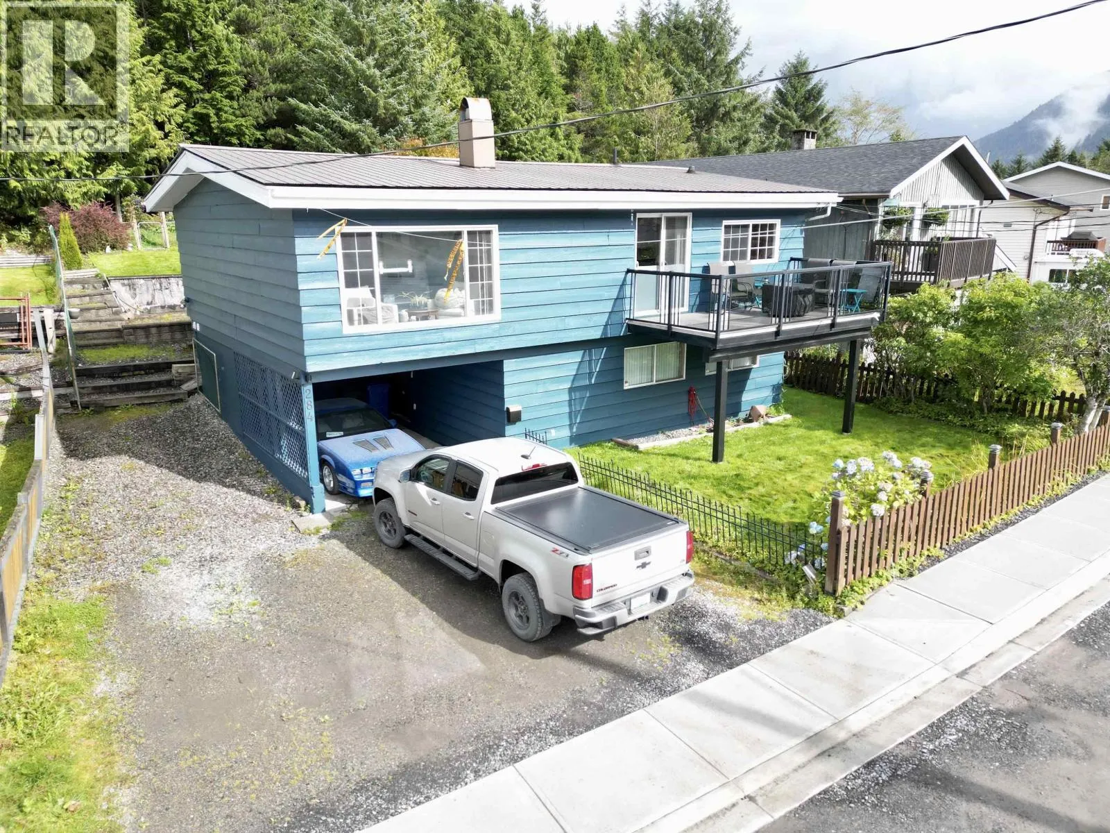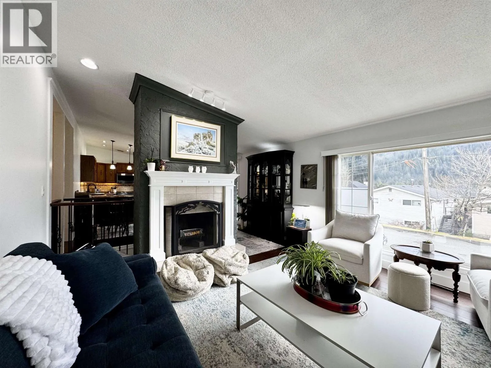 Discover this charming four-bedroom, two-bathroom family home! Nestled in a friendly neighbourhood, close to schools and a ball field, this maintained residence welcomes you with its bright, airy atmosphere. Vaulted ceilings and an open-concept design spotlight a cozy wood-burning fireplace that adds warmth and charm to the living space. Carefully updated throughout, the home boasts a durable metal roof, a spacious fenced backyard with fire pit, outdoor storage, and peaceful green surroundings that create the perfect backdrop. Bask in excellent sunlight and enjoy sunset views year-round! Practical touches include covered parking, a generous driveway that can accommodate a boat or RV! Combining comfort, functionality, and a prime location, this home has it all! (id:27476)