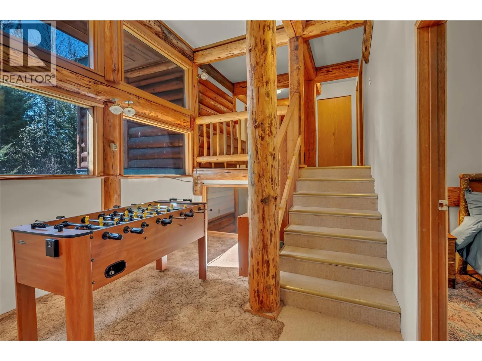 This 3,000 sqft post and beam architect designed log cabin exudes character and charm, nestled beside a provincial forest on a .53-acre lot, privacy is assured in the quiet 4 season recreational community of Eastgate and is only a 2.5-hour drive from Vancouver. The cabin has 5 bedrooms and two living rooms, ample space for multiple families to spread out & enjoy themselves. The heart of the home is the main floor living room, with a 13 ft ceiling and large windows that let in an abundant amount of natural light where you can savour your coffee. The cabin features gorgeous woodwork throughout, including three handcrafted wood-framed beds and two decks overlooking the trees. This is the perfect place to unwind, relax and watch the snow fall. The kids will love the secret staircase leading from the main floor to the top floor and the loft hideaway. Renovations include brand new stairs at the front entrance, updated light fixtures, new gas stove with a built-in air fryer and grill, new hot water tank & a new emergency generator. Enjoy sunny spring & summer days on the large private deck! Eastgate is a small but active community where you can snow mobile, hike, cross country ski, and snowshoe from the cabin. In the nearby park you can down hill ski, cross-country ski, snowshoe, hike fabulous trails and enjoy the amenities at Manning Park Lodge including a restaurant, spa, pub and outdoor skating rink. This unique & spacious home is a must see and is ready for the next family to move it & make forever memories. (id:27476)