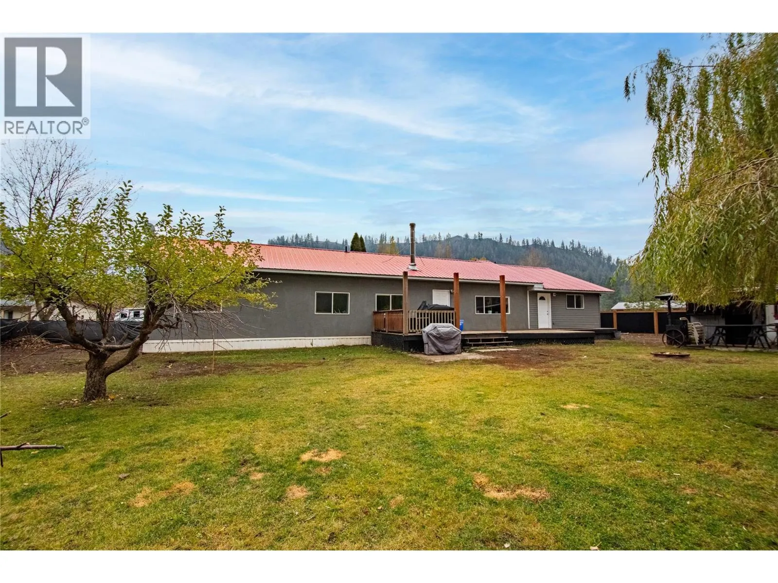 Discover this rare half-acre riverfront property just 5 minutes from town and from the golf course! This well maintained 4-bedroom, 2-bath home offers stunning Similkameen River views. Enjoy the private and spacious deck overlooking the water, fruit trees, a fenced backyard perfect for kids and pets, and a large bonus Family room great for hobbies or entertaining. Bonus detached 9'x 30' shed with chicken coop beside.Recent updates include all new plumbing (2022), pressure tank (2022), upgraded electrical panel, hot water tank (2025),Kitchen Appliances(2024) and fiber optic internet. With a durable metal roof and covered carport, this property combines easy maintenance with unbeatable scenery and comfort. (id:27476)