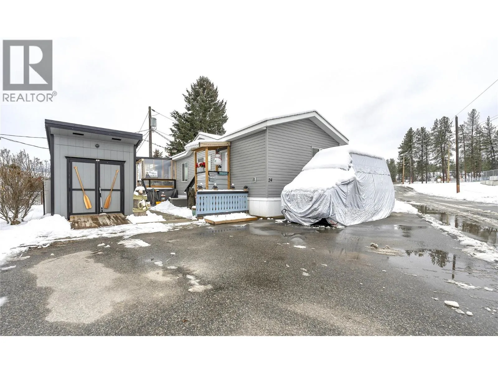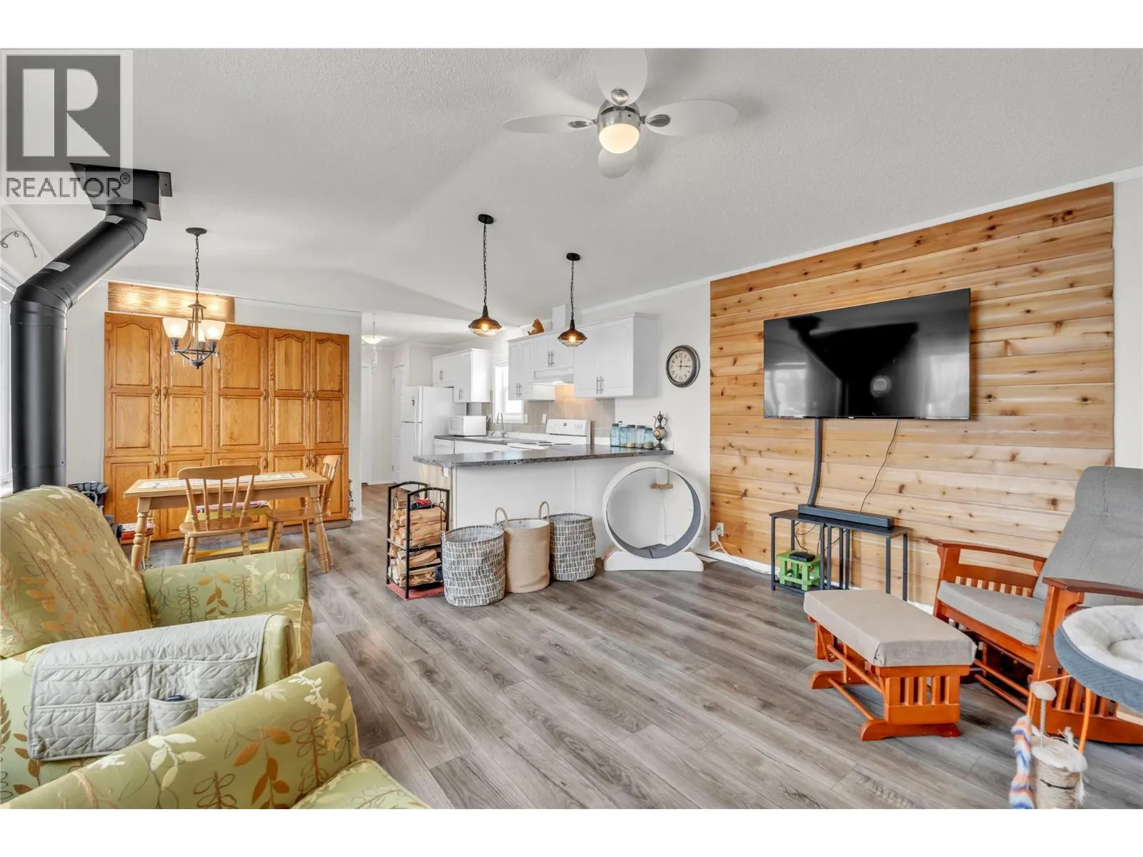 HERE'S A PERFECT PACKAGE, Nothing to do, but Move Right In!! This Beautiful & Spotless 2021 (16x60ft) mobile home offers Modem Affordable living in the desirable, well managed Pines Mobile Home Park. Built with 2x6 construction and fully drywalled for a true-rancher feel, it features a popular layout with bedrooms on opposite ends, each with its own full bathroom, NEW Cozy Woodstove for economical heating, NEW kitchen lighting and tile backsplash plus full wall-pantry addition. 3 NEW ceiling fans and NEW window coverings. Great outdoor living! Enjoy a NEW well-built covered deck, BBQ area, veggie and flower garden & wee greenhouse in mostly fenced yard. Custom 8' x 12' pre-wired shed for hobbies or suitable for quad/snowmobile storage -full driveway can accommodate 3 vehicles. LOW PAD FEES, Pet friendly, No age-restrictions, easy river access and no cost RV parking available. COME VIEW TODAY! (id:27476)