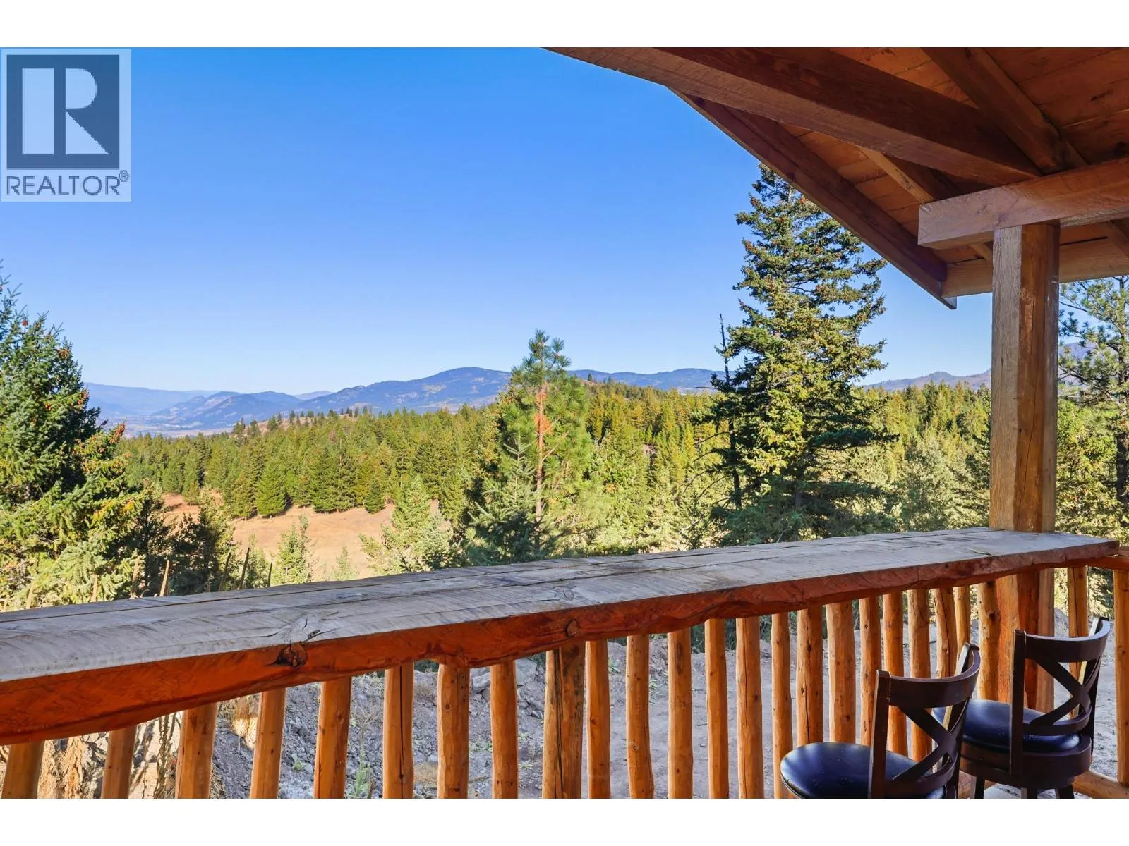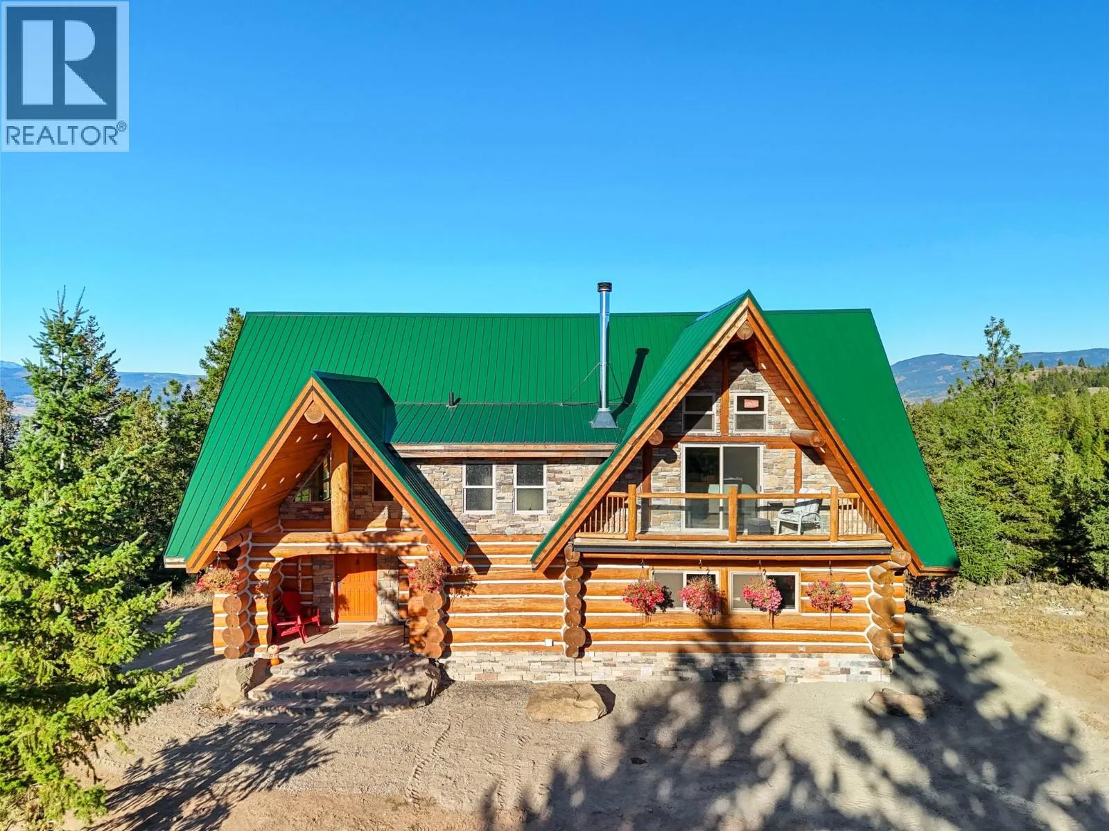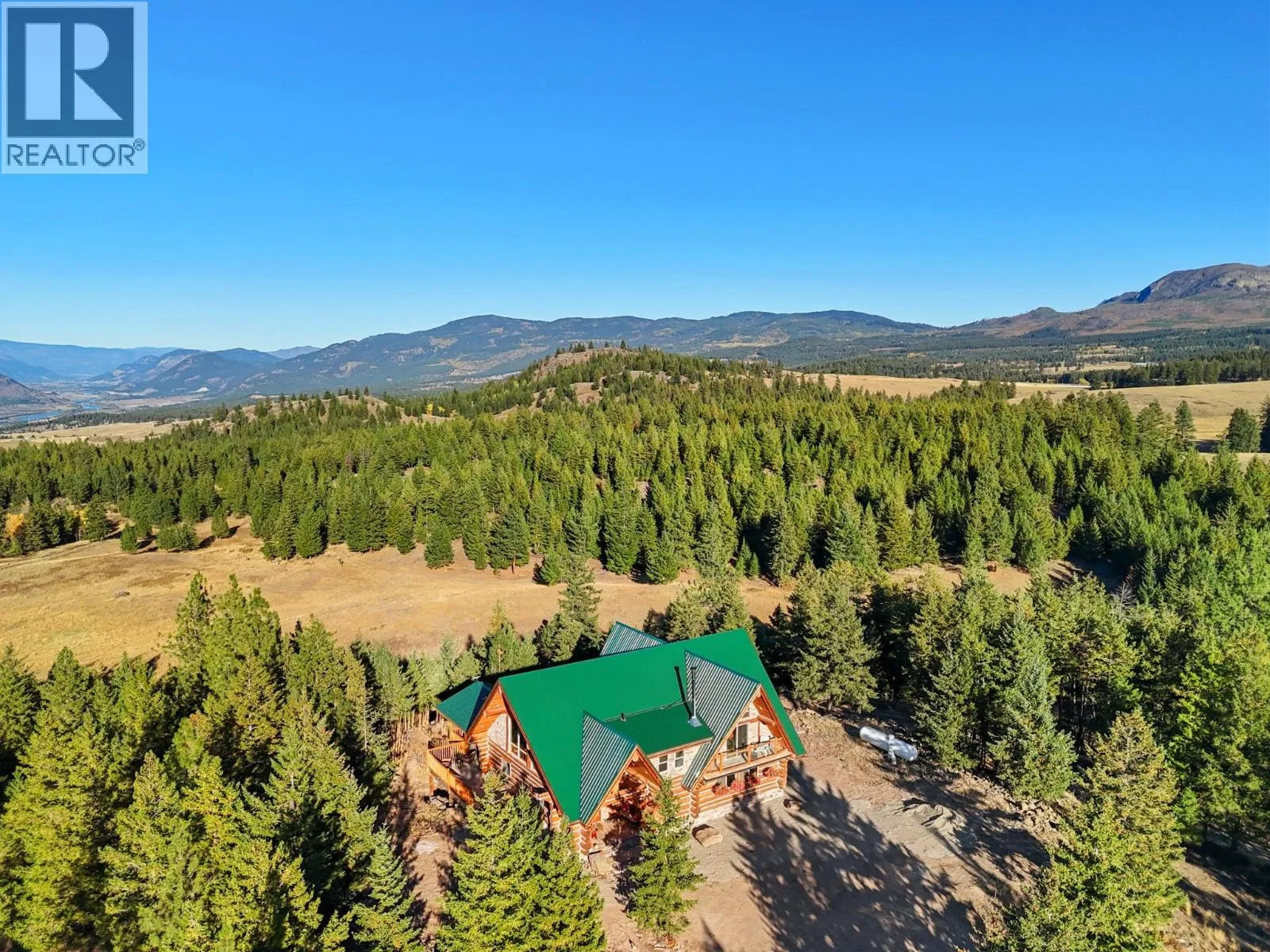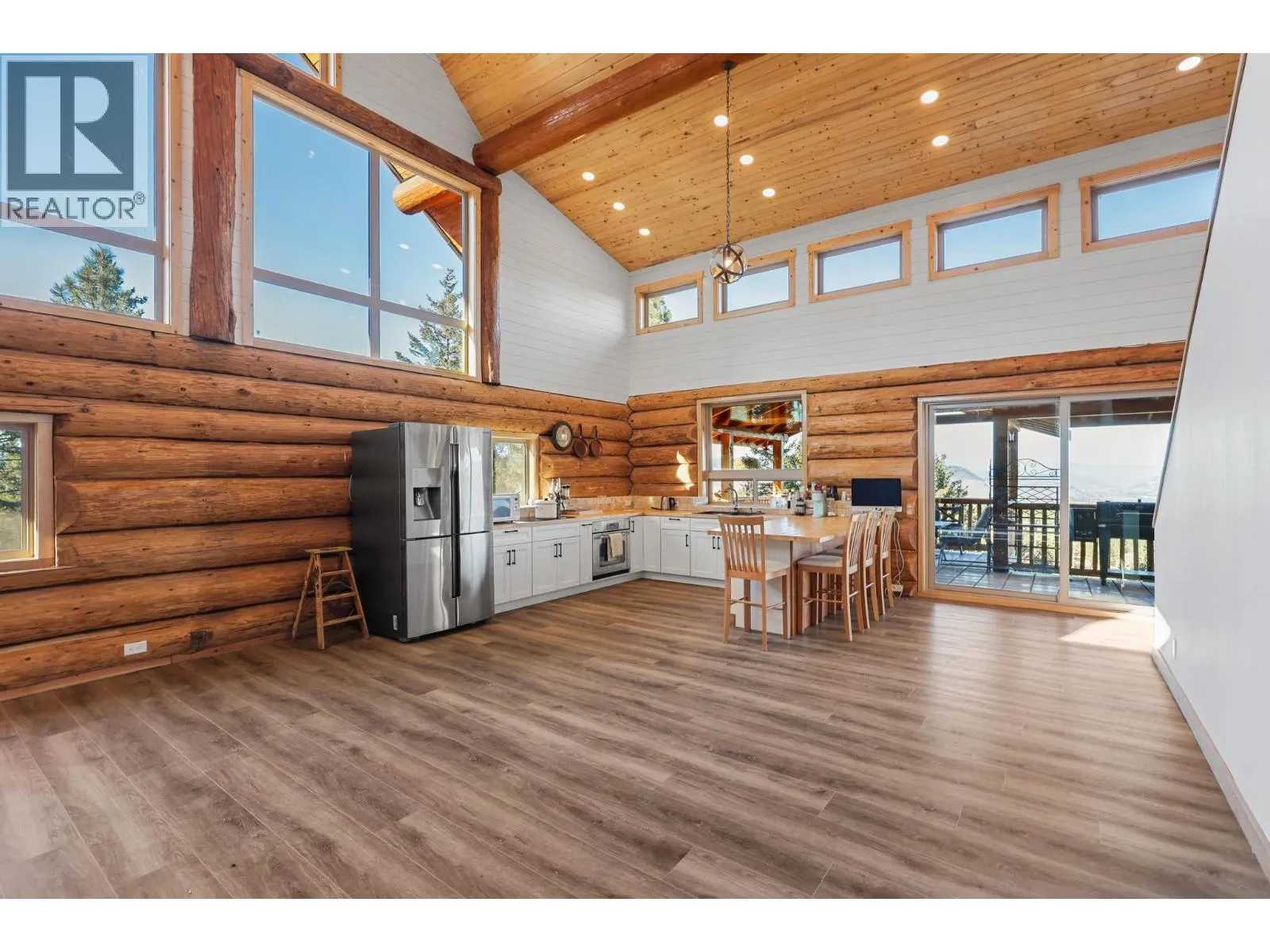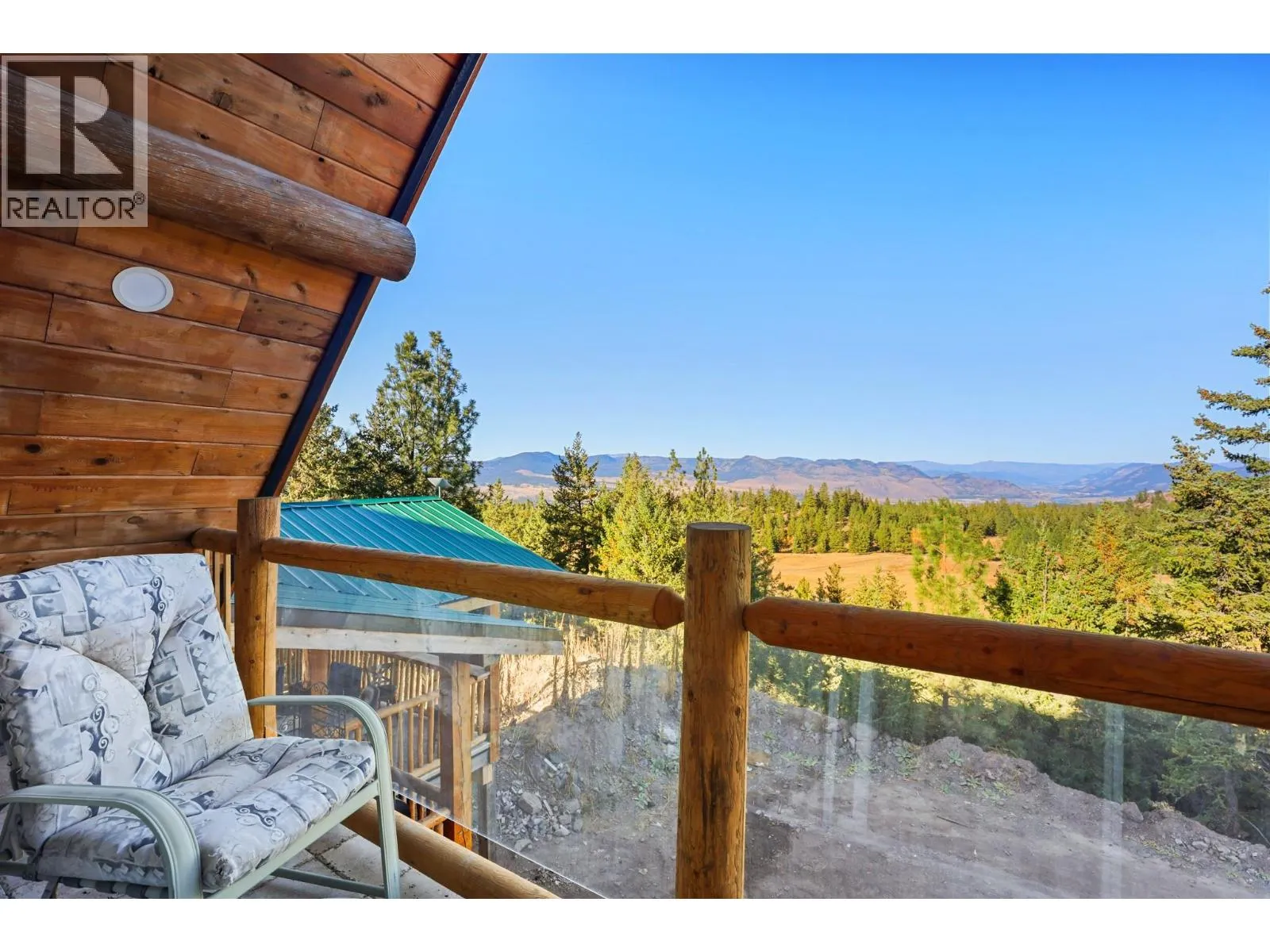 Just 25 minutes east of Kamloops, this 4,199 sq.ft. custom Fir Log home blends modern comfort with timeless craftsmanship. This home is a SHOWSTOPPER! 4 bed, 3.5 bath, 3 level home offers soaring 25-ft vaulted ceiling great room, exposed beams, and walls of glass frame sweeping views of Kamloops Lake and Mount Tod. The open-concept layout showcases Scandinavian-inspired design with seamless flow to a 1,600+ sq.ft. travertine patio-perfect for entertaining or quiet evenings under the BC sky. This truly is an entertainers paradise. The kitchen features custom cabinetry, solid wood counters, and stainless-steel appliances. Upstairs, two bedrooms include a serene primary suite with dual balconies with VIEWS of Kamploops Lake and the entire valley, vaulted ceilings, and 2 spa-like ensuite. 3 stories with complete walk out basement with Nanny suite on ground floor with a tons of space for a games room or media room. Set on 59.3 private acres, this property offers two 20'x16' horse shelters, a round pen, and flat, usable land ideal for expansion or equestrian pursuits. A 200-ft deep well provides excellent water, and zoning allows for a second home. This exceptional estate captures the essence of BC living-panoramic beauty, privacy, and handcrafted luxury in one breathtaking setting. The possibilities are endless with this property - call today for your private showing. (id:27476)