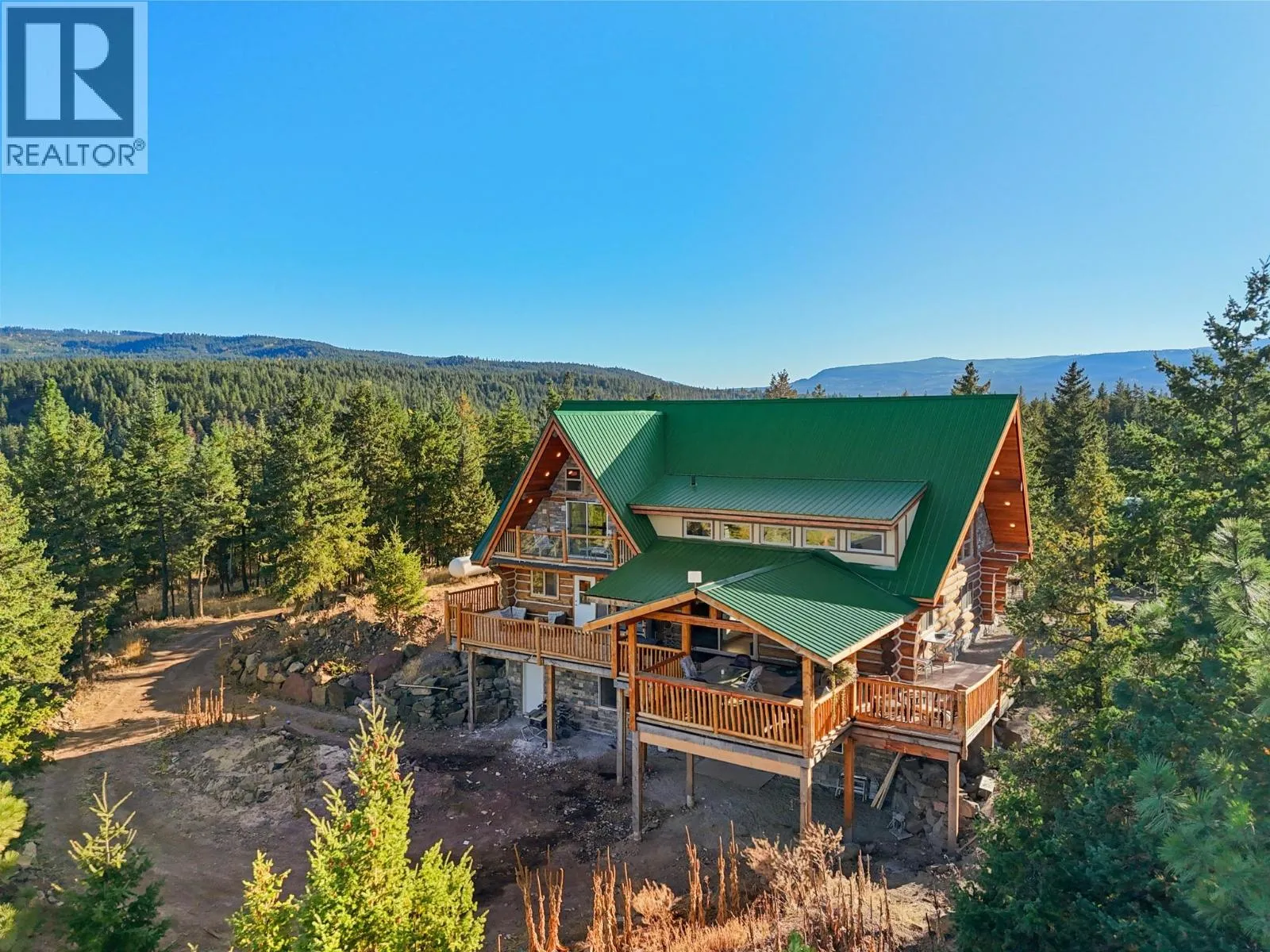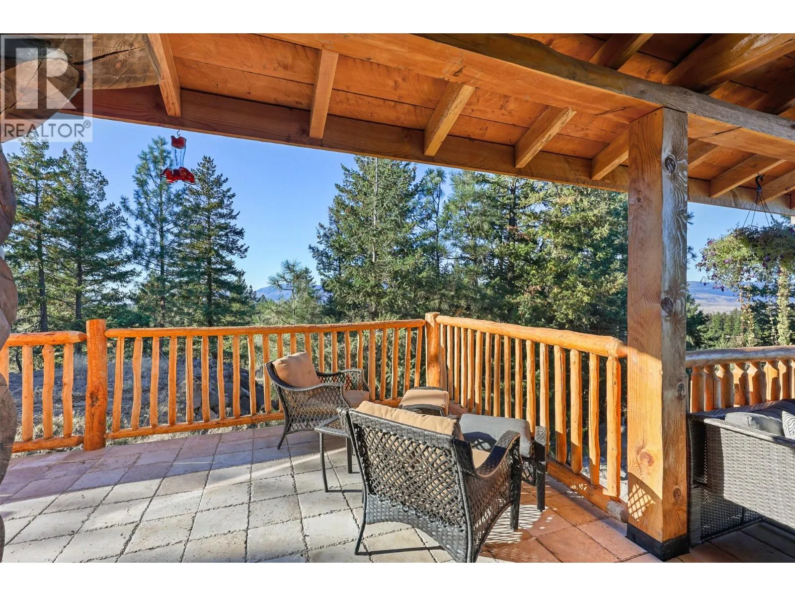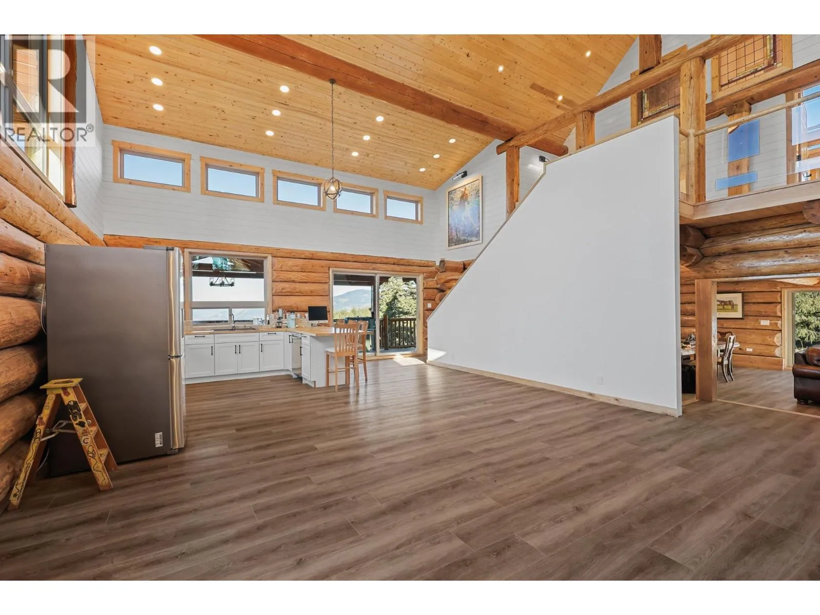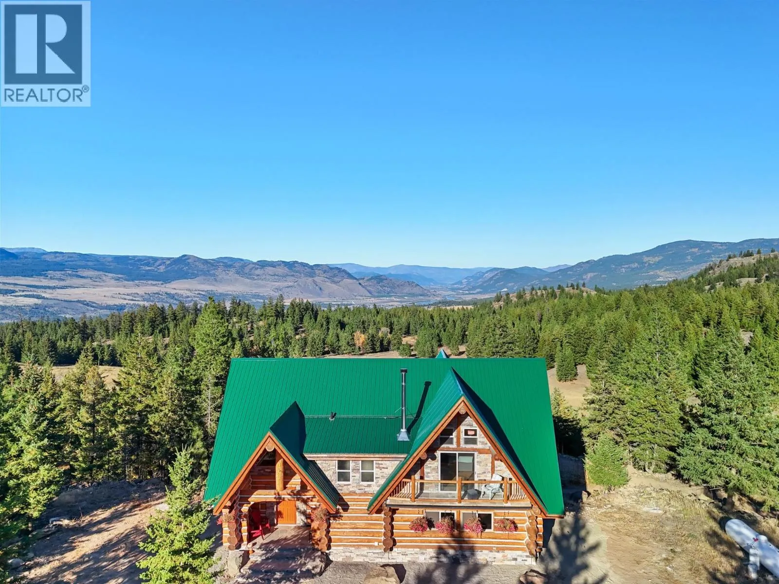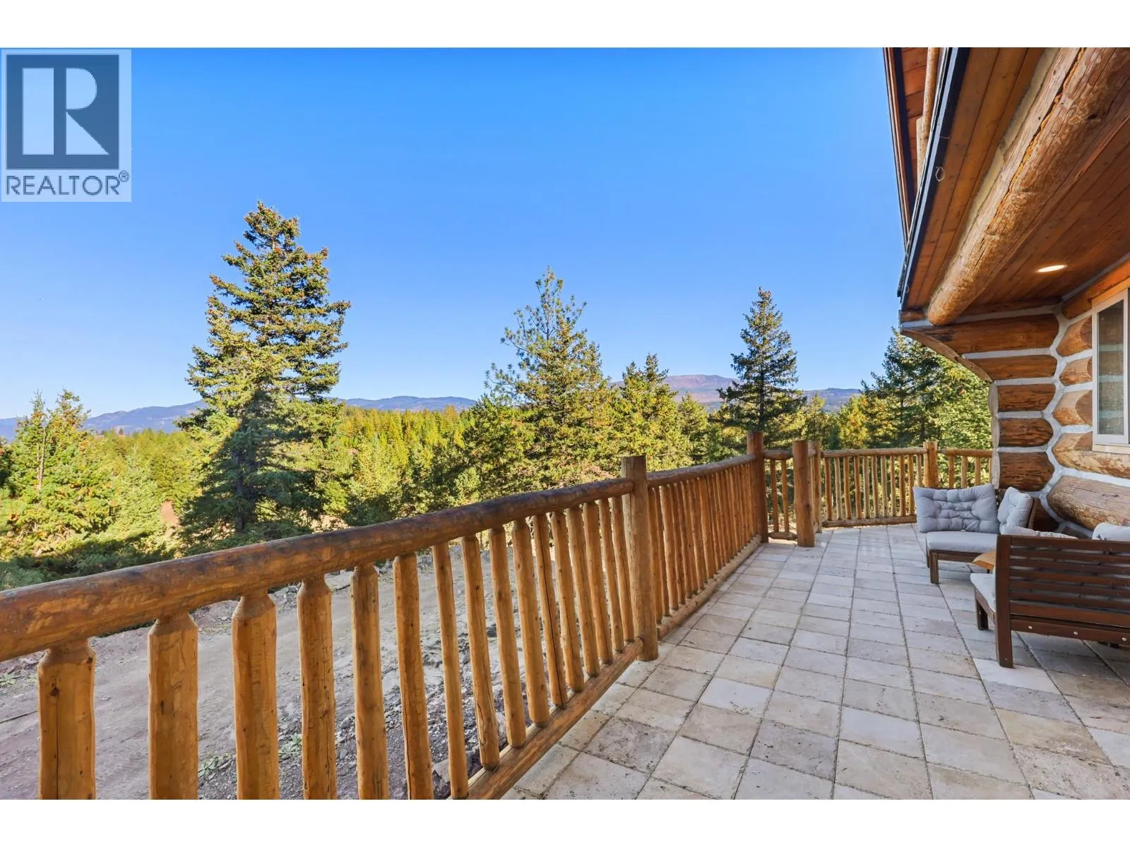 Just 25 minutes east of Kamloops, this 4,199 sq.ft. custom Fir Log home blends modern comfort with timeless craftsmanship. This home is a SHOWSTOPPER! 4 bed, 3.5 bath, 3 level home offers soaring 25-ft vaulted ceiling great room, exposed beams, and walls of glass frame sweeping views of Kamloops Lake and Mount Tod. The open-concept layout showcases Scandinavian-inspired design with seamless flow to a 1,600+ sq.ft. travertine patio-perfect for entertaining or quiet evenings under the BC sky. This truly is an entertainers paradise. The kitchen features custom cabinetry, solid wood counters, and stainless-steel appliances. Upstairs, two bedrooms include a serene primary suite with dual balconies with VIEWS of Kamploops Lake and the entire valley, vaulted ceilings, and 2 spa-like ensuite. 3 stories with complete walk out basement with Nanny suite on ground floor with a tons of space for a games room or media room. Set on 59.3 private acres, this property offers two 20'x16' horse shelters, a round pen, and flat, usable land ideal for expansion or equestrian pursuits. A 200-ft deep well provides excellent water, and zoning allows for a second home. This exceptional estate captures the essence of BC living-panoramic beauty, privacy, and handcrafted luxury in one breathtaking setting. The possibilities are endless with this property - call today for your private showing. (id:27476)