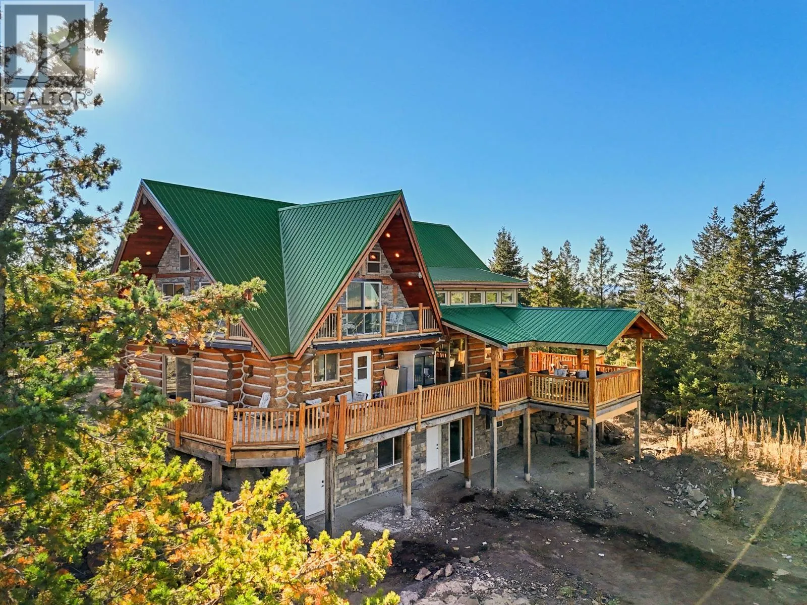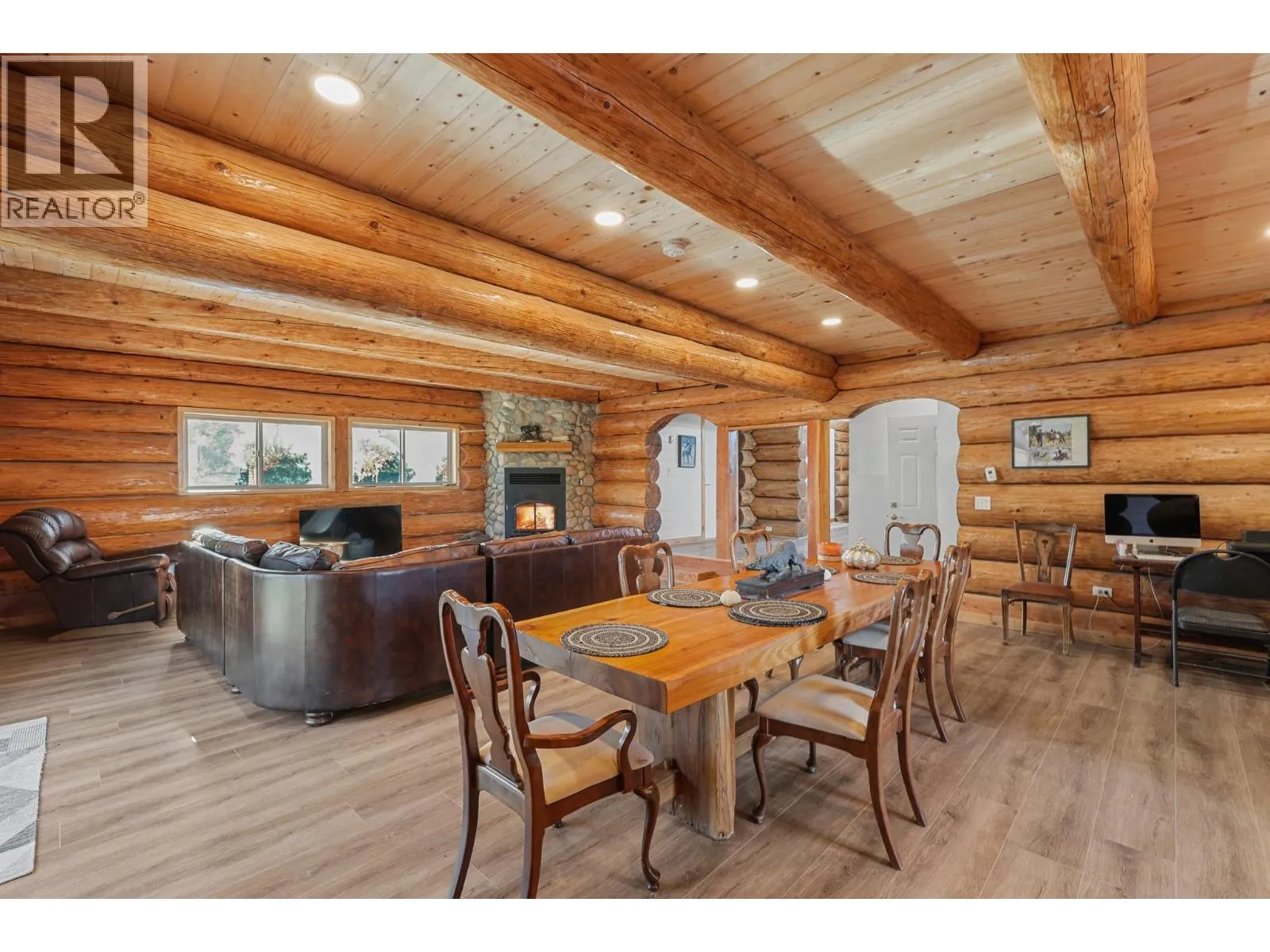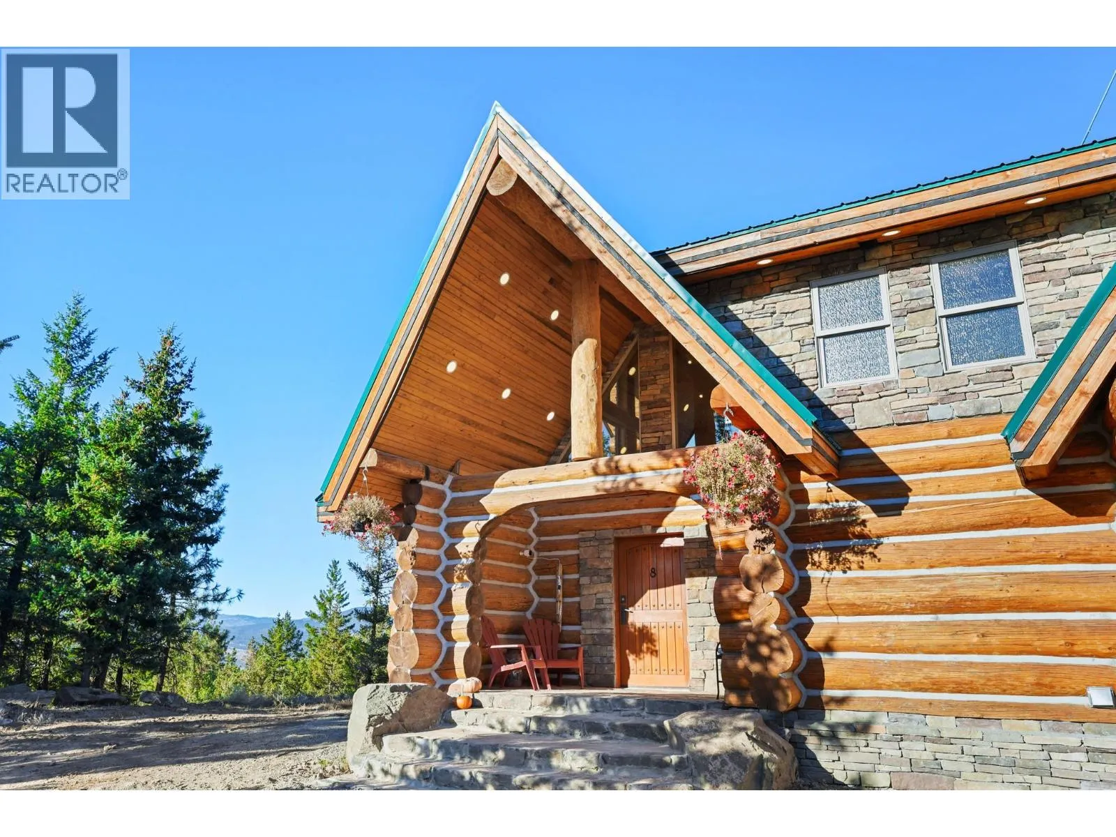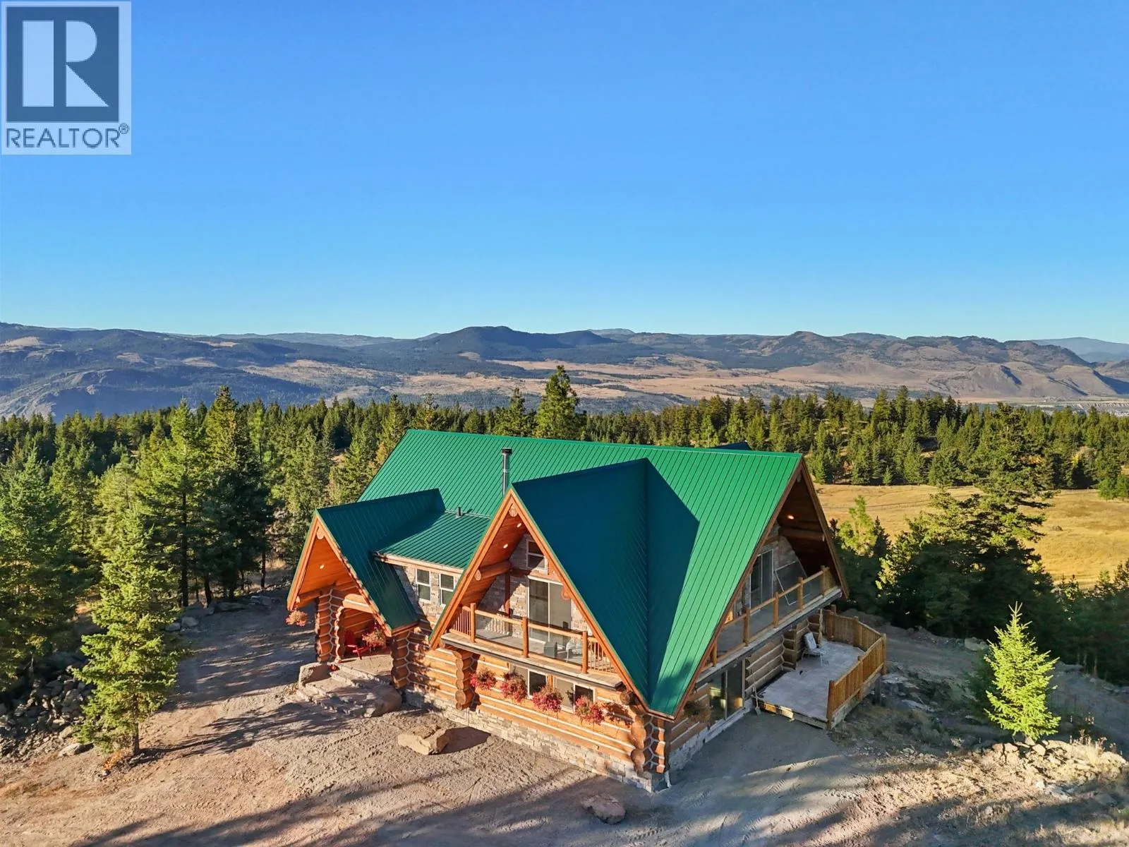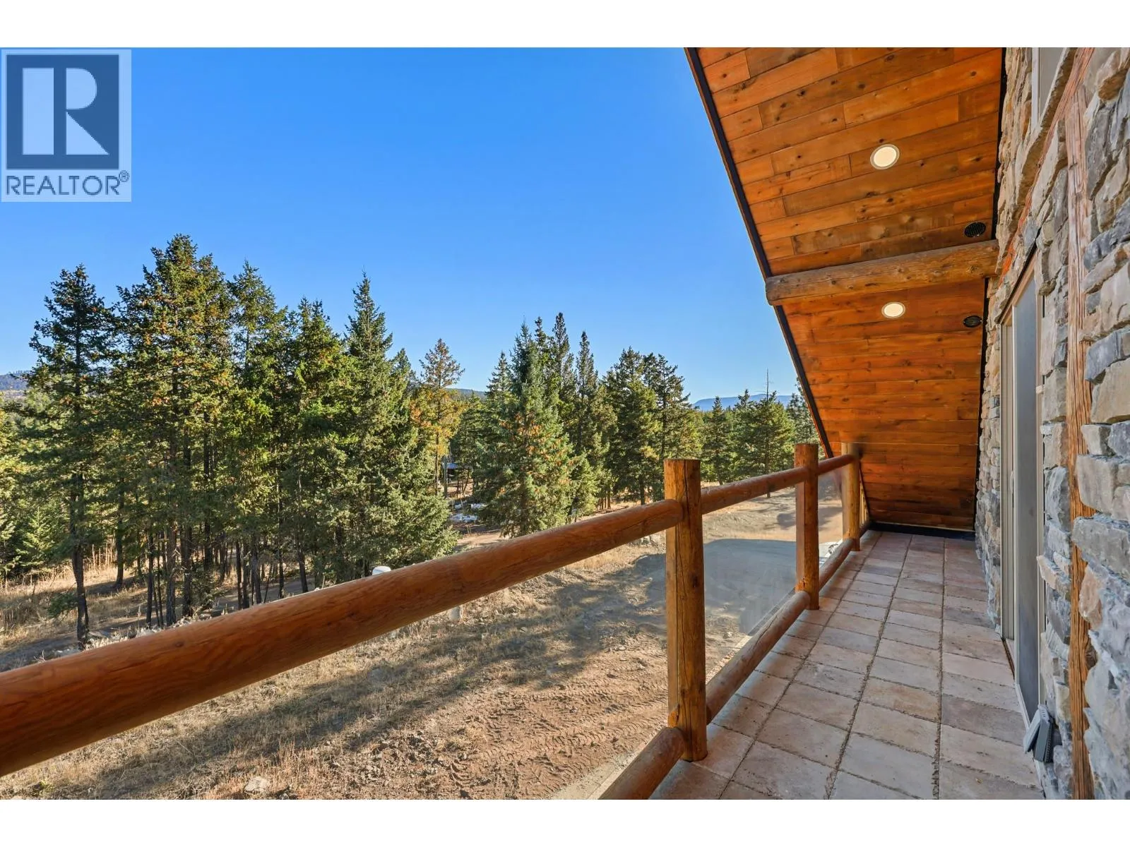 Just 25 minutes east of Kamloops, this 4,199 sq.ft. custom Fir Log home blends modern comfort with timeless craftsmanship. This home is a SHOWSTOPPER! 4 bed, 3.5 bath, 3 level home offers soaring 25-ft vaulted ceiling great room, exposed beams, and walls of glass frame sweeping views of Kamloops Lake and Mount Tod. The open-concept layout showcases Scandinavian-inspired design with seamless flow to a 1,600+ sq.ft. travertine patio-perfect for entertaining or quiet evenings under the BC sky. This truly is an entertainers paradise. The kitchen features custom cabinetry, solid wood counters, and stainless-steel appliances. Upstairs, two bedrooms include a serene primary suite with dual balconies with VIEWS of Kamploops Lake and the entire valley, vaulted ceilings, and 2 spa-like ensuite. 3 stories with complete walk out basement with Nanny suite on ground floor with a tons of space for a games room or media room. Set on 59.3 private acres, this property offers two 20'x16' horse shelters, a round pen, and flat, usable land ideal for expansion or equestrian pursuits. A 200-ft deep well provides excellent water, and zoning allows for a second home. This exceptional estate captures the essence of BC living-panoramic beauty, privacy, and handcrafted luxury in one breathtaking setting. The possibilities are endless with this property - call today for your private showing. (id:27476)