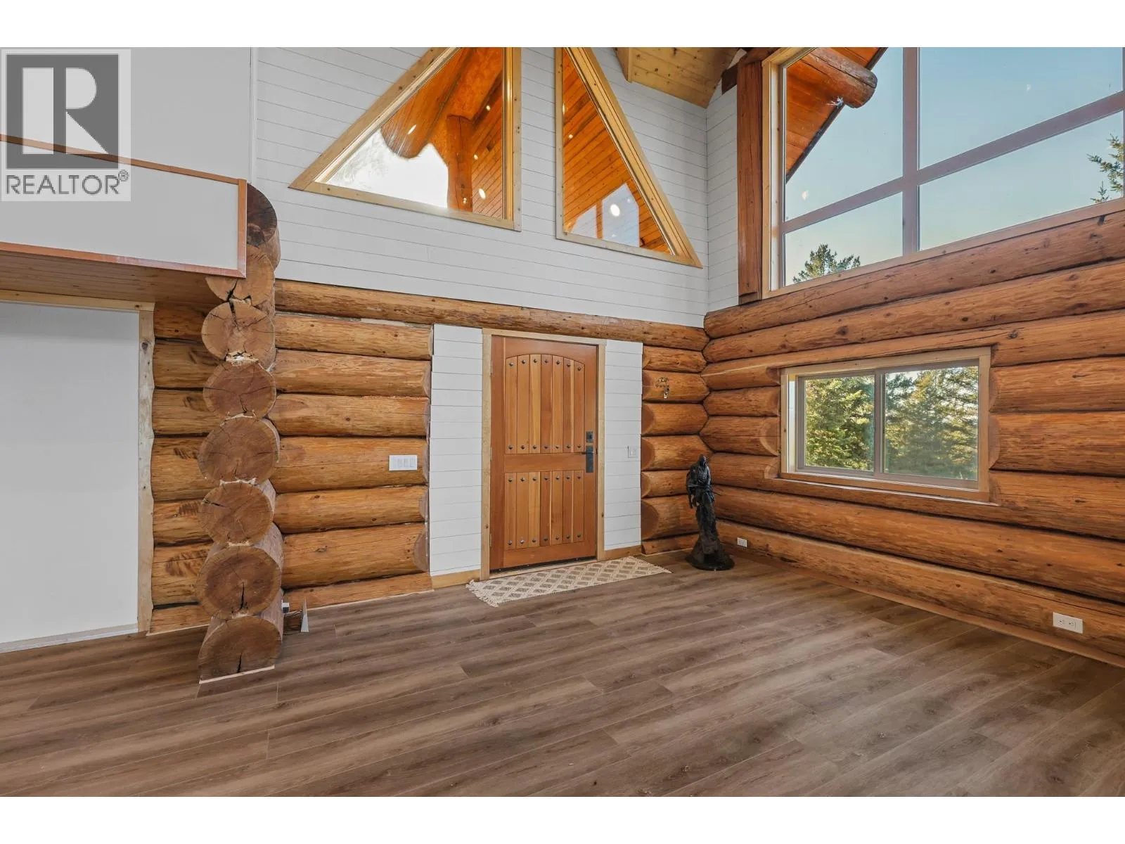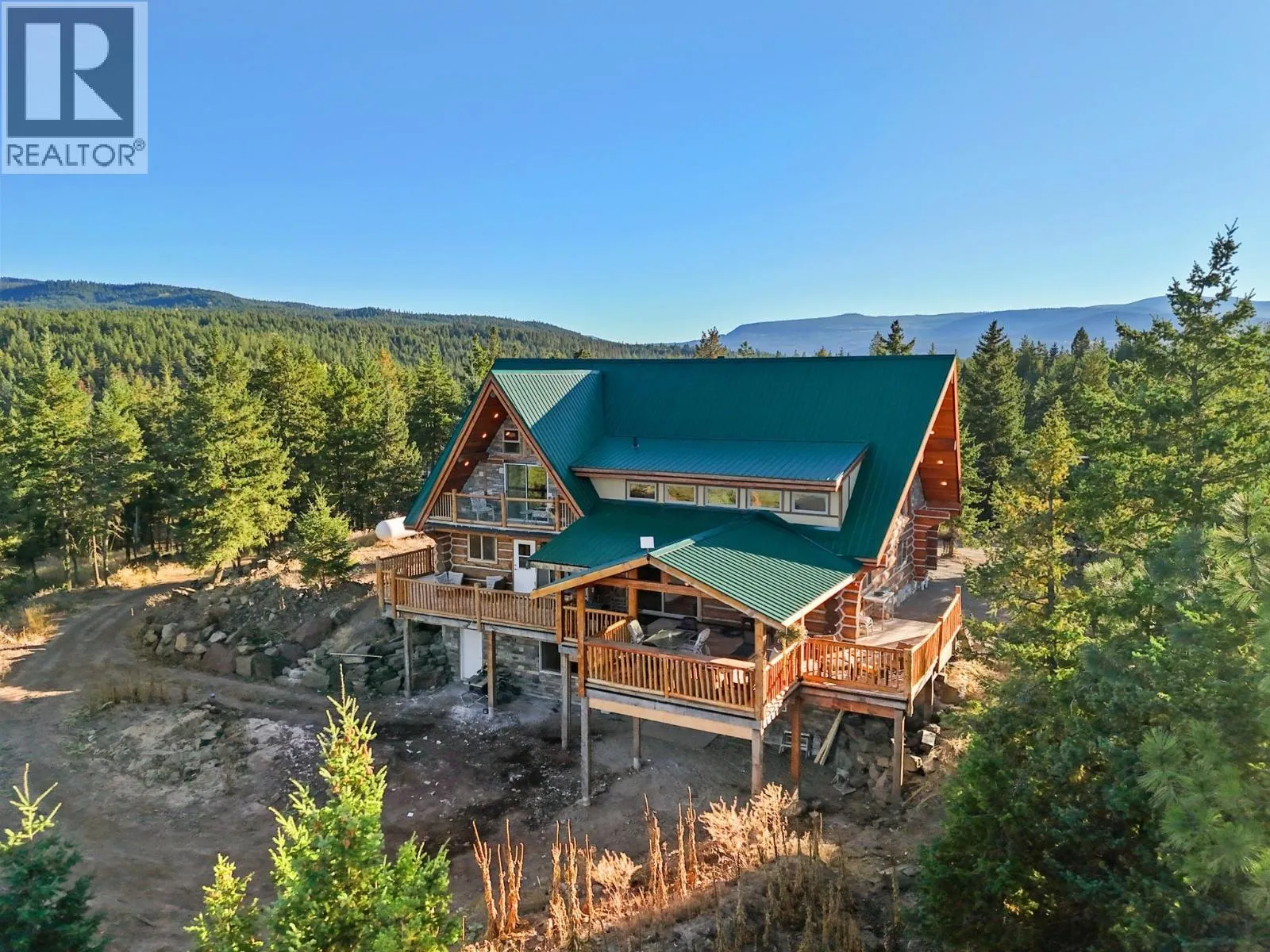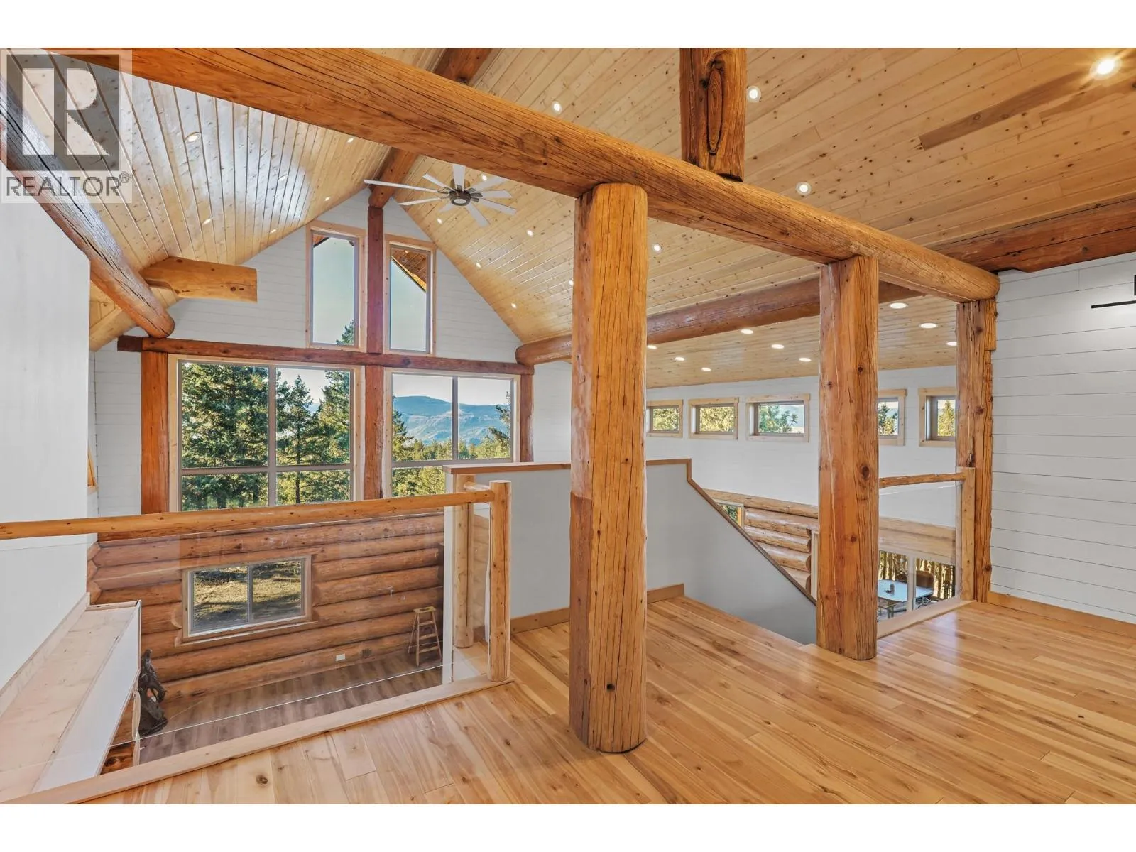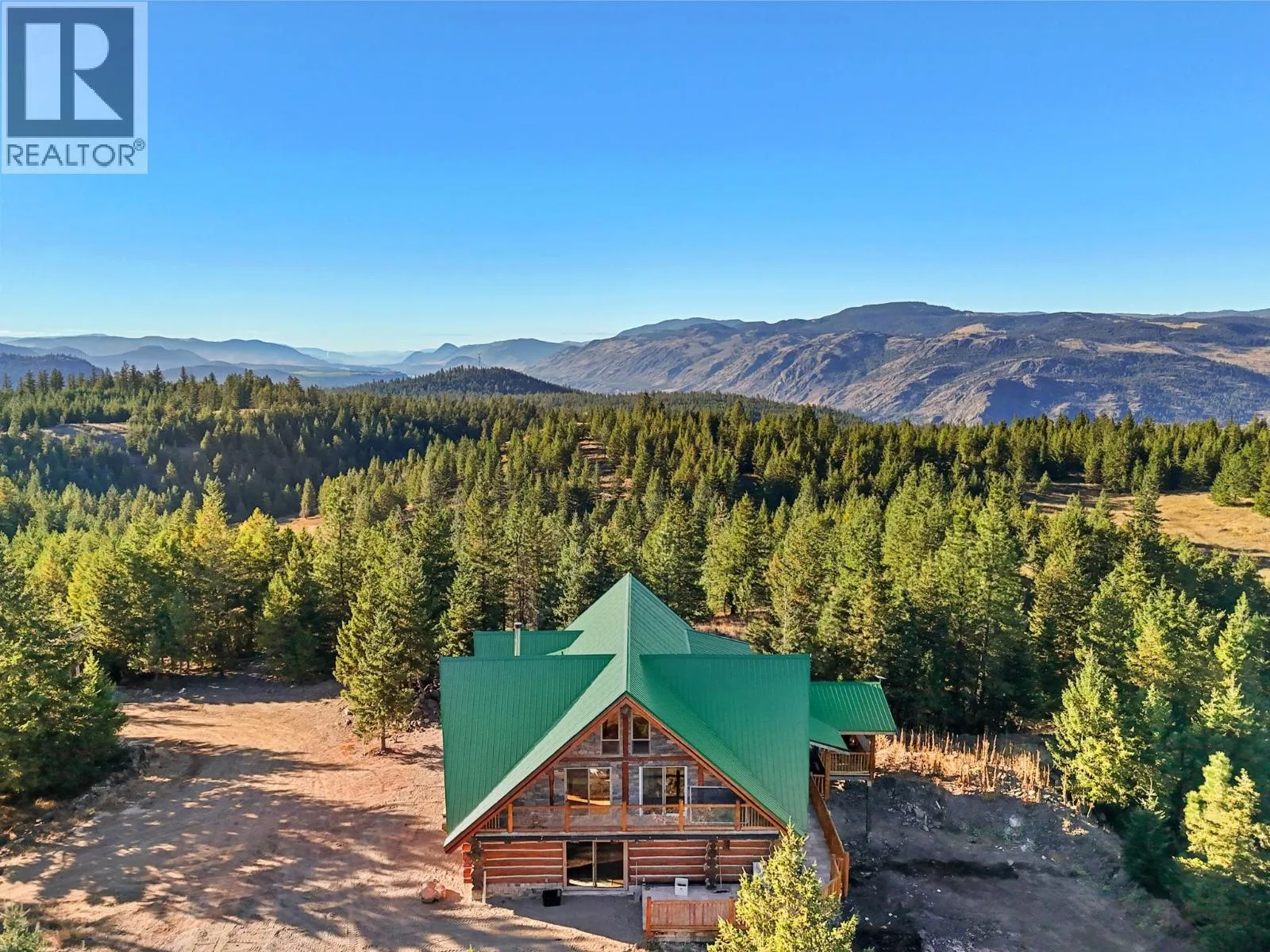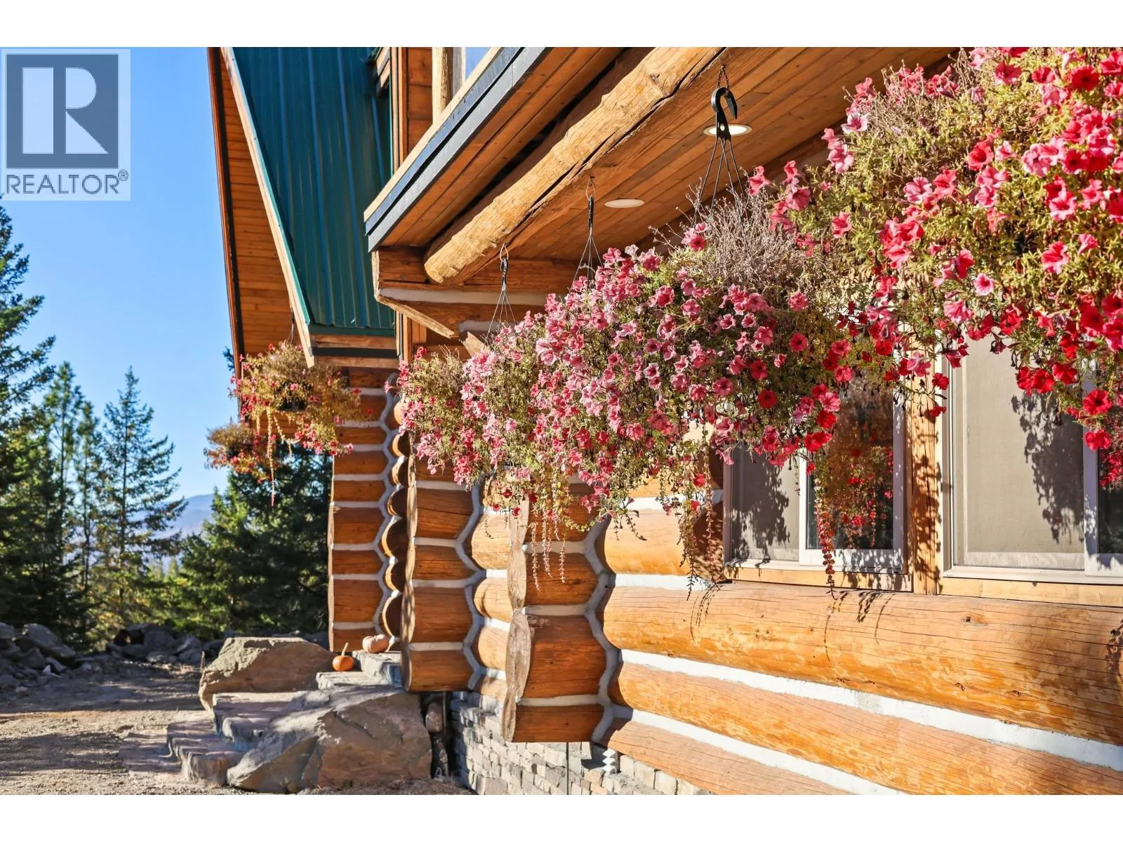 Just 25 minutes east of Kamloops, this 4,199 sq.ft. custom Fir Log home blends modern comfort with timeless craftsmanship. This home is a SHOWSTOPPER! 4 bed, 3.5 bath, 3 level home offers soaring 25-ft vaulted ceiling great room, exposed beams, and walls of glass frame sweeping views of Kamloops Lake and Mount Tod. The open-concept layout showcases Scandinavian-inspired design with seamless flow to a 1,600+ sq.ft. travertine patio-perfect for entertaining or quiet evenings under the BC sky. This truly is an entertainers paradise. The kitchen features custom cabinetry, solid wood counters, and stainless-steel appliances. Upstairs, two bedrooms include a serene primary suite with dual balconies with VIEWS of Kamploops Lake and the entire valley, vaulted ceilings, and 2 spa-like ensuite. 3 stories with complete walk out basement with Nanny suite on ground floor with a tons of space for a games room or media room. Set on 59.3 private acres, this property offers two 20'x16' horse shelters, a round pen, and flat, usable land ideal for expansion or equestrian pursuits. A 200-ft deep well provides excellent water, and zoning allows for a second home. This exceptional estate captures the essence of BC living-panoramic beauty, privacy, and handcrafted luxury in one breathtaking setting. The possibilities are endless with this property - call today for your private showing. (id:27476)
