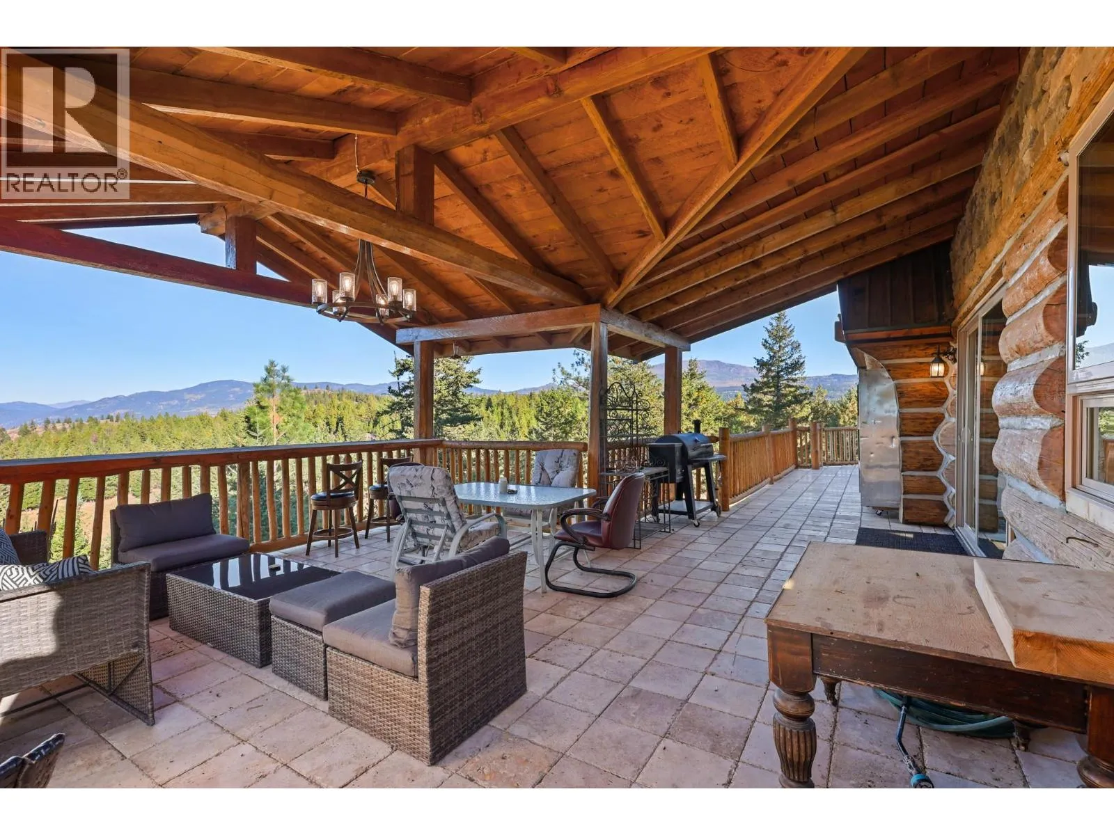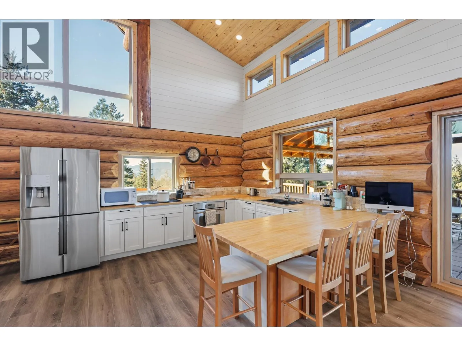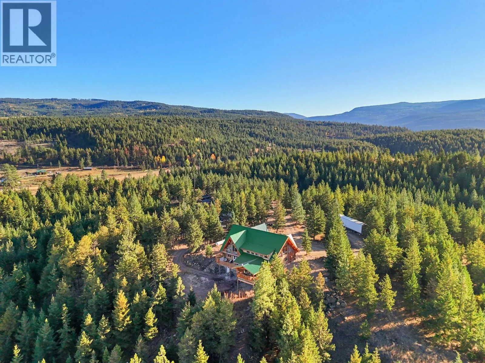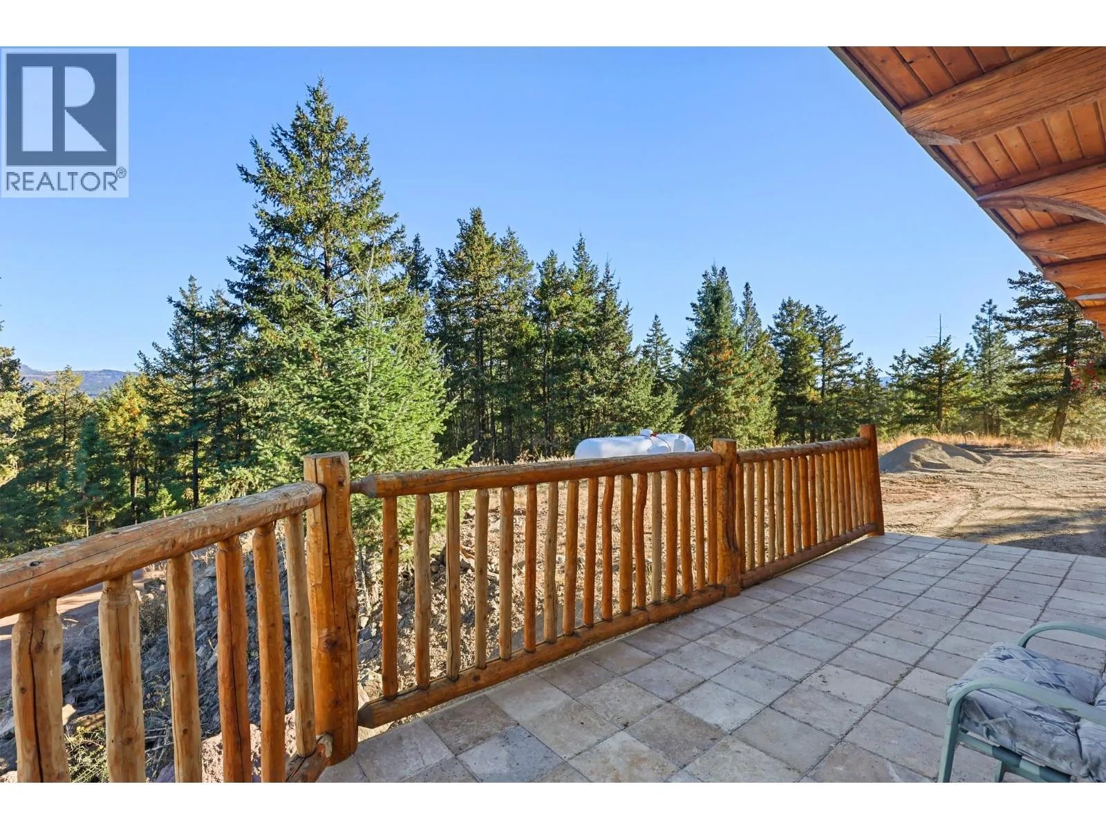 Just 25 minutes east of Kamloops, this 4,199 sq.ft. custom Fir Log home blends modern comfort with timeless craftsmanship. This home is a SHOWSTOPPER! 4 bed, 3.5 bath, 3 level home offers soaring 25-ft vaulted ceiling great room, exposed beams, and walls of glass frame sweeping views of Kamloops Lake and Mount Tod. The open-concept layout showcases Scandinavian-inspired design with seamless flow to a 1,600+ sq.ft. travertine patio-perfect for entertaining or quiet evenings under the BC sky. This truly is an entertainers paradise. The kitchen features custom cabinetry, solid wood counters, and stainless-steel appliances. Upstairs, two bedrooms include a serene primary suite with dual balconies with VIEWS of Kamploops Lake and the entire valley, vaulted ceilings, and 2 spa-like ensuite. 3 stories with complete walk out basement with Nanny suite on ground floor with a tons of space for a games room or media room. Set on 59.3 private acres, this property offers two 20'x16' horse shelters, a round pen, and flat, usable land ideal for expansion or equestrian pursuits. A 200-ft deep well provides excellent water, and zoning allows for a second home. This exceptional estate captures the essence of BC living-panoramic beauty, privacy, and handcrafted luxury in one breathtaking setting. The possibilities are endless with this property - call today for your private showing. (id:27476)