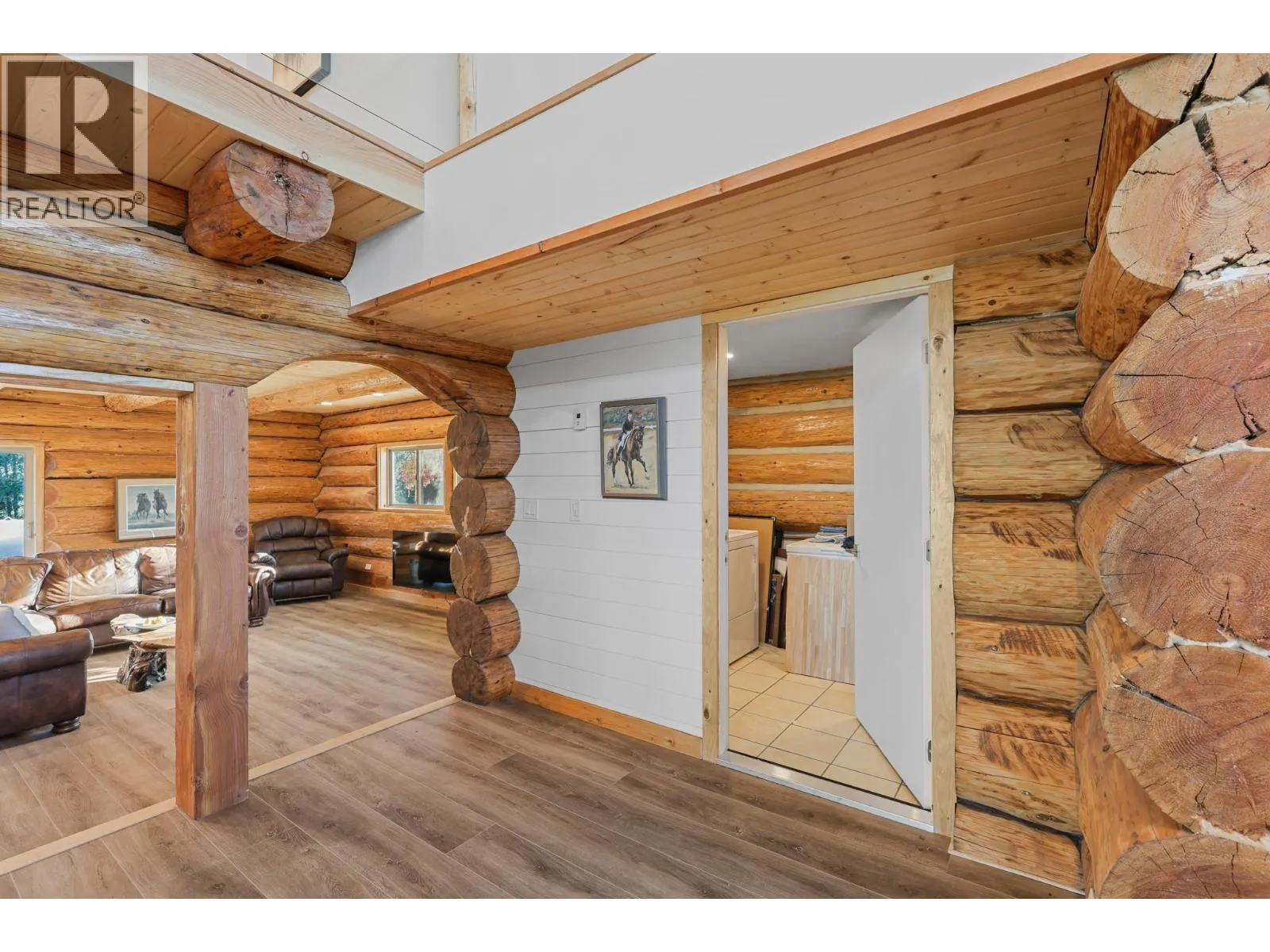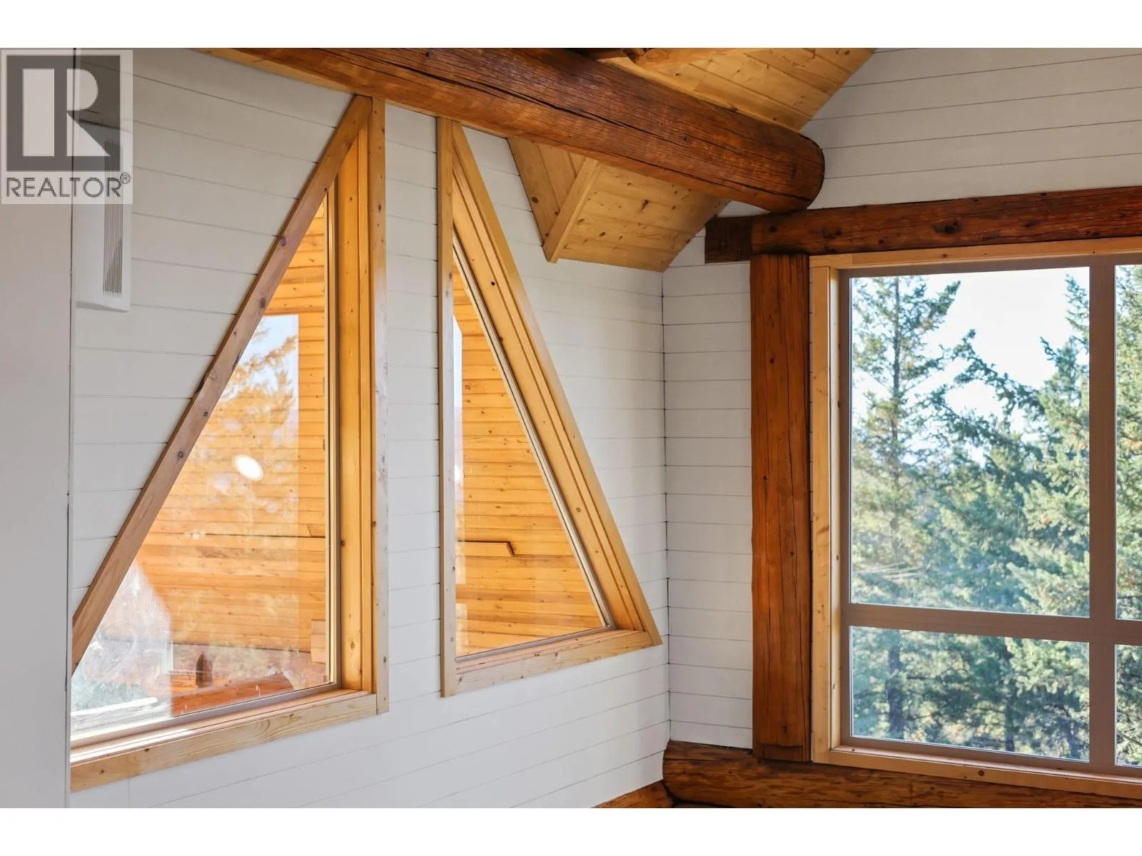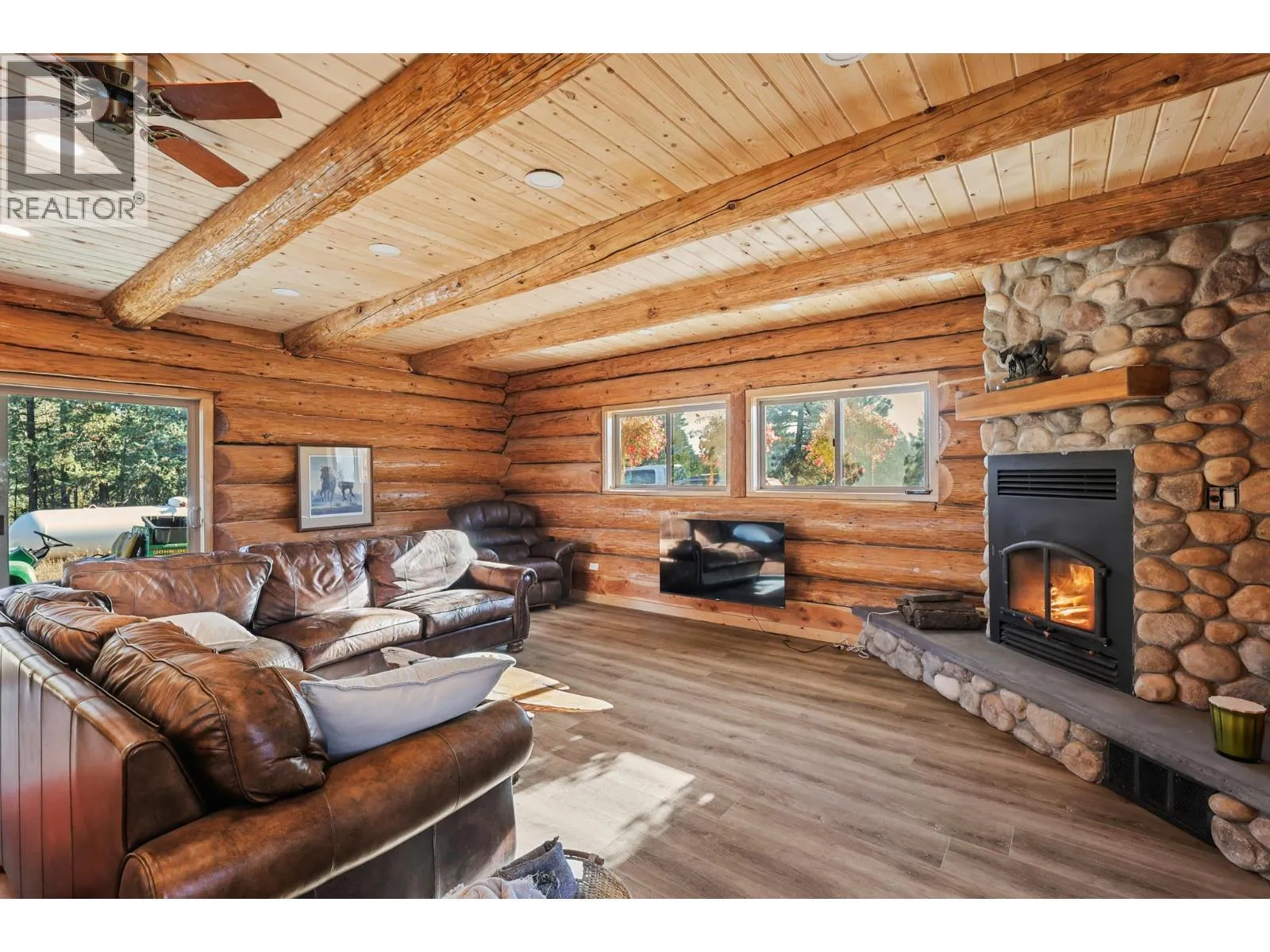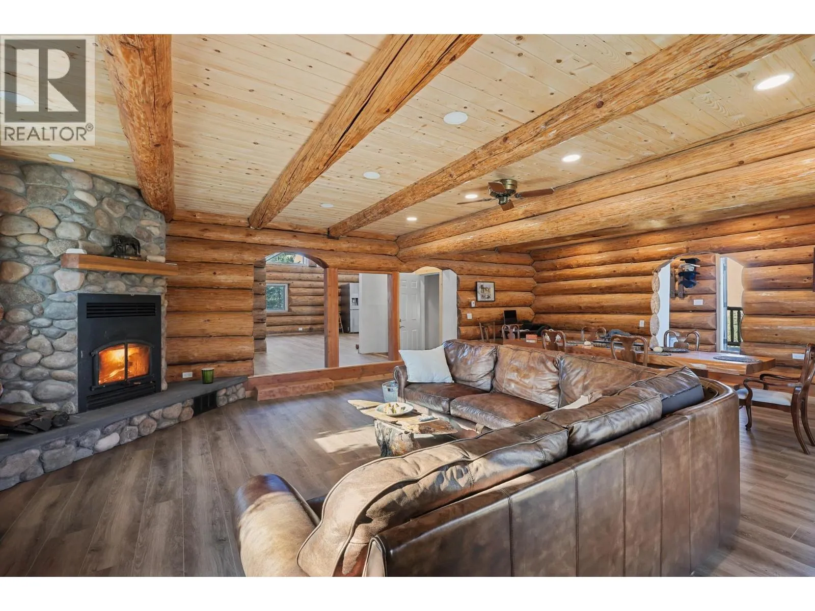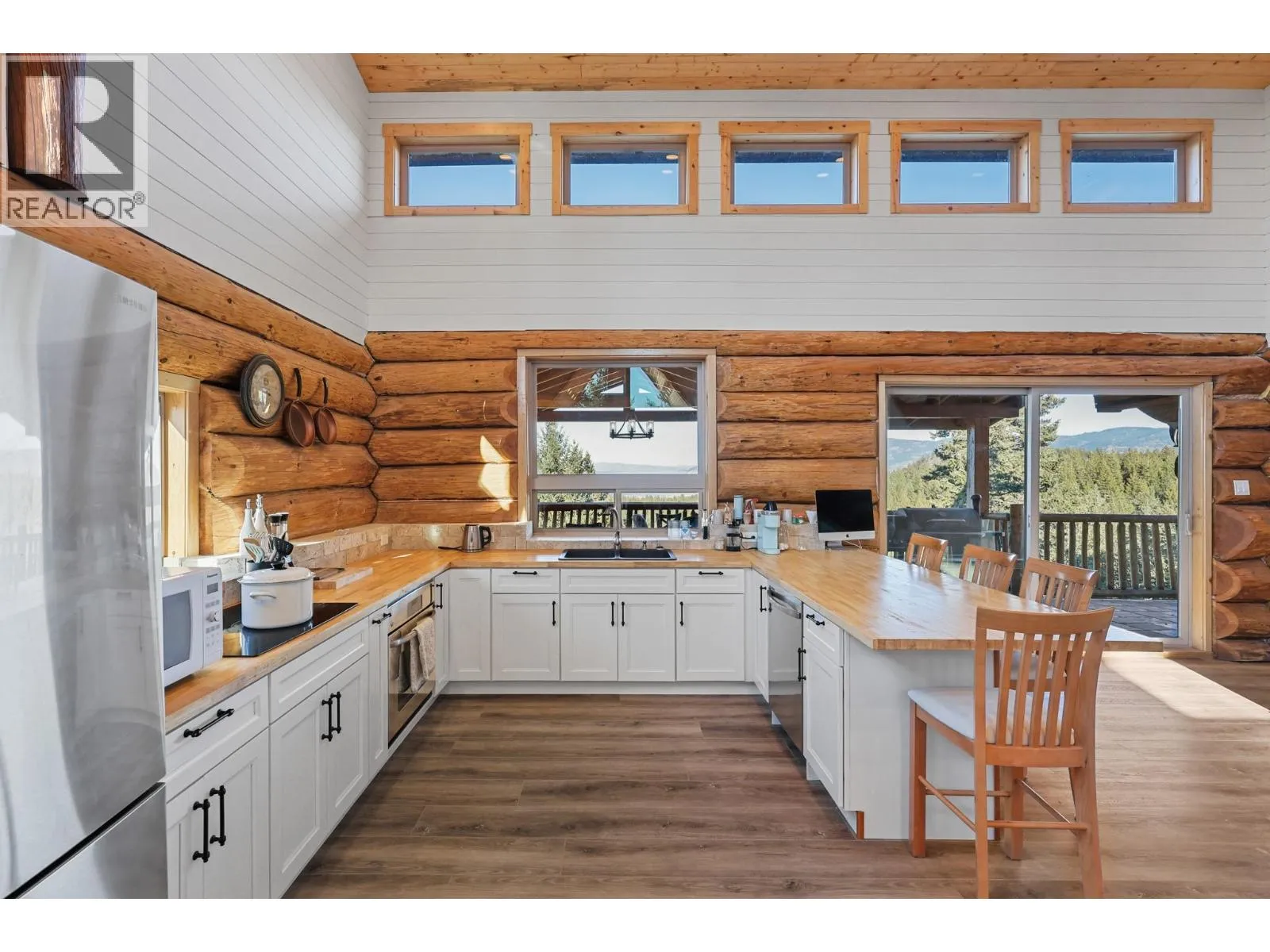 Just 25 minutes east of Kamloops, this 4,199 sq.ft. custom Fir Log home blends modern comfort with timeless craftsmanship. This home is a SHOWSTOPPER! 4 bed, 3.5 bath, 3 level home offers soaring 25-ft vaulted ceiling great room, exposed beams, and walls of glass frame sweeping views of Kamloops Lake and Mount Tod. The open-concept layout showcases Scandinavian-inspired design with seamless flow to a 1,600+ sq.ft. travertine patio-perfect for entertaining or quiet evenings under the BC sky. This truly is an entertainers paradise. The kitchen features custom cabinetry, solid wood counters, and stainless-steel appliances. Upstairs, two bedrooms include a serene primary suite with dual balconies with VIEWS of Kamploops Lake and the entire valley, vaulted ceilings, and 2 spa-like ensuite. 3 stories with complete walk out basement with Nanny suite on ground floor with a tons of space for a games room or media room. Set on 59.3 private acres, this property offers two 20'x16' horse shelters, a round pen, and flat, usable land ideal for expansion or equestrian pursuits. A 200-ft deep well provides excellent water, and zoning allows for a second home. This exceptional estate captures the essence of BC living-panoramic beauty, privacy, and handcrafted luxury in one breathtaking setting. The possibilities are endless with this property - call today for your private showing. (id:27476)