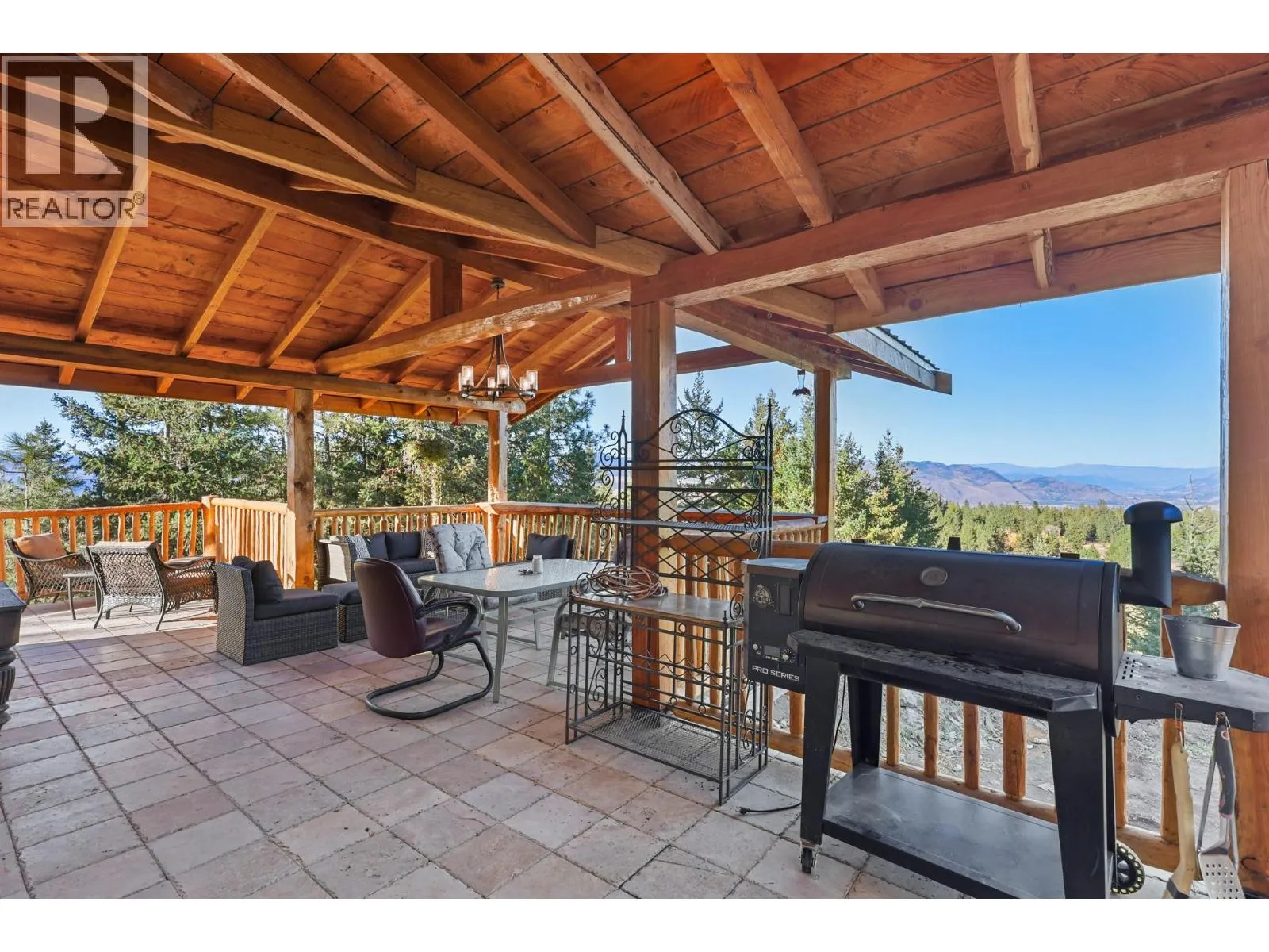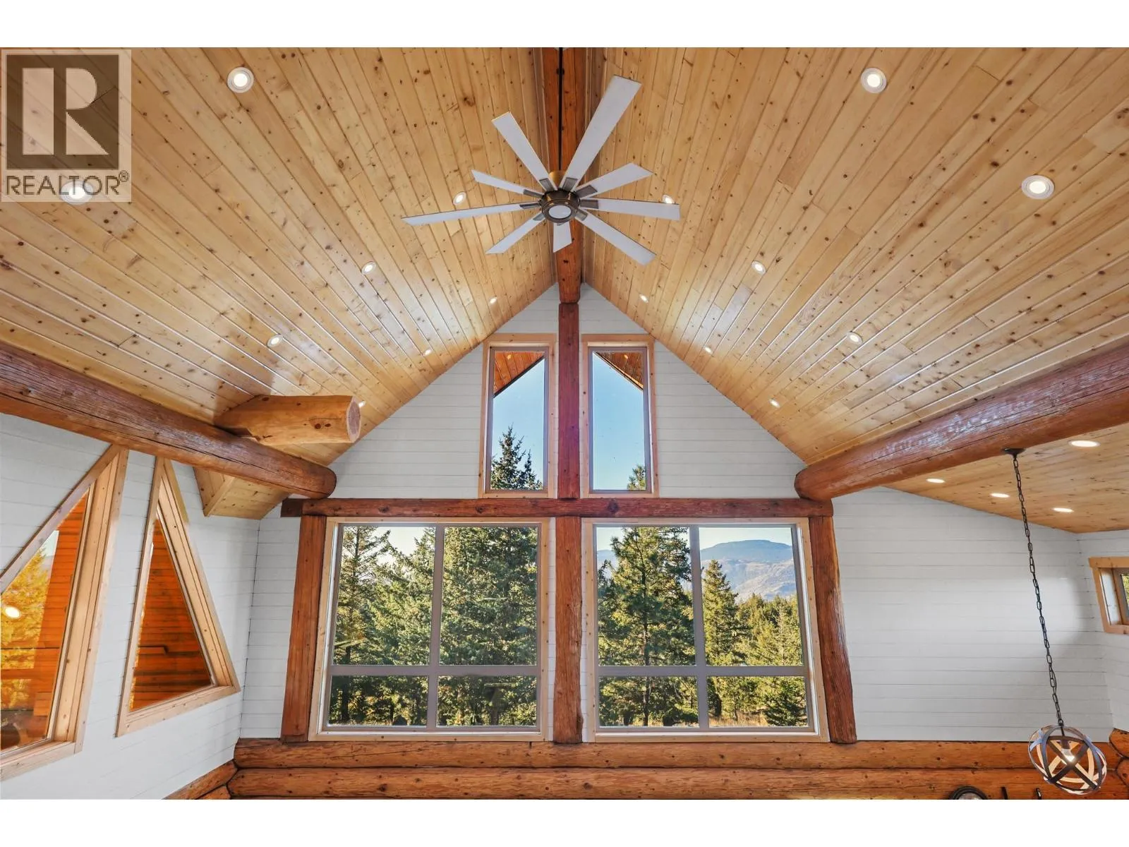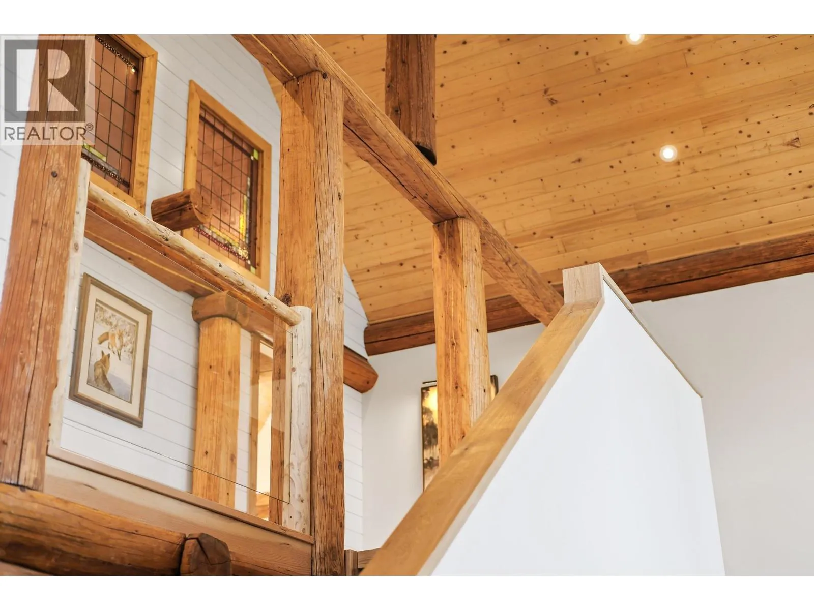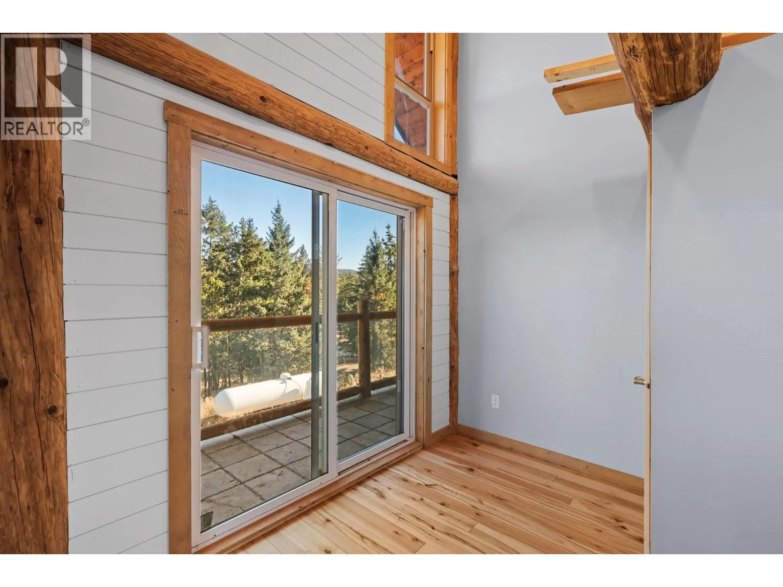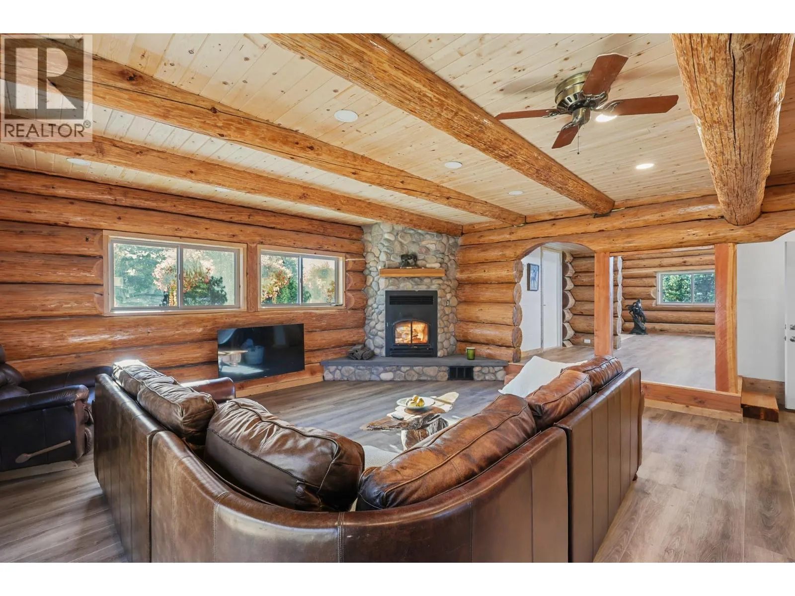 Just 25 minutes east of Kamloops, this 4,199 sq.ft. custom Fir Log home blends modern comfort with timeless craftsmanship. This home is a SHOWSTOPPER! 4 bed, 3.5 bath, 3 level home offers soaring 25-ft vaulted ceiling great room, exposed beams, and walls of glass frame sweeping views of Kamloops Lake and Mount Tod. The open-concept layout showcases Scandinavian-inspired design with seamless flow to a 1,600+ sq.ft. travertine patio-perfect for entertaining or quiet evenings under the BC sky. This truly is an entertainers paradise. The kitchen features custom cabinetry, solid wood counters, and stainless-steel appliances. Upstairs, two bedrooms include a serene primary suite with dual balconies with VIEWS of Kamploops Lake and the entire valley, vaulted ceilings, and 2 spa-like ensuite. 3 stories with complete walk out basement with Nanny suite on ground floor with a tons of space for a games room or media room. Set on 59.3 private acres, this property offers two 20'x16' horse shelters, a round pen, and flat, usable land ideal for expansion or equestrian pursuits. A 200-ft deep well provides excellent water, and zoning allows for a second home. This exceptional estate captures the essence of BC living-panoramic beauty, privacy, and handcrafted luxury in one breathtaking setting. The possibilities are endless with this property - call today for your private showing. (id:27476)