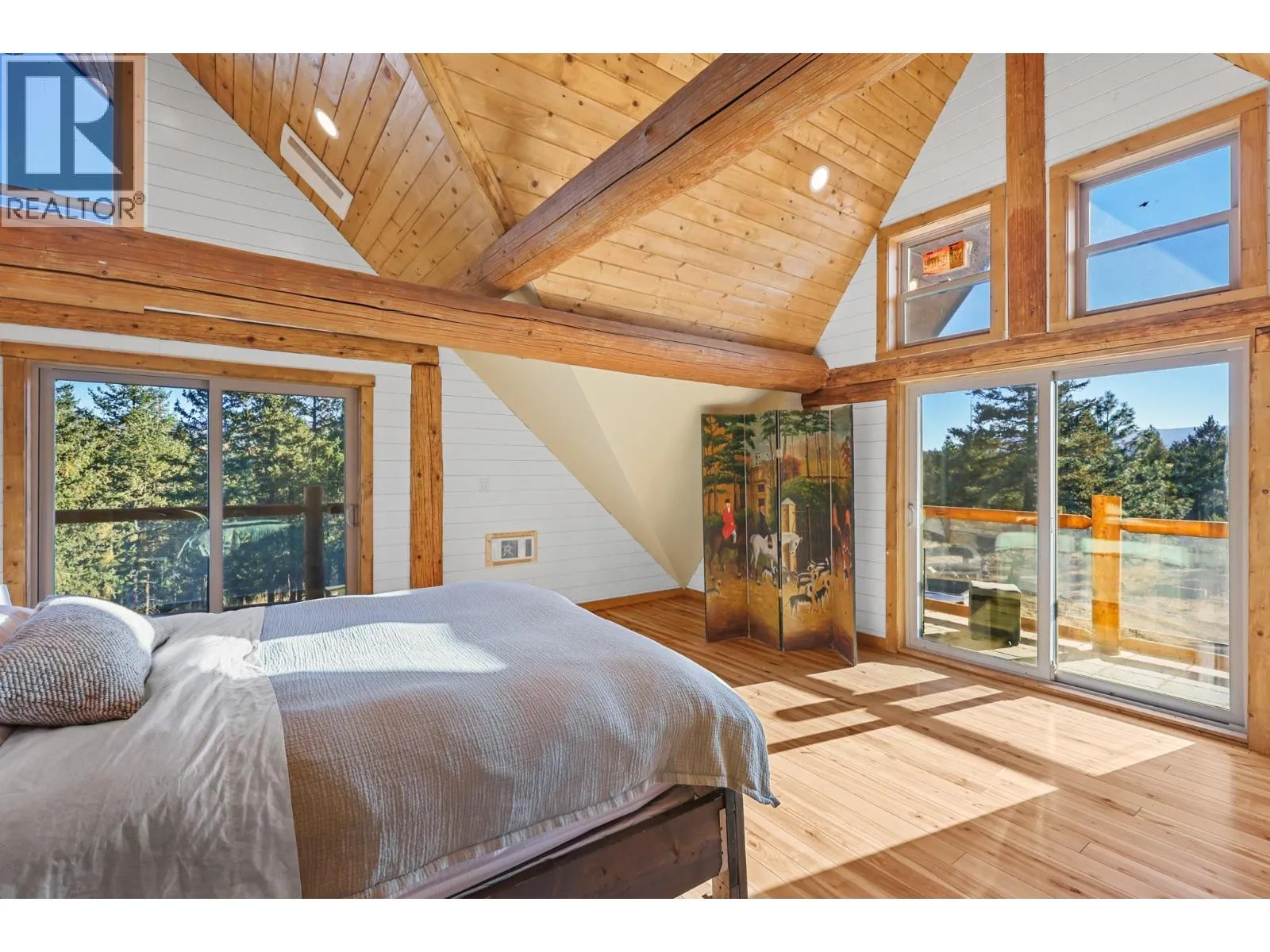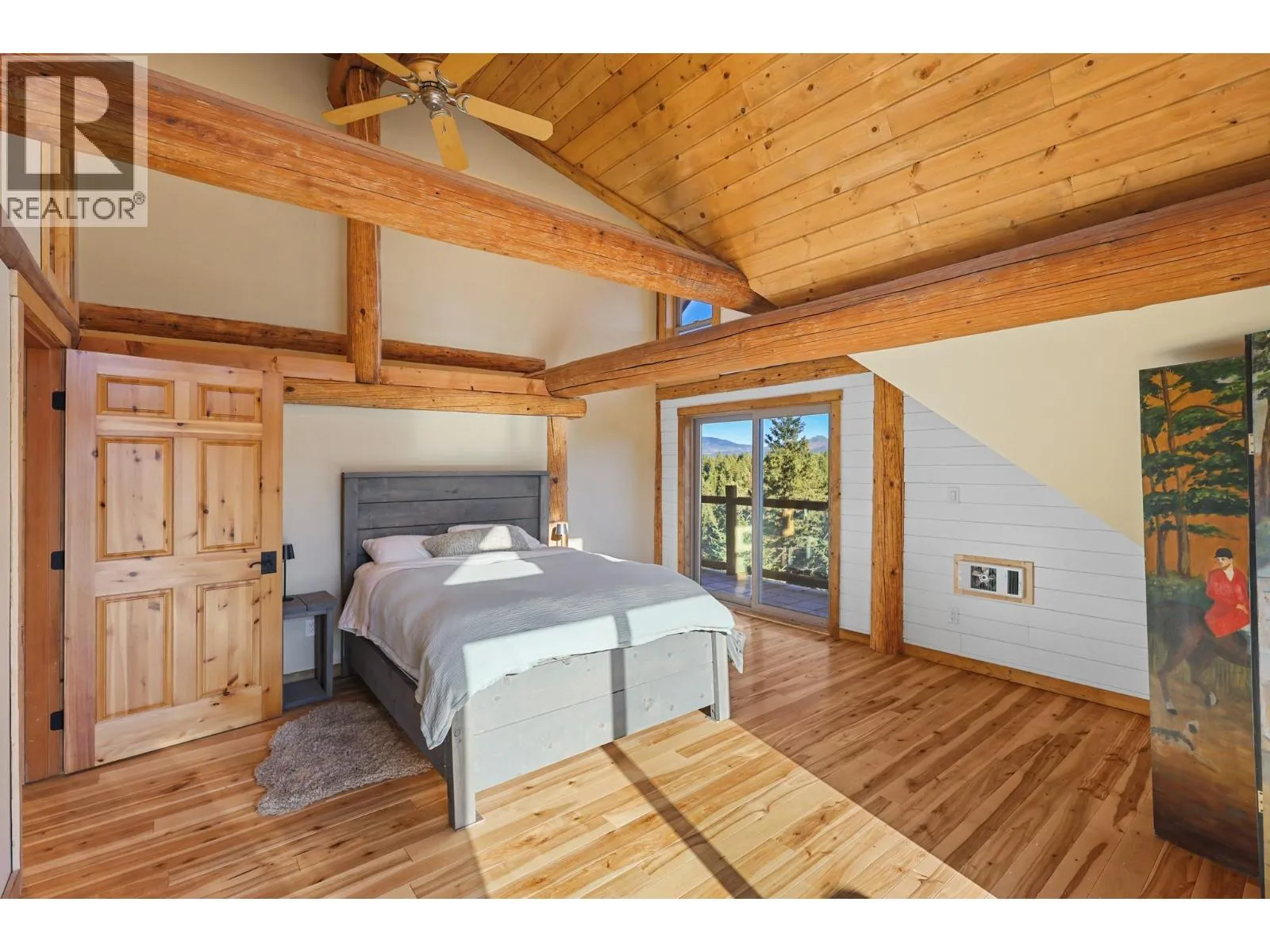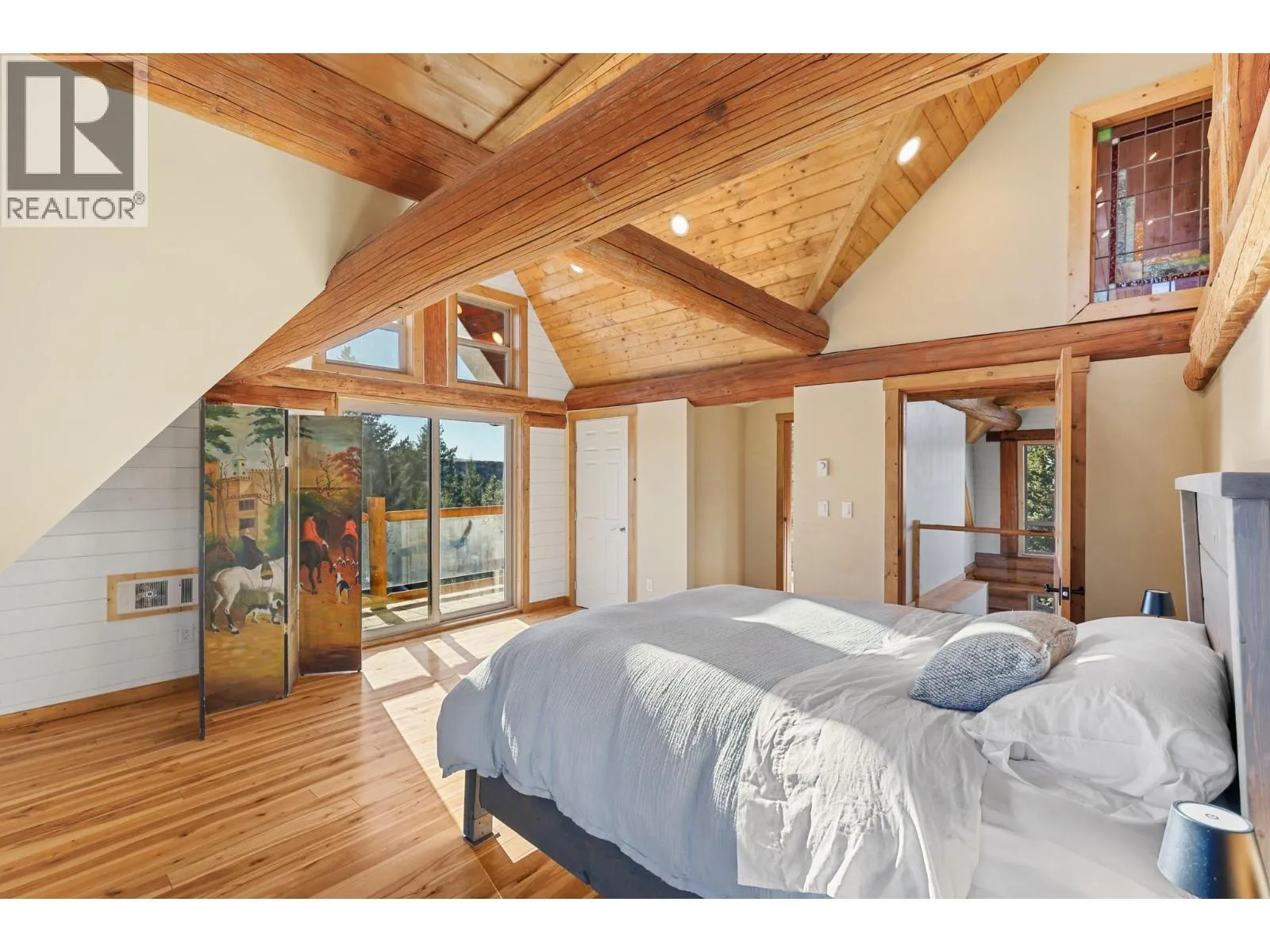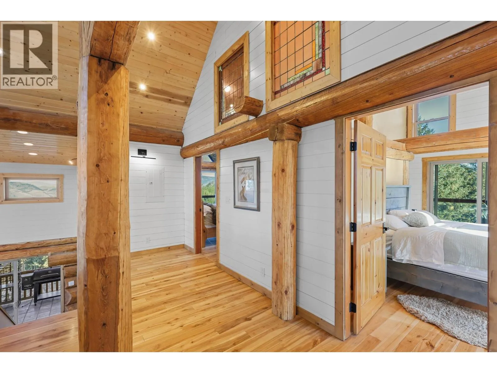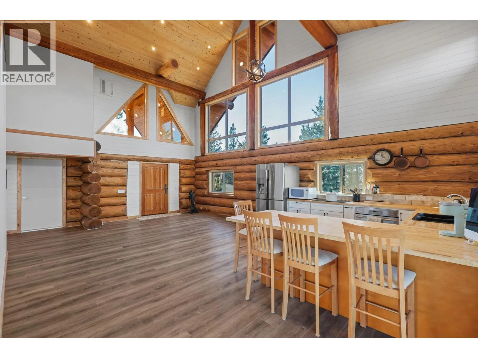 Just 25 minutes east of Kamloops, this 4,199 sq.ft. custom Fir Log home blends modern comfort with timeless craftsmanship. This home is a SHOWSTOPPER! 4 bed, 3.5 bath, 3 level home offers soaring 25-ft vaulted ceiling great room, exposed beams, and walls of glass frame sweeping views of Kamloops Lake and Mount Tod. The open-concept layout showcases Scandinavian-inspired design with seamless flow to a 1,600+ sq.ft. travertine patio-perfect for entertaining or quiet evenings under the BC sky. This truly is an entertainers paradise. The kitchen features custom cabinetry, solid wood counters, and stainless-steel appliances. Upstairs, two bedrooms include a serene primary suite with dual balconies with VIEWS of Kamploops Lake and the entire valley, vaulted ceilings, and 2 spa-like ensuite. 3 stories with complete walk out basement with Nanny suite on ground floor with a tons of space for a games room or media room. Set on 59.3 private acres, this property offers two 20'x16' horse shelters, a round pen, and flat, usable land ideal for expansion or equestrian pursuits. A 200-ft deep well provides excellent water, and zoning allows for a second home. This exceptional estate captures the essence of BC living-panoramic beauty, privacy, and handcrafted luxury in one breathtaking setting. The possibilities are endless with this property - call today for your private showing. (id:27476)