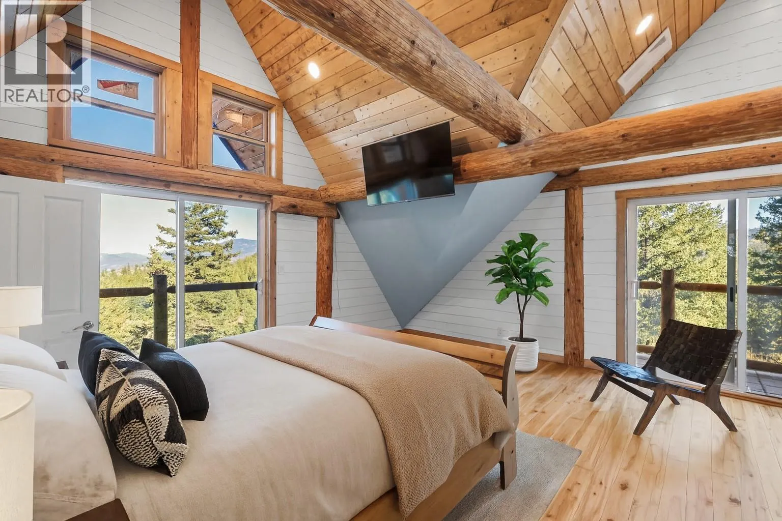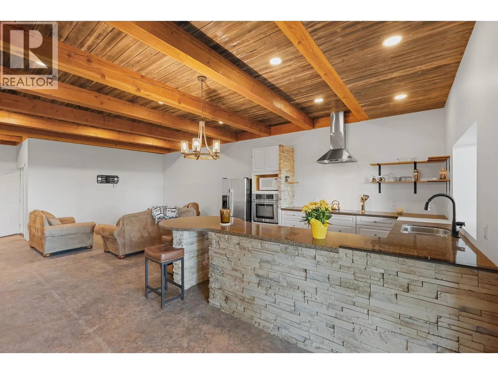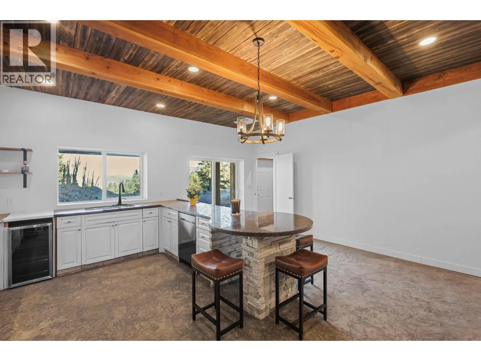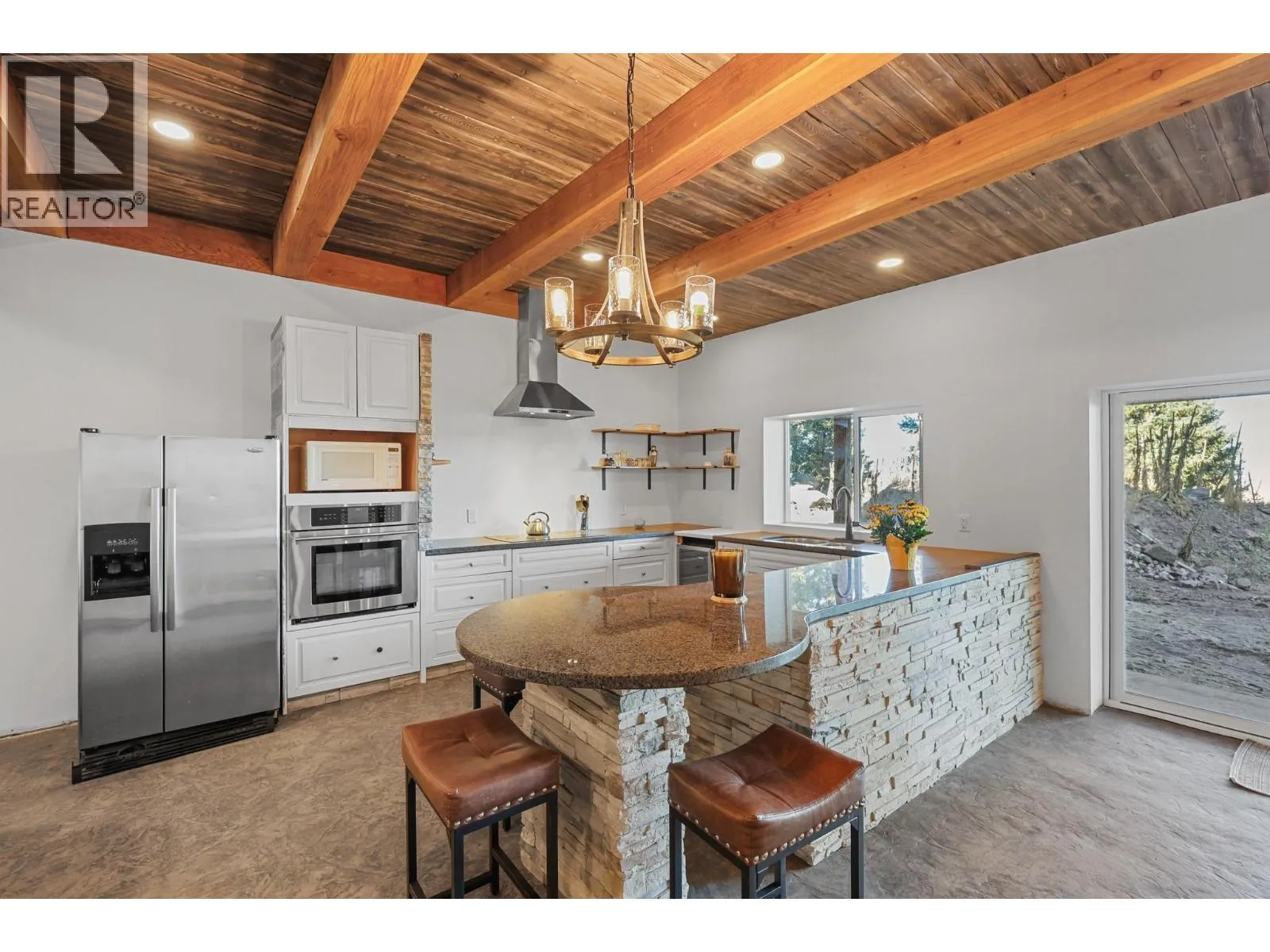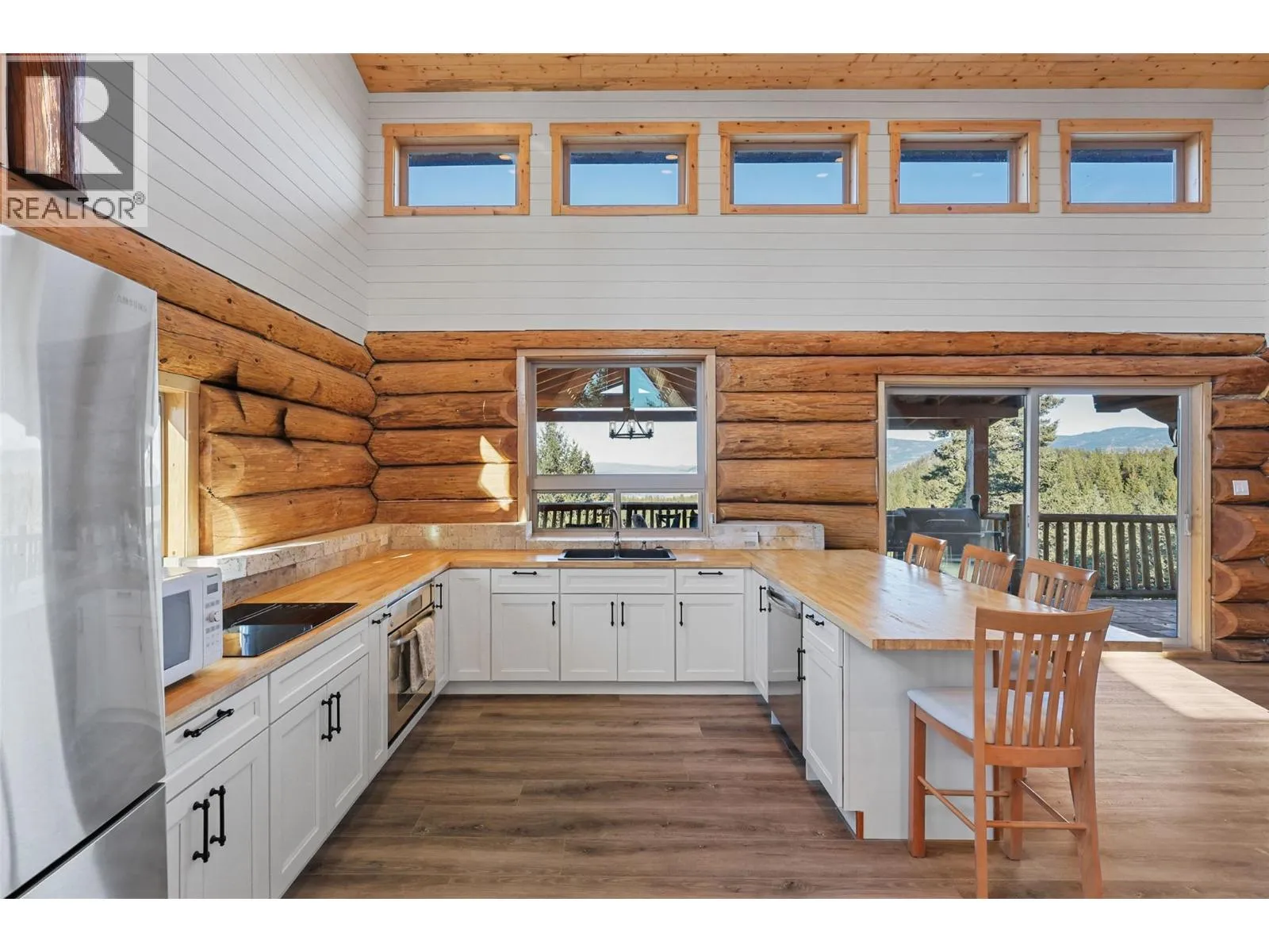 Just 25 minutes east of Kamloops, this 4,199 sq.ft. custom Fir Log home blends modern comfort with timeless craftsmanship. This home is a SHOWSTOPPER! 4 bed, 3.5 bath, 3 level home offers soaring 25-ft vaulted ceiling great room, exposed beams, and walls of glass frame sweeping views of Kamloops Lake and Mount Tod. The open-concept layout showcases Scandinavian-inspired design with seamless flow to a 1,600+ sq.ft. travertine patio-perfect for entertaining or quiet evenings under the BC sky. This truly is an entertainers paradise. The kitchen features custom cabinetry, solid wood counters, and stainless-steel appliances. Upstairs, two bedrooms include a serene primary suite with dual balconies with VIEWS of Kamploops Lake and the entire valley, vaulted ceilings, and 2 spa-like ensuite. 3 stories with complete walk out basement with Nanny suite on ground floor with a tons of space for a games room or media room. Set on 59.3 private acres, this property offers two 20'x16' horse shelters, a round pen, and flat, usable land ideal for expansion or equestrian pursuits. A 200-ft deep well provides excellent water, and zoning allows for a second home. This exceptional estate captures the essence of BC living-panoramic beauty, privacy, and handcrafted luxury in one breathtaking setting. The possibilities are endless with this property - call today for your private showing. (id:27476)