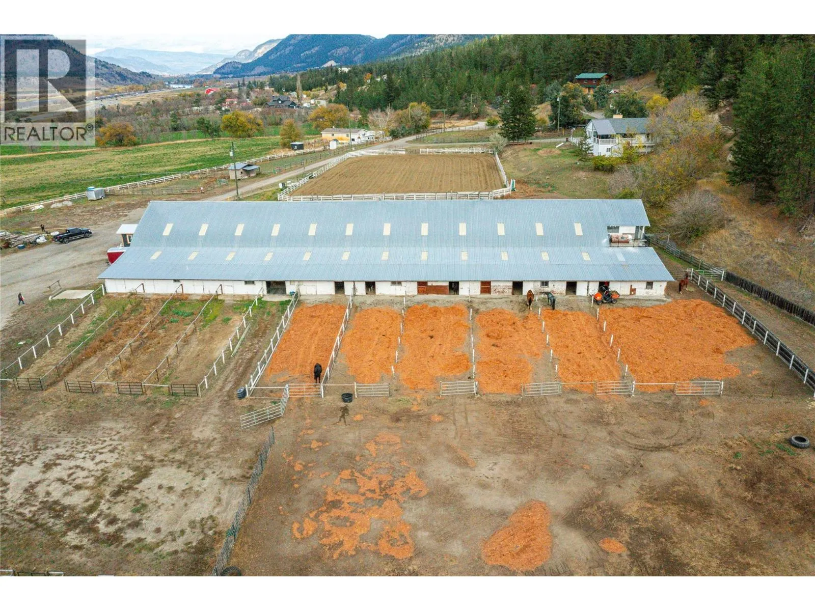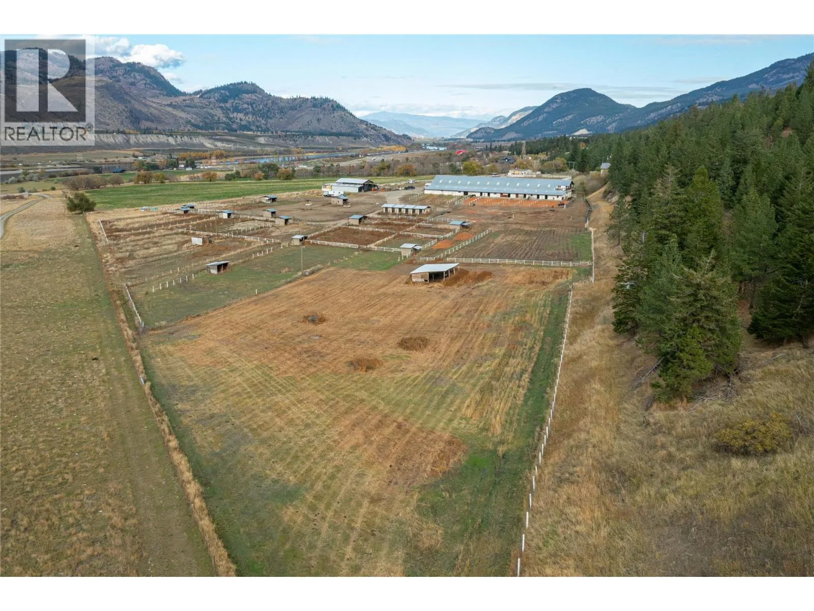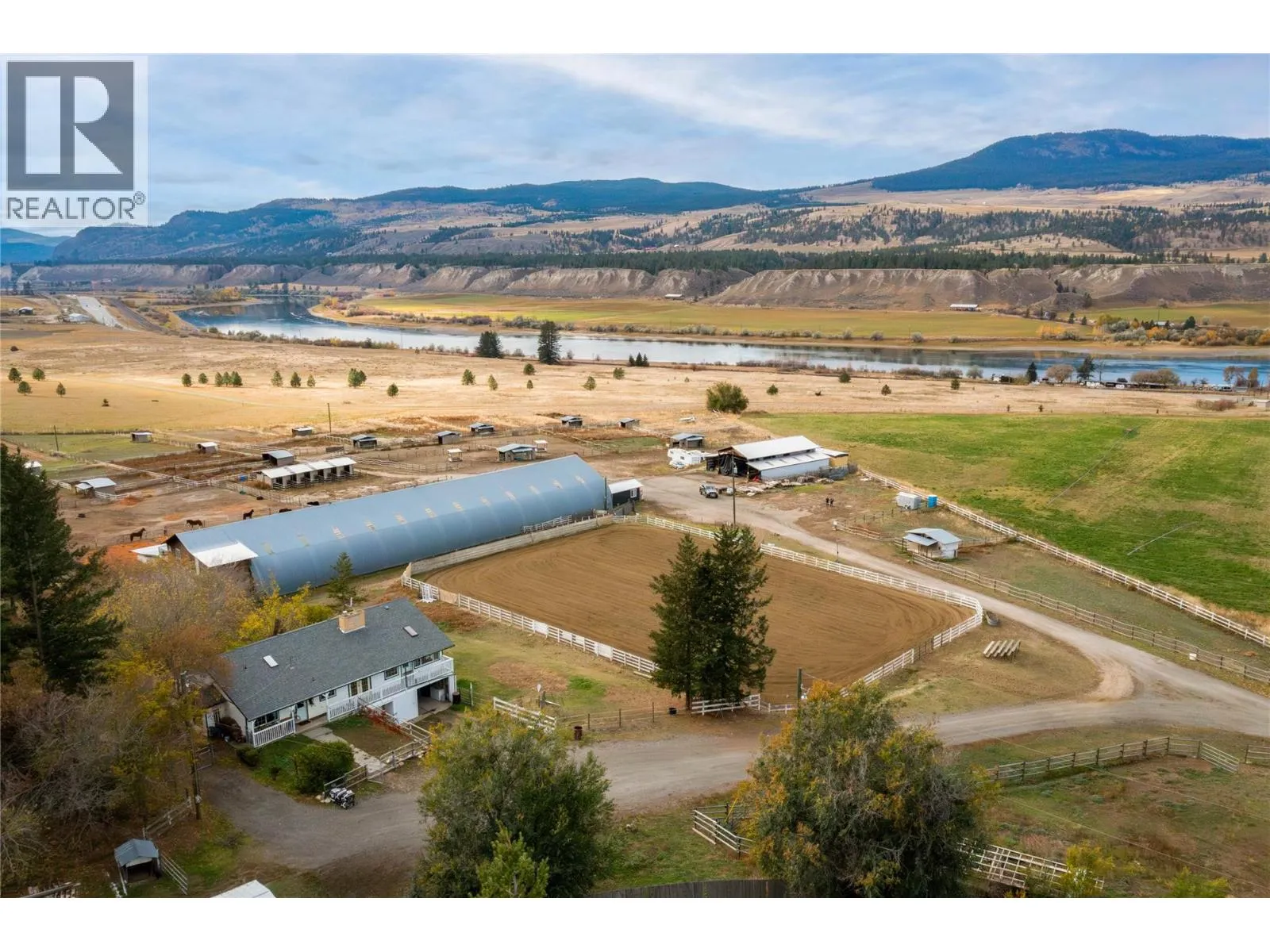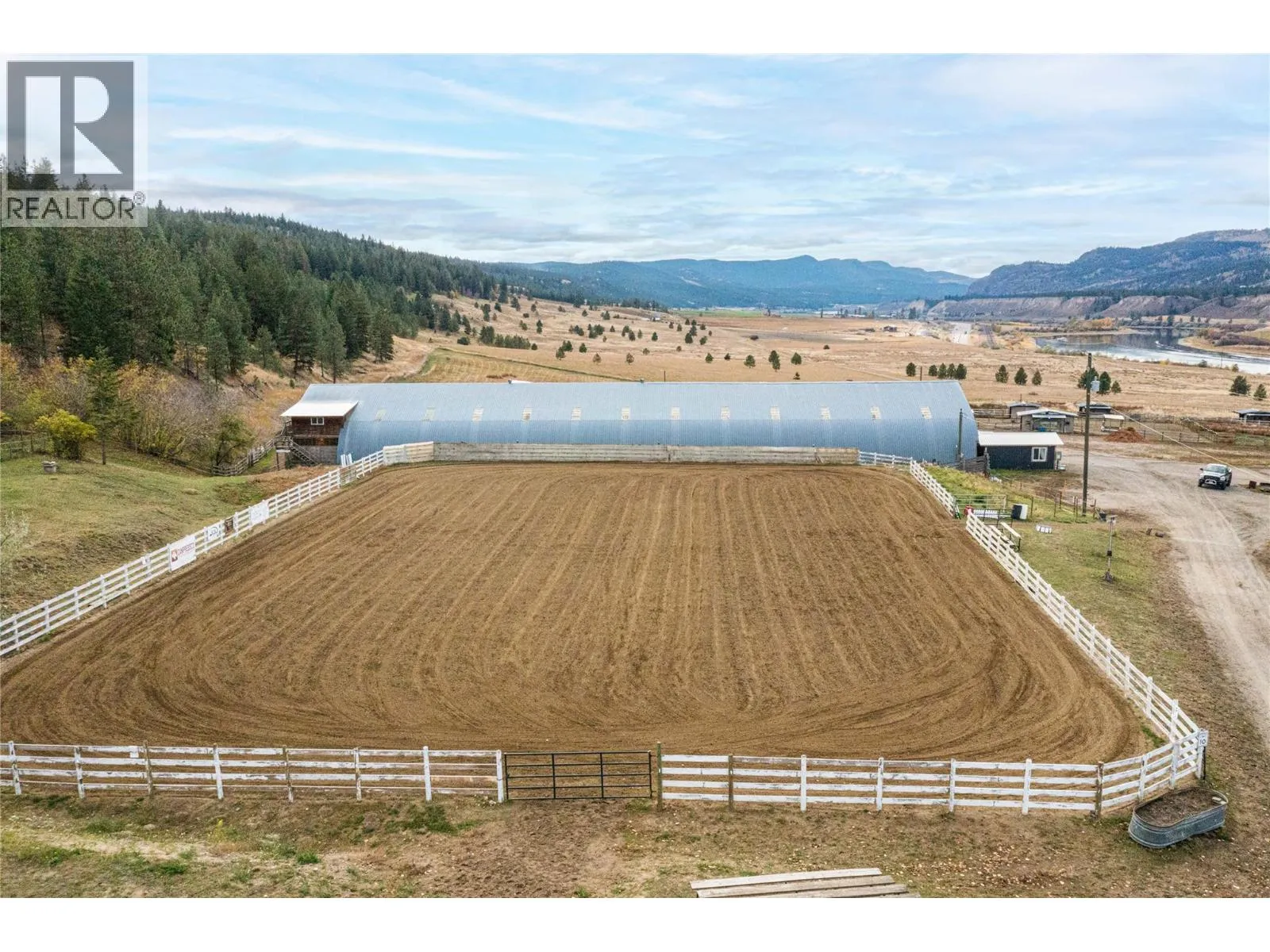 21 Acre Horse Ranch, Perfect Setup to board 40+ horses. Great horse training facility, 60'x200' Indoor Arena, 130'x220' Outdoor Arena 14 indoor stalls off arena with heated waterers, 10 with in and out runs, 60'x20' runs plus 2 extra stalls below lounge. 600 sqft heated viewing room & kitchen above the arena. Arena has and washroom with shower plus 4 tack rooms and a hot water wash bay. Paddocks with heated water bowls & shelters, additional covered 12 day stalls with runs perfect for horses overnights and clinics, (bed & bale) Fenced hillside pasture, fenced pasture. High producing well. 30'x60' shed for hay and equipment storage. Home is 2,300 sqft updated and very clean, new hot water tank, incredible valley & river views from the living room and deck. 3 bedrooms up, open kitchen, living area, en-suite bath, deck from the master to the hot tub. Downstairs has a separate entrance with a large bedroom & full bath, kitchenette, Great location, 2 min. from Hwy 1, 20 min. to Kamloops (id:27476)