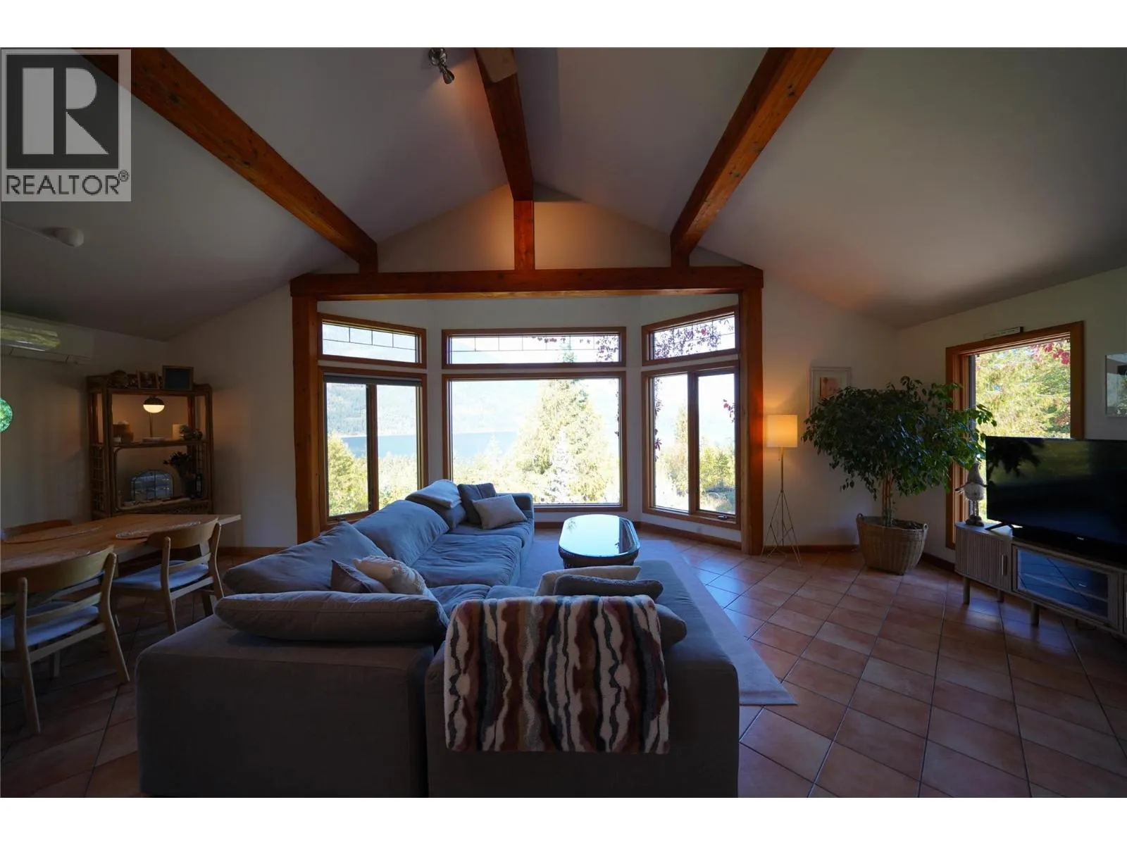 Welcome to 230 Rainbow Ridge Road in the lakeside community of Procter, BC. This stunning 3-bedroom, 2-bathroom home showcases expansive panoramic views of Kootenay Lake and the West Arm, offering a front-row seat to the ever-changing natural beauty. A cozy wood-burning fireplace anchors the heart of the home, framed by picture perfect windows that draw the outdoors in. The open-concept kitchen and living area are ideal for everyday living or entertaining, while decks on either side invite sunrise coffee or sunset cocktails overlooking perennial gardens. Warm wood finishes, vaulted ceilings, and a serene primary suite reflect thoughtful craftsmanship throughout. The main bath features a large soaker tub with tranquil forest views, while comfort is assured year-round with a wood fireplace and an efficient heat pump providing A/C in summer. An extra-long attached garage adds convenience, and a detached shop with a wood stove and air exchangeâonce a woodworking studioâoffers endless potential. Additional features include wood storage, a utility shed, and a fenced garden with raised beds. Step directly onto walking trails from the back of the property, or visit the nearby cafe; and Procter General Store just minutes away. Experience peaceful mountain-lake living at its finest, call your agent today. (id:27476)