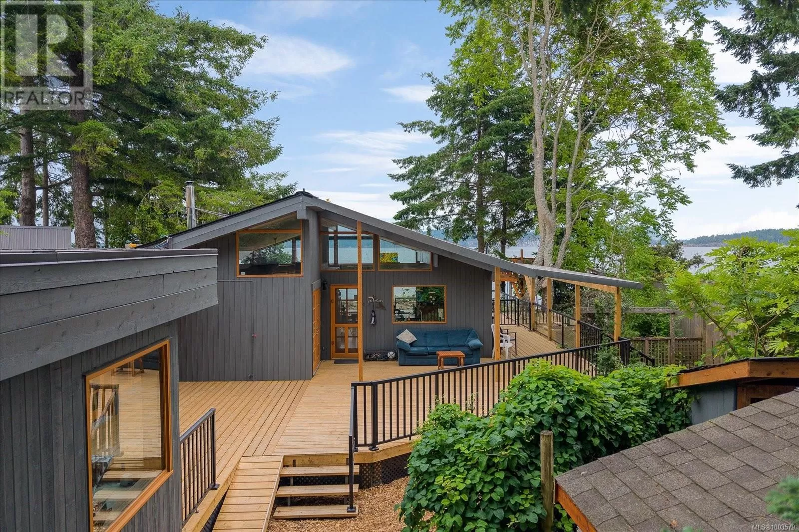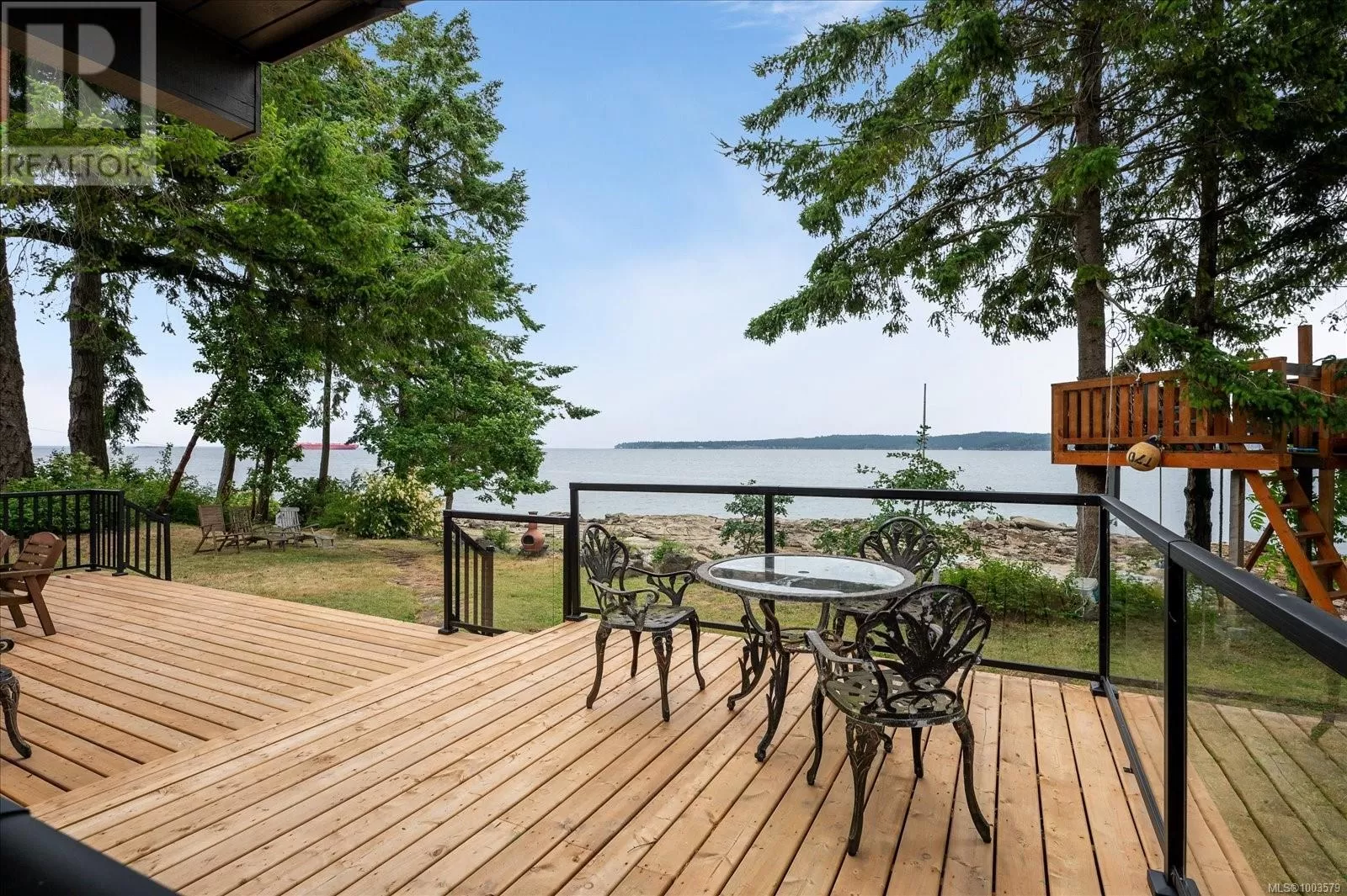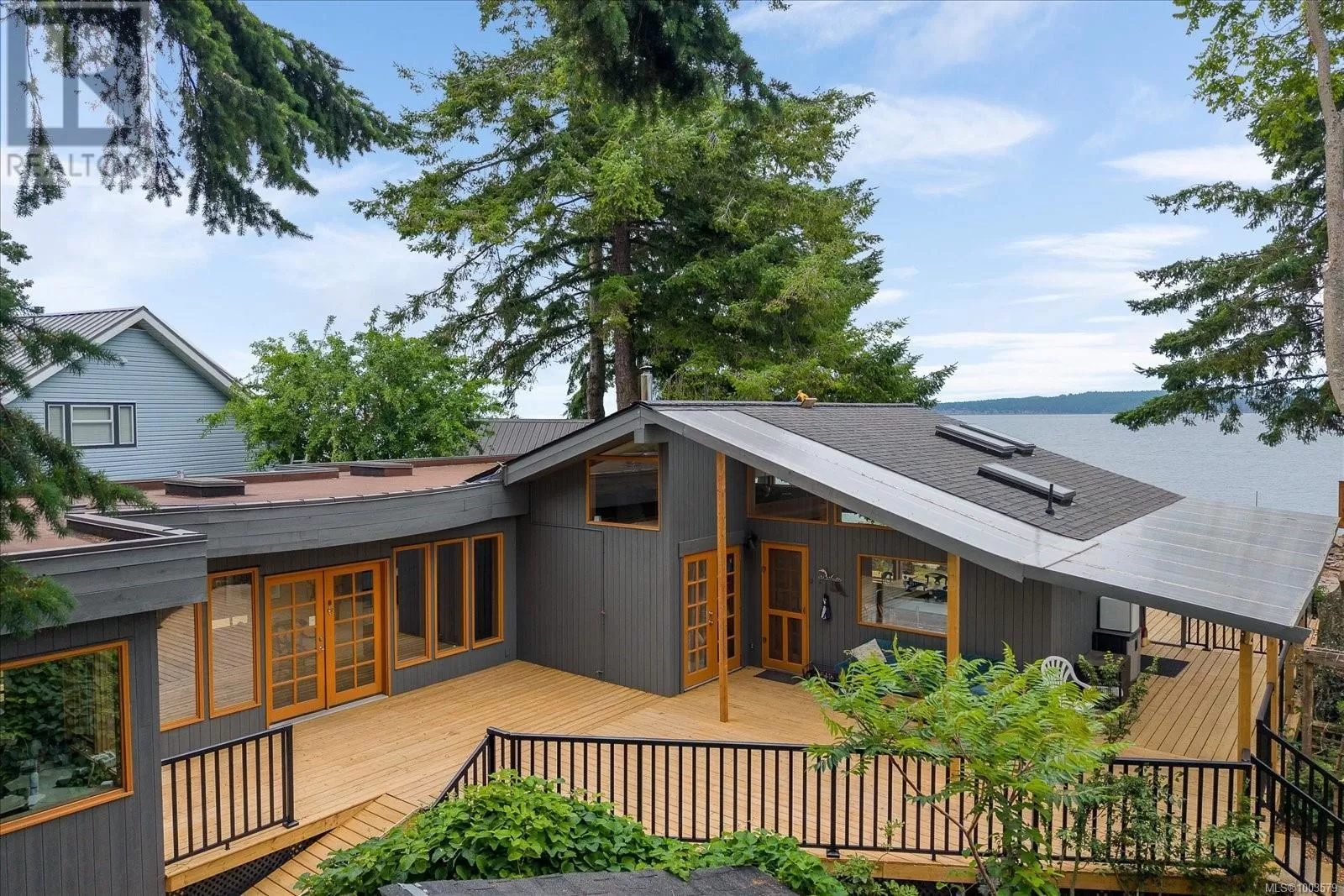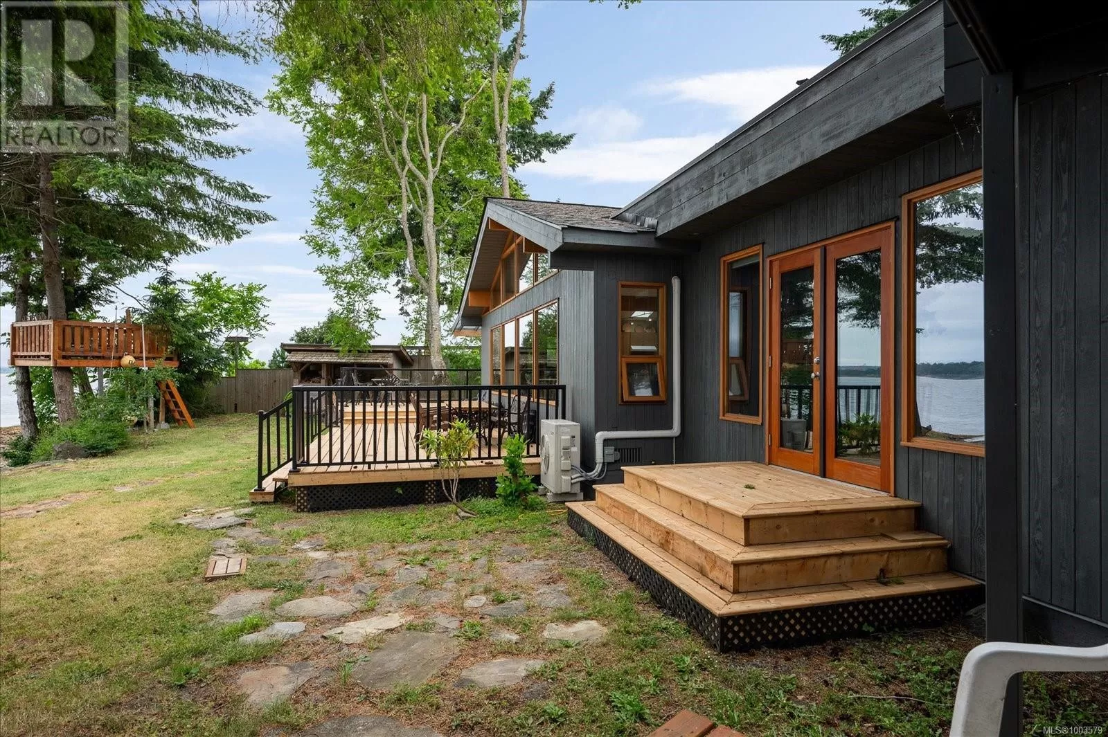 This beautifully renovated waterfront home on peaceful Protection Island, Nanaimo epitomizes coastal living. Positioned on the tranquil east side of the island, large windows offer stunning views of Gabriola Island and the mainland inlets, while new expansive decks enhance a seamless transition between indoor and outdoor living spaces. The primary bedroom boasts an unparalleled ocean vista, complete with ensuite and walk-in closet, while the second bedroom and large office/den provide additional ample space and lovely garden views. With two full bathrooms, in floor-heating and a charming âbunkieâ that can accommodate up to five guests, this residence offers exceptional versatility. Watch the otters, whales and a variety of bird-life from the comfort of your living room, and enjoy cozy evenings in the warmth of the wood- burning stove. Thoughtful eco-friendly features and solid engineering will ensure peace of mind so you can relax and enjoy your extraordinary oceanfront retreat. (id:27476)