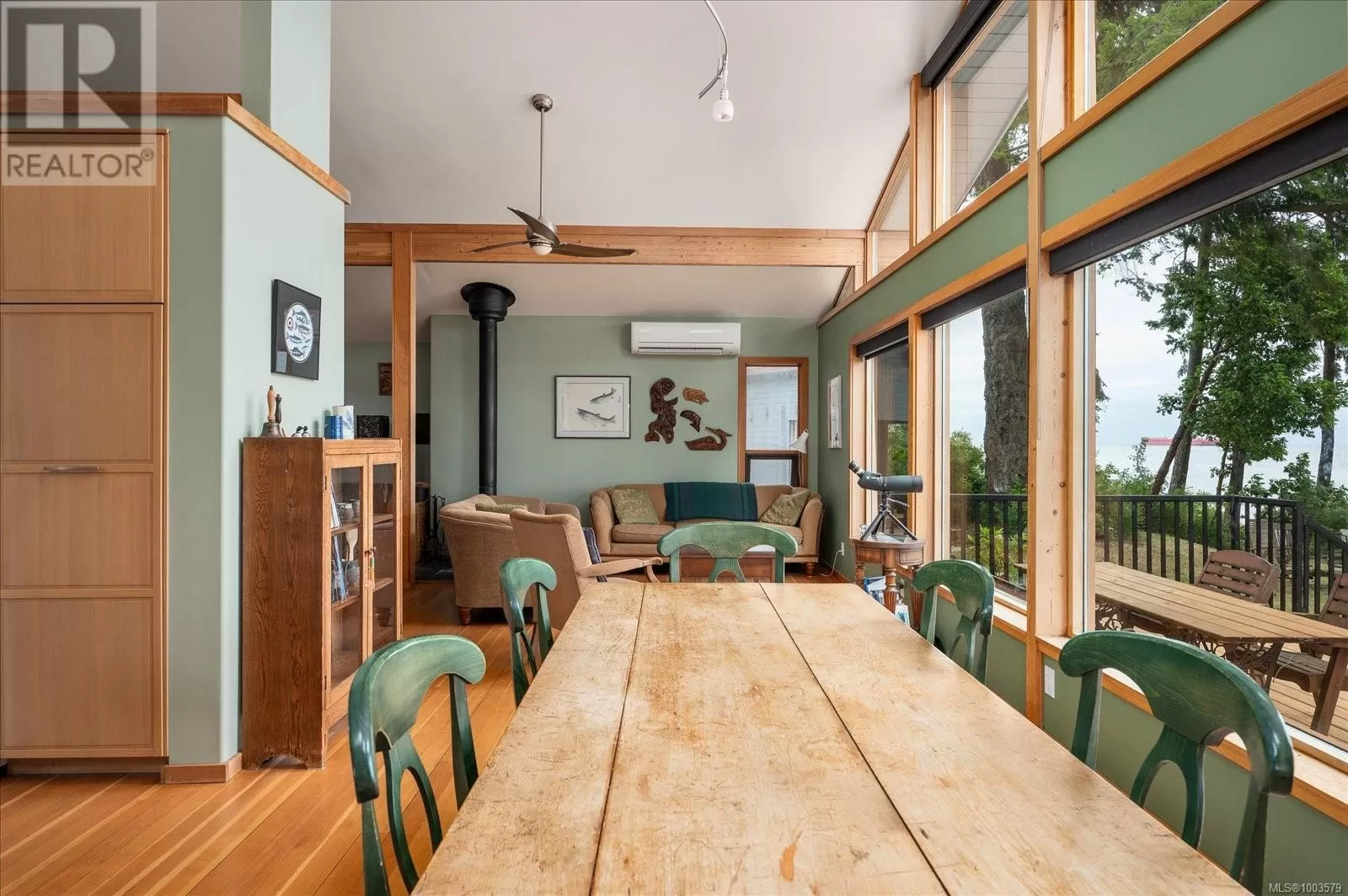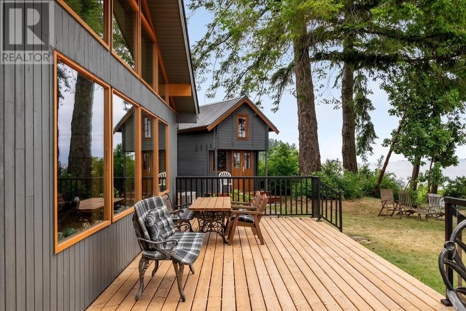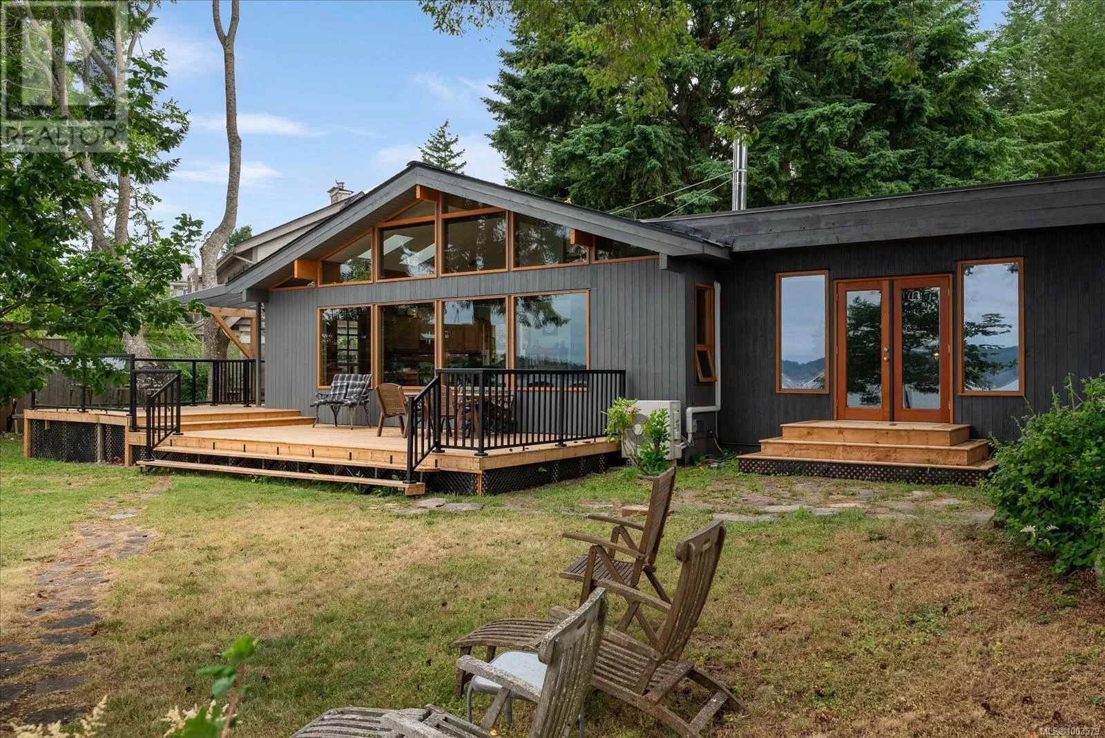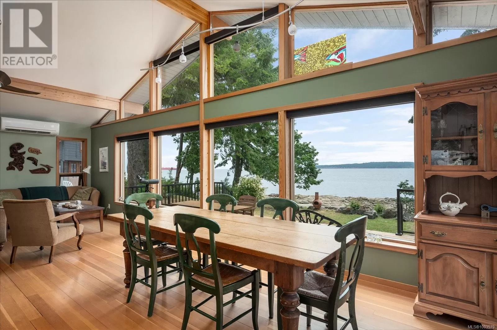 This beautifully renovated waterfront home on peaceful Protection Island, Nanaimo epitomizes coastal living. Positioned on the tranquil east side of the island, large windows offer stunning views of Gabriola Island and the mainland inlets, while new expansive decks enhance a seamless transition between indoor and outdoor living spaces. The primary bedroom boasts an unparalleled ocean vista, complete with ensuite and walk-in closet, while the second bedroom and large office/den provide additional ample space and lovely garden views. With two full bathrooms, in floor-heating and a charming âbunkieâ that can accommodate up to five guests, this residence offers exceptional versatility. Watch the otters, whales and a variety of bird-life from the comfort of your living room, and enjoy cozy evenings in the warmth of the wood- burning stove. Thoughtful eco-friendly features and solid engineering will ensure peace of mind so you can relax and enjoy your extraordinary oceanfront retreat. (id:27476)