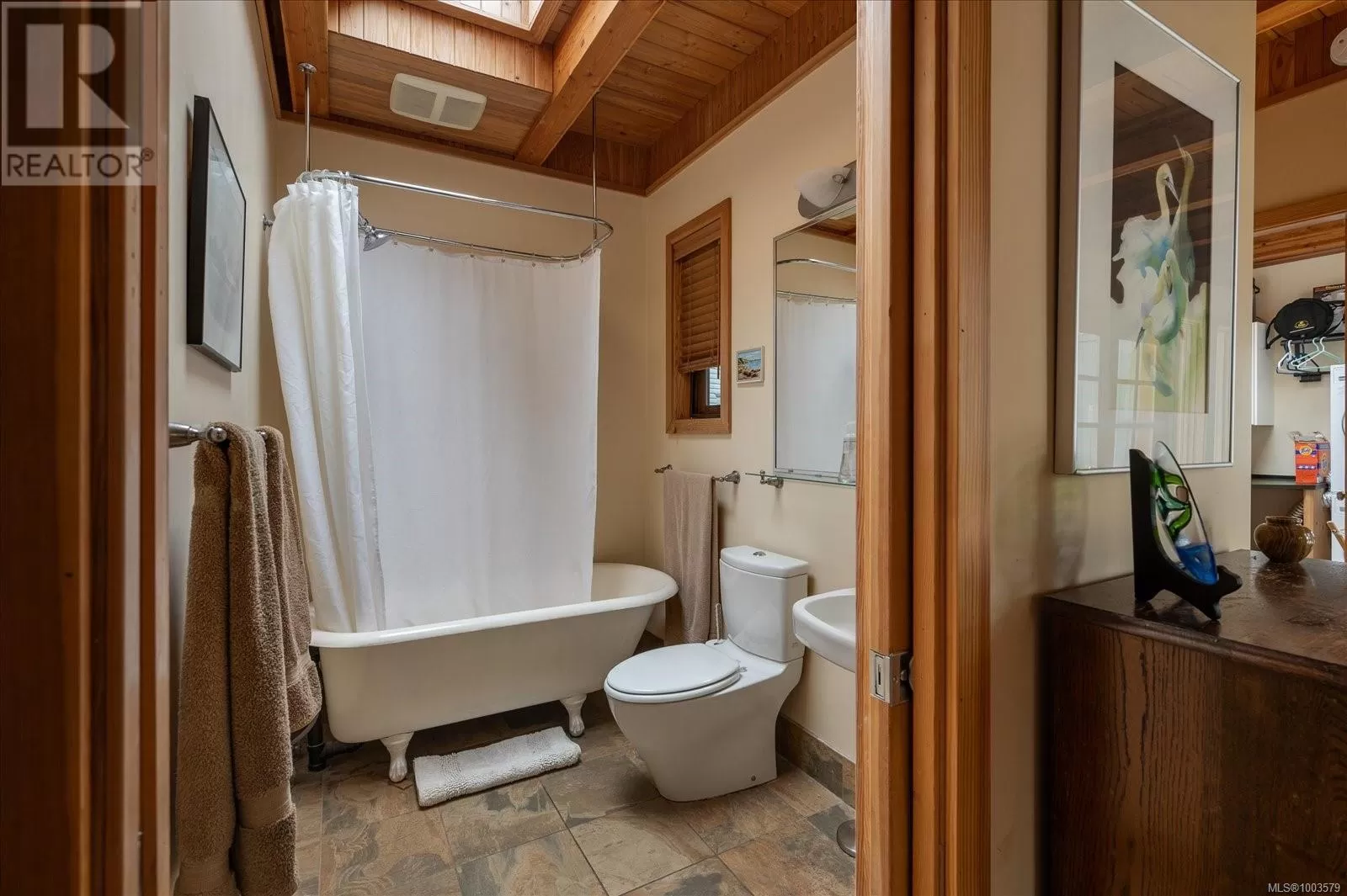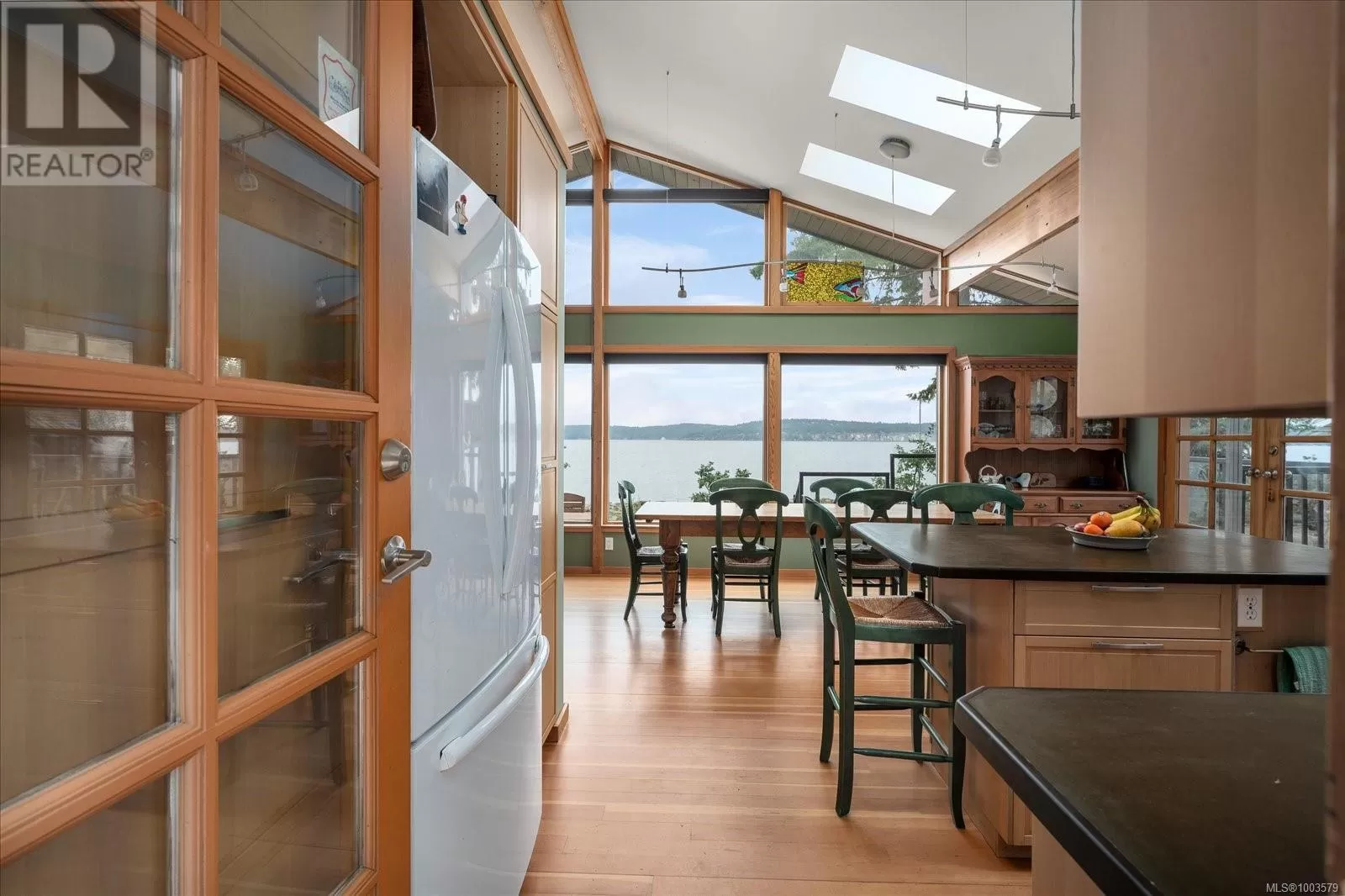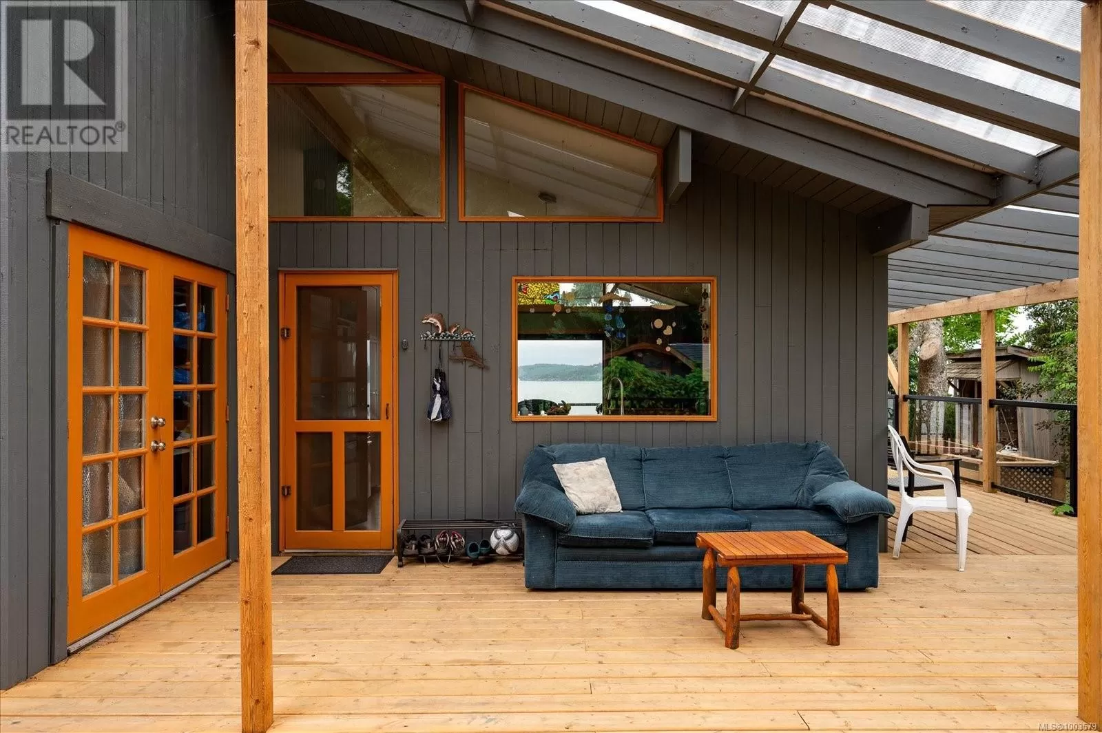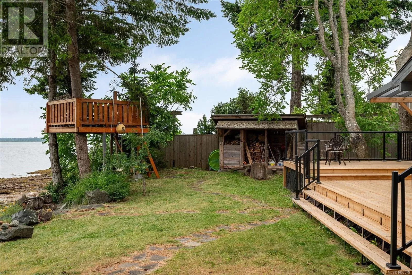 This beautifully renovated waterfront home on peaceful Protection Island, Nanaimo epitomizes coastal living. Positioned on the tranquil east side of the island, large windows offer stunning views of Gabriola Island and the mainland inlets, while new expansive decks enhance a seamless transition between indoor and outdoor living spaces. The primary bedroom boasts an unparalleled ocean vista, complete with ensuite and walk-in closet, while the second bedroom and large office/den provide additional ample space and lovely garden views. With two full bathrooms, in floor-heating and a charming âbunkieâ that can accommodate up to five guests, this residence offers exceptional versatility. Watch the otters, whales and a variety of bird-life from the comfort of your living room, and enjoy cozy evenings in the warmth of the wood- burning stove. Thoughtful eco-friendly features and solid engineering will ensure peace of mind so you can relax and enjoy your extraordinary oceanfront retreat. (id:27476)
