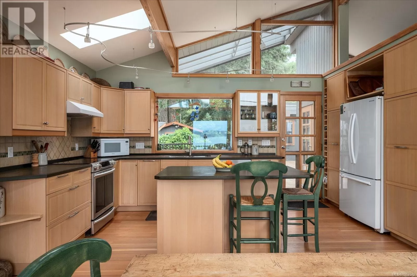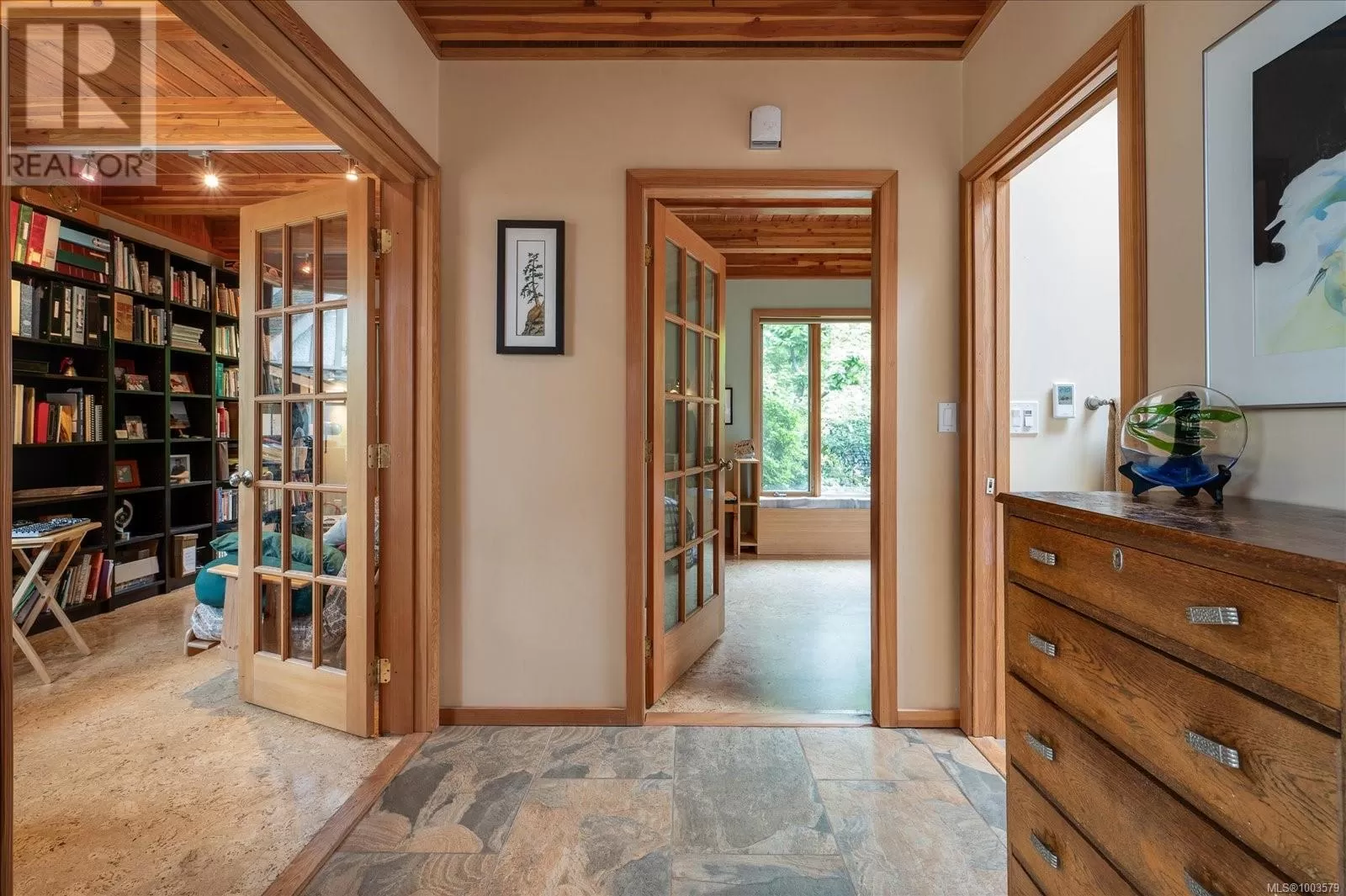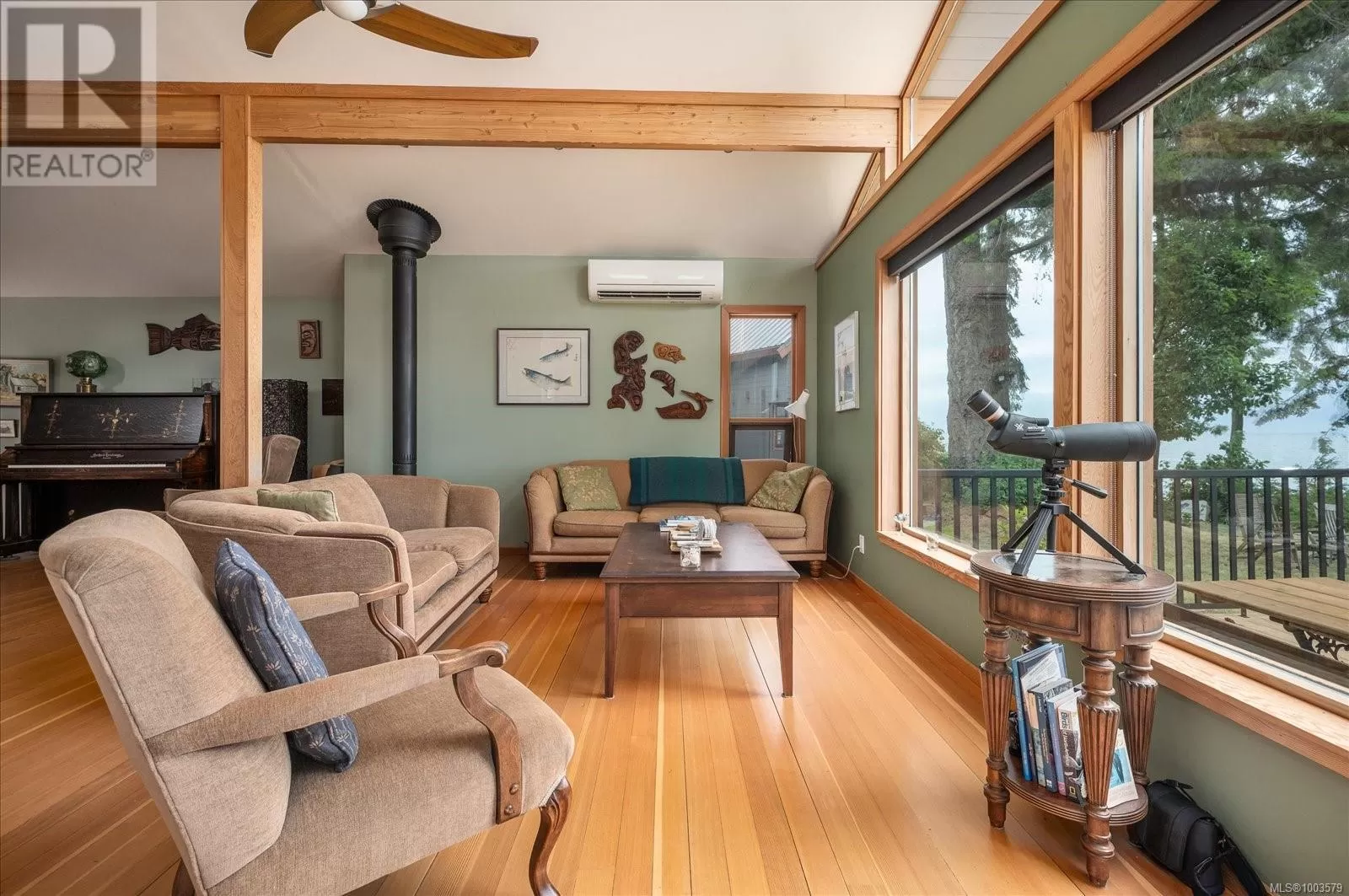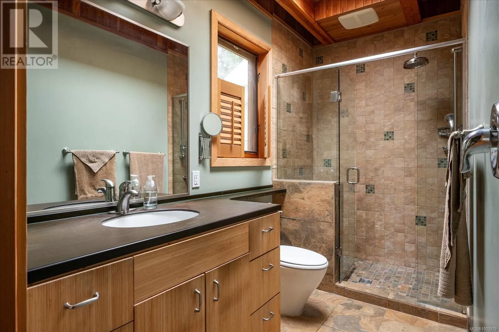 This beautifully renovated waterfront home on peaceful Protection Island, Nanaimo epitomizes coastal living. Positioned on the tranquil east side of the island, large windows offer stunning views of Gabriola Island and the mainland inlets, while new expansive decks enhance a seamless transition between indoor and outdoor living spaces. The primary bedroom boasts an unparalleled ocean vista, complete with ensuite and walk-in closet, while the second bedroom and large office/den provide additional ample space and lovely garden views. With two full bathrooms, in floor-heating and a charming âbunkieâ that can accommodate up to five guests, this residence offers exceptional versatility. Watch the otters, whales and a variety of bird-life from the comfort of your living room, and enjoy cozy evenings in the warmth of the wood- burning stove. Thoughtful eco-friendly features and solid engineering will ensure peace of mind so you can relax and enjoy your extraordinary oceanfront retreat. (id:27476)