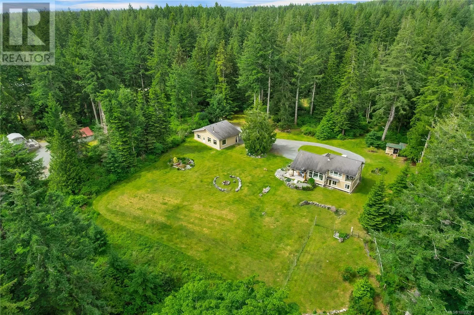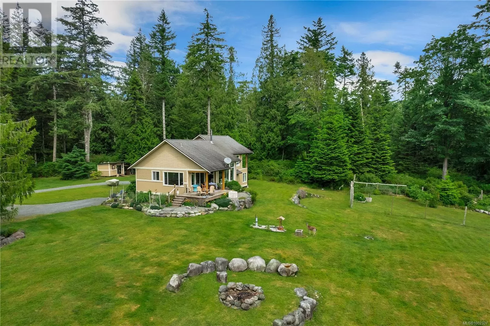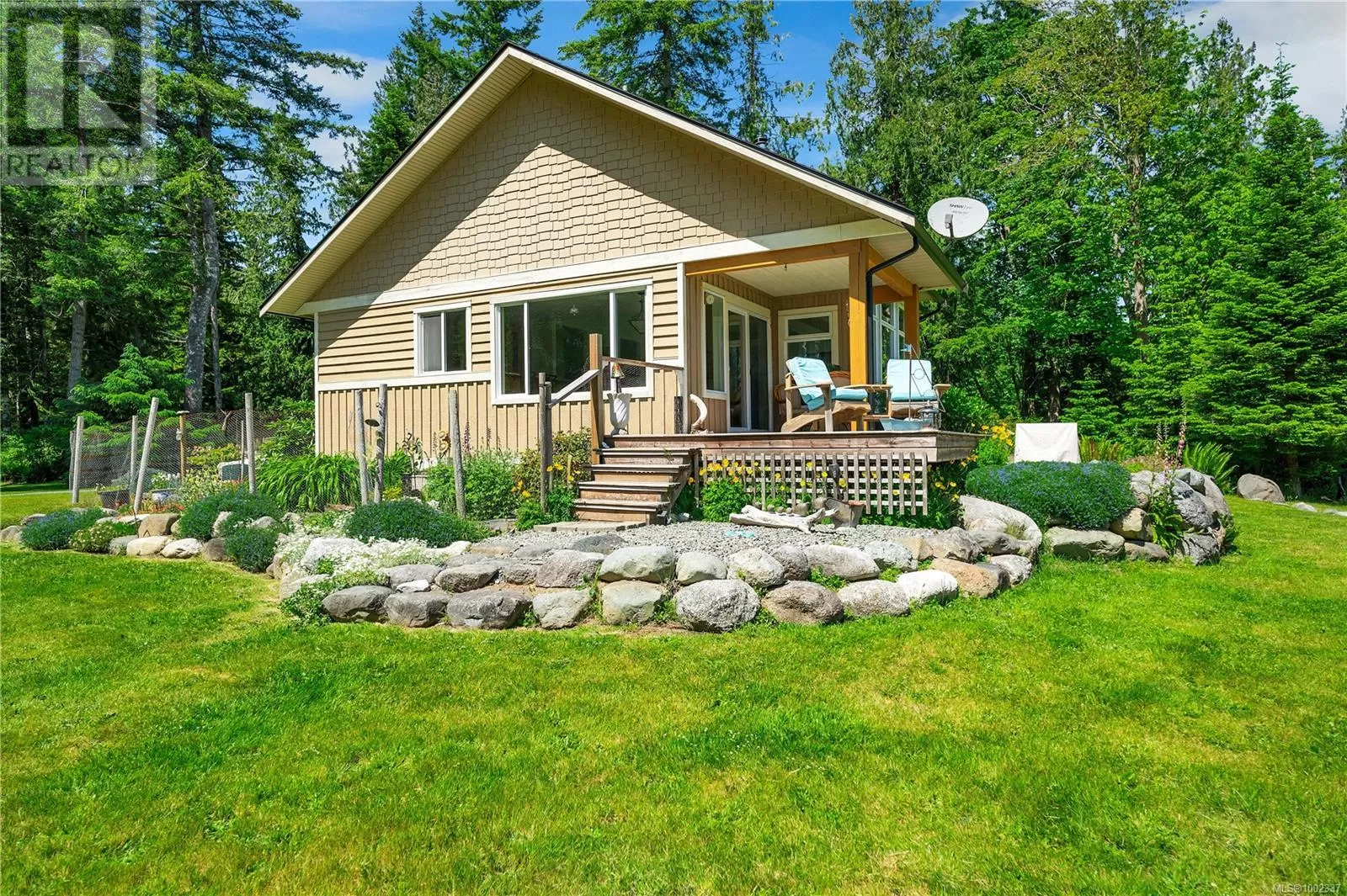 Heriot Bay oceanview home & shop on 10.16 acres! The home was custom built in 2010 & features a main level entry with upper floor & daylight basement layout. The home is efficiently heated with zoned hot water in-floor heating on all 3 levels. The entry opens to the living room with vaulted ceilings, floor to ceiling windows & woodstove on tile hearth. The dining room is adjacent to the living room & has a door out to a covered deck. The kitchen overlooks the dining room & boasts a large corner pantry, granite counters, eating peninsula & stainless steel appliances. There is also a 2pc bathroom on the main floor. The upper floor is the primary bedroom with walk-in closet & 4pc ensuite with tiled shower & soaker tub. Enjoy ocean views & whale watching from the primary bedroom covered deck! The laundry room is also located on the upper floor. The daylight basement has a family room, door to the overheight crawl space, 2 bedrooms & a 3pc bathroom. There is also access to the mudroom/storage room at the front of the house from the lower floor. Next to the home youâll find the 1,500 sq ft shop which was designed & built to be a 2 bedroom secondary dwelling. This building is fully plumbed & wired with a second 200amp hydro panel & connected to an engineered septic system. There is a 3pc bathroom in the shop & a mezzanine area for extra storage. The carport attached to the shop offers more dry storage space. A large lawn area covers the front yard with a fire pit in the middle & there are established gardens including a fenced rhododendron garden, natural garden next to the shop, ornamental garden beds around the home & another fenced garden area with blueberry plants & 2 apple trees. 5 acres of this oceanview property is untouched with paths that wind through the mature forest. Located in a popular residential area in Heriot Bay, on a quiet no thru road, with ocean views over Drew Harbour & Rebecca Spit Provincial Park. Come see all this beautiful property has to offer! (id:27476)