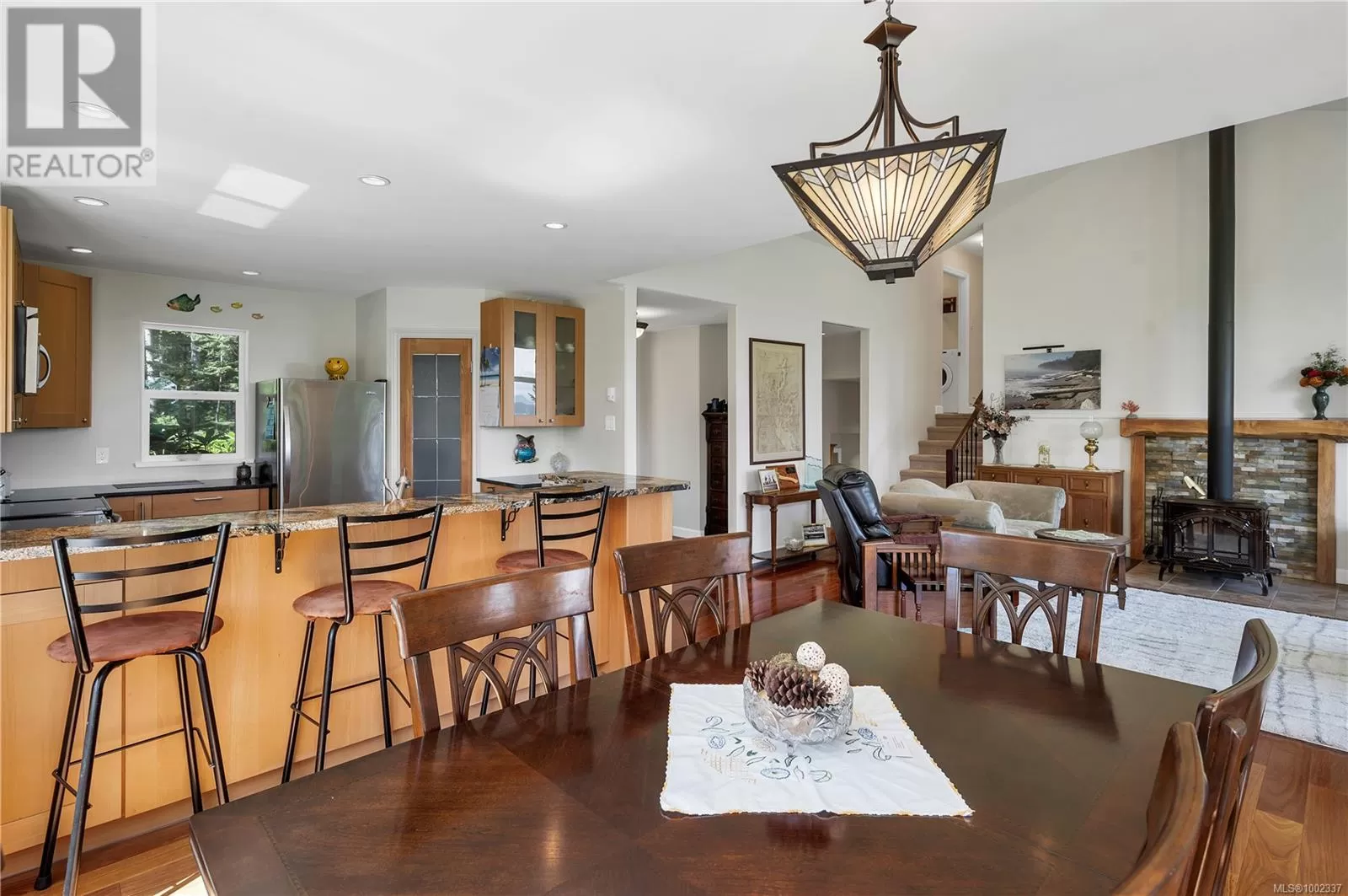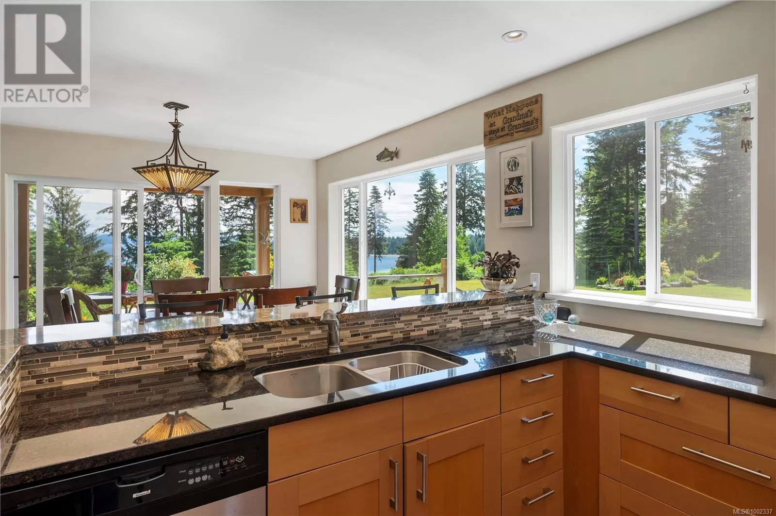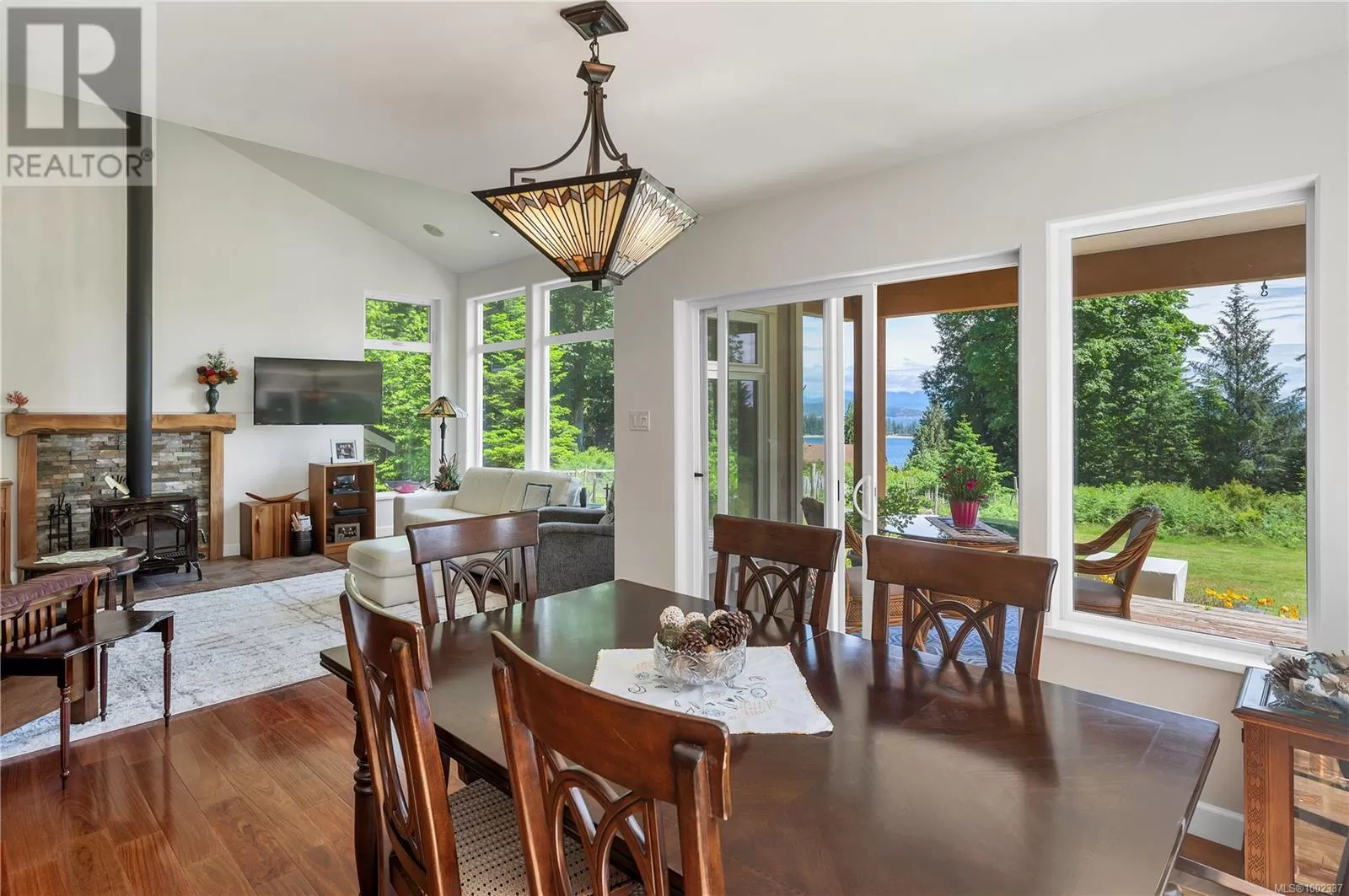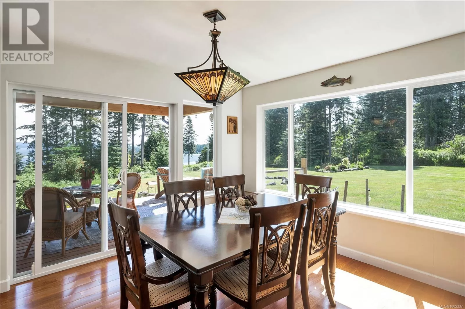 Heriot Bay oceanview home & shop on 10.16 acres! The home was custom built in 2010 & features a main level entry with upper floor & daylight basement layout. The home is efficiently heated with zoned hot water in-floor heating on all 3 levels. The entry opens to the living room with vaulted ceilings, floor to ceiling windows & woodstove on tile hearth. The dining room is adjacent to the living room & has a door out to a covered deck. The kitchen overlooks the dining room & boasts a large corner pantry, granite counters, eating peninsula & stainless steel appliances. There is also a 2pc bathroom on the main floor. The upper floor is the primary bedroom with walk-in closet & 4pc ensuite with tiled shower & soaker tub. Enjoy ocean views & whale watching from the primary bedroom covered deck! The laundry room is also located on the upper floor. The daylight basement has a family room, door to the overheight crawl space, 2 bedrooms & a 3pc bathroom. There is also access to the mudroom/storage room at the front of the house from the lower floor. Next to the home youâll find the 1,500 sq ft shop which was designed & built to be a 2 bedroom secondary dwelling. This building is fully plumbed & wired with a second 200amp hydro panel & connected to an engineered septic system. There is a 3pc bathroom in the shop & a mezzanine area for extra storage. The carport attached to the shop offers more dry storage space. A large lawn area covers the front yard with a fire pit in the middle & there are established gardens including a fenced rhododendron garden, natural garden next to the shop, ornamental garden beds around the home & another fenced garden area with blueberry plants & 2 apple trees. 5 acres of this oceanview property is untouched with paths that wind through the mature forest. Located in a popular residential area in Heriot Bay, on a quiet no thru road, with ocean views over Drew Harbour & Rebecca Spit Provincial Park. Come see all this beautiful property has to offer! (id:27476)