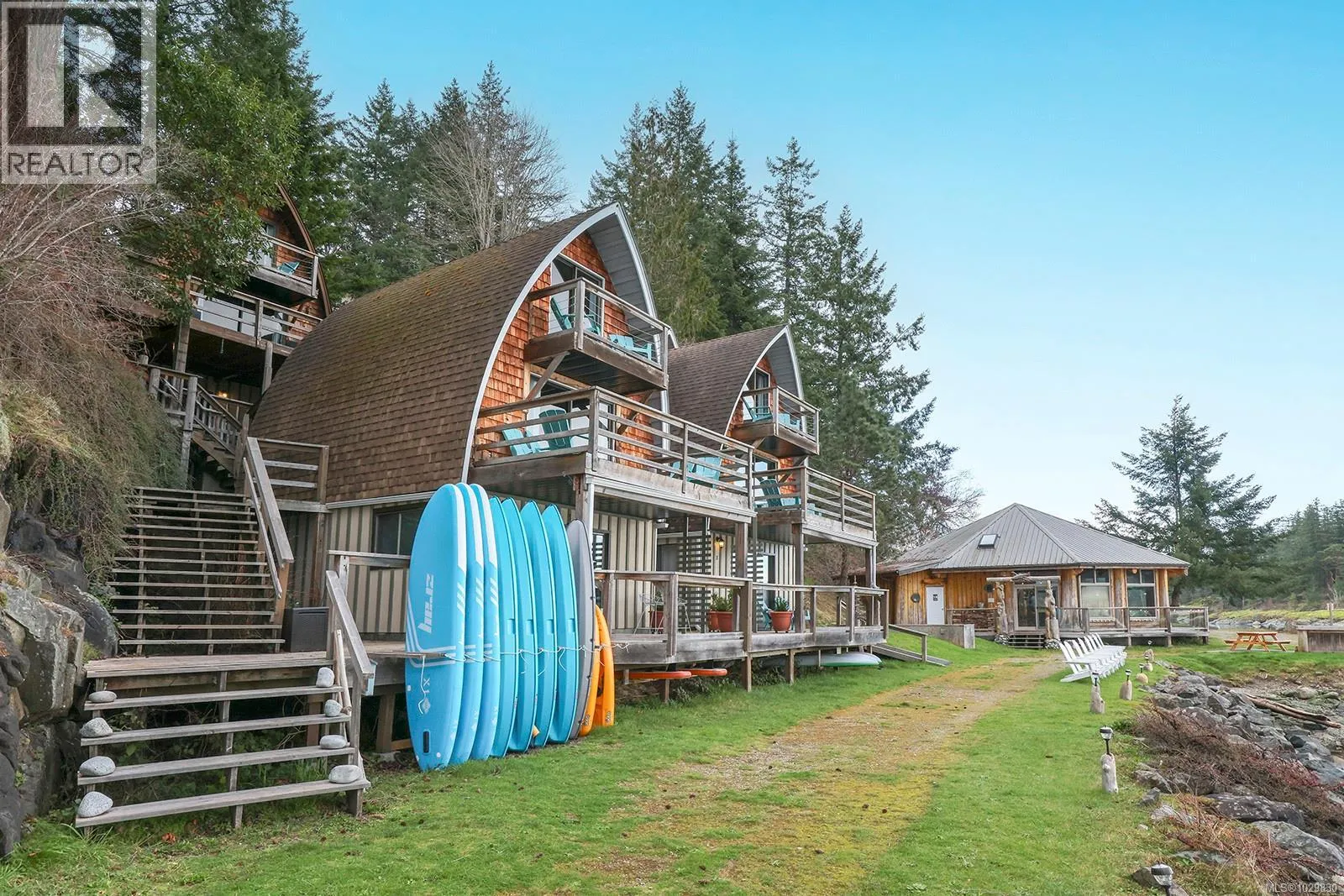 Oceanfront income generating resort with development potential! Don't miss this rare opportunity to acquire a remarkable hospitality & marina property in the protected waters of Gowlland Harbour on the west side of Quadra Island, just 10 minutes by ferry from Campbell River. Set on just over 2 acres with more than 490 ft of ocean frontage, this property offers exceptional views, marine access & established accommodation infrastructure. It features 6 distinctive cathedral arch chalets with 11 guest suites, positioned to capture panoramic harbour views. Guests enjoy comfortable accommodations with a kitchen, waterfront access & a setting surrounded by nature & wildlife. Additional improvements include an 1,800 sq ft log pavilion with custom marine wildlife carvings ideal for weddings, gatherings or events; a 1,220 sq ft workshop with loft space suitable for studio, creative or wellness use; & a 2,000 sq ft main residence with 4 bedrooms plus an office overlooking the harbour. A separate 2 bedroom guest cabin offers flexibility for staff or extended stays. In total, the property offers approx. 9,753 sq ft of finished space, with 16 bedrooms & 16 bathrooms across multiple buildings. A key feature is the protected deep-water marina, with potential to develop an approx. 600 ft dock providing an estimated 1,000 ft of moorage; supporting recreational boating & marine access. Zoned C-2 commercial, allowing a range of tourism and commercial uses. Includes 2 titles & potential foreshore lease opportunities. This property is independently managed & currently leased to the amazing ''Jade Resort''; this sale does not include this business or name. Please do not contact, visit, or disrupt Jade resort or their guests. Available for private viewing through realtors only. This property is perfect as either a live-in or remotely managed resort with significant revenue stream.  Sold as a corporate share sale; owner may be able to provide a vendor take back at very reasonable rates. (id:27476)