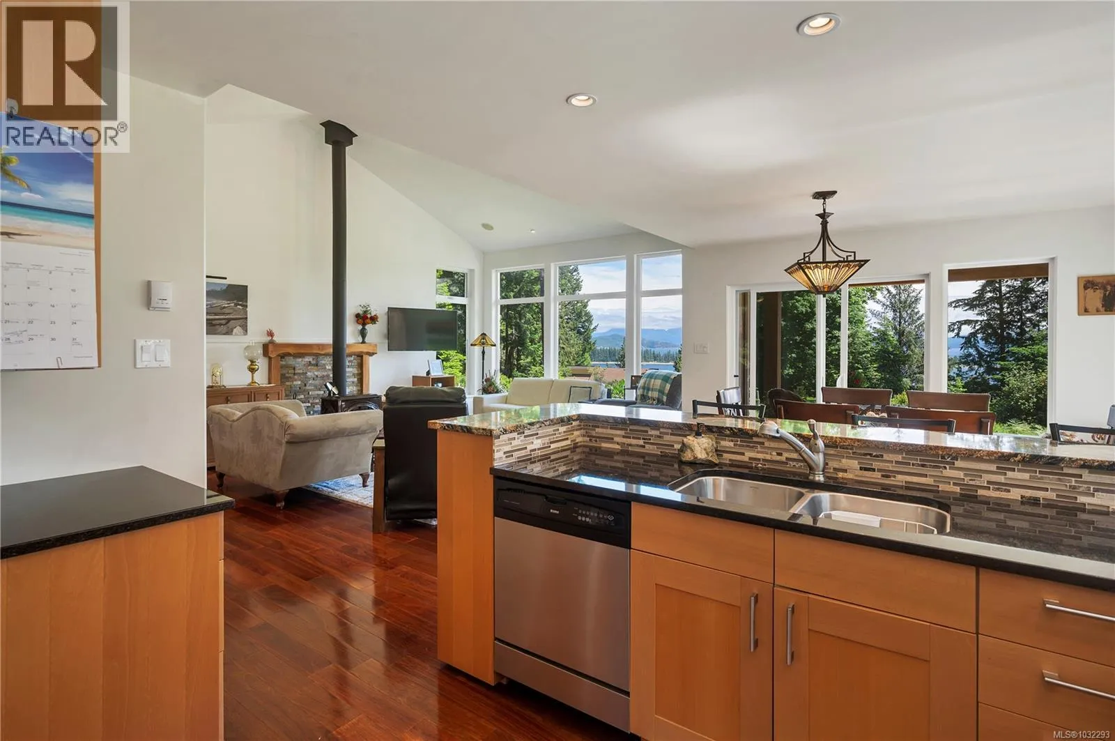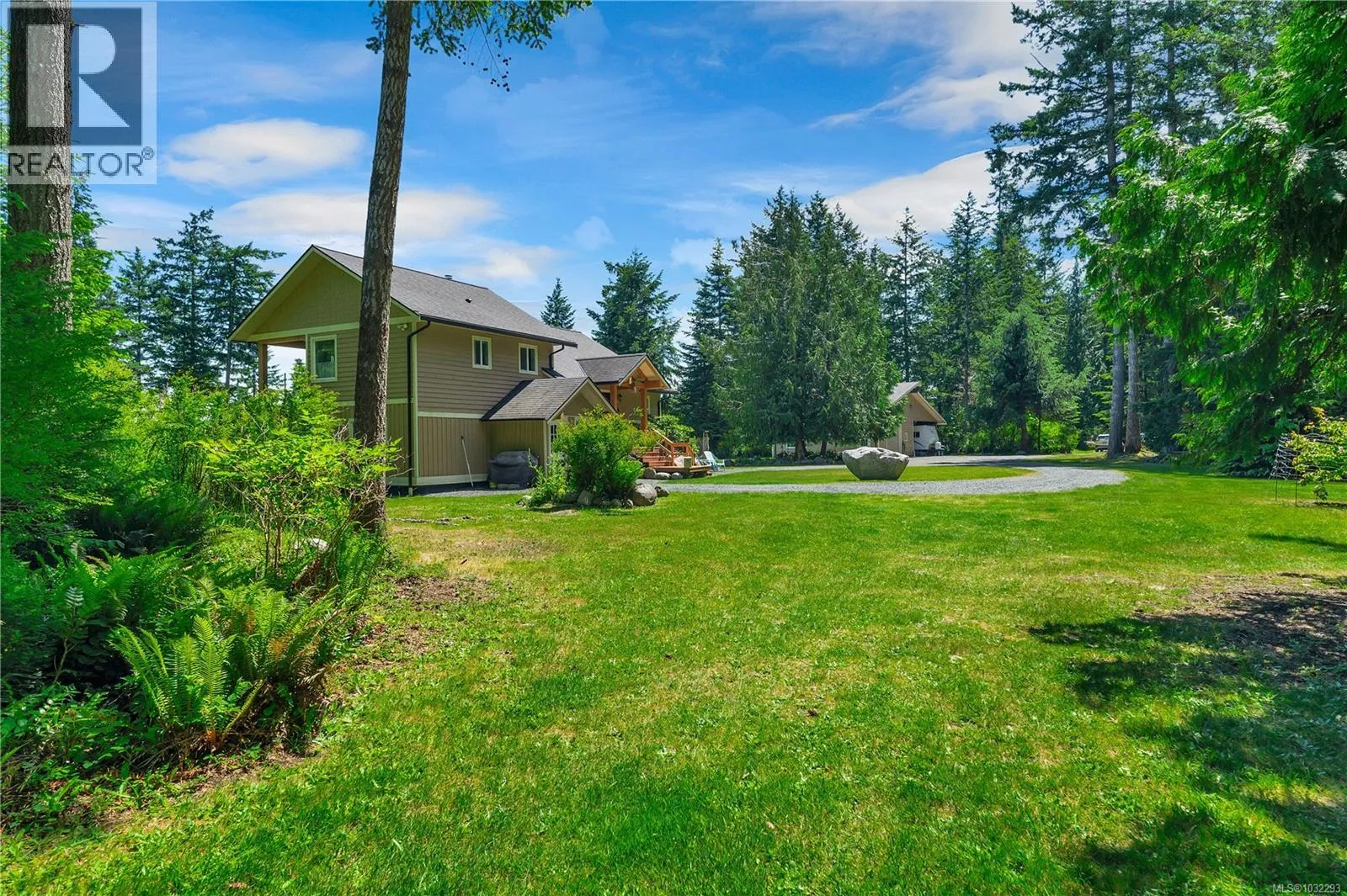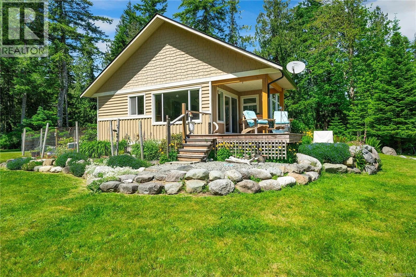 Heriot Bay oceanview home & shop on 10.16 acres! The home was custom built in 2010 & features a main level entry with upper floor & daylight basement layout. The home is efficiently heated with zoned hot water in-floor heating on all 3 levels. The entry opens to the living room with vaulted ceilings, floor to ceiling windows & woodstove on tile hearth. The dining room is adjacent to the living room & has a door out to a covered deck. The kitchen overlooks the dining room & boasts a large corner pantry, granite counters, eating peninsula & stainless steel appliances. There is also a 2pc bathroom on the main floor. The upper floor is the primary bedroom with walk-in closet & 4pc ensuite with tiled shower & soaker tub. Enjoy ocean views & whale watching from the primary bedroom covered deck! The laundry room is also located on the upper floor. The daylight basement has a family room, door to the overheight crawl space, 2 bedrooms & a 3pc bathroom. There is also access to the mudroom/storage room at the front of the house from the lower floor. Next to the home youâll find the 1,500 sq ft shop which was designed & built to be a 2 bedroom secondary dwelling. This building is fully plumbed & wired with a second 200amp hydro panel & connected to an engineered septic system. There is a 3pc bathroom in the shop & a mezzanine area for extra storage. The carport attached to the shop offers more dry storage space. A large lawn area covers the front yard with a fire pit in the middle & there are established gardens including a fenced rhododendron garden, natural garden next to the shop, ornamental garden beds around the home & another fenced garden area with blueberry plants & 2 apple trees. 5 acres of this oceanview property is untouched with paths that wind through the mature forest. Located in a popular residential area in Heriot Bay, on a quiet no thru road, with ocean views over Drew Harbour & Rebecca Spit Provincial Park. Come see all this beautiful property has to offer! (id:27476)