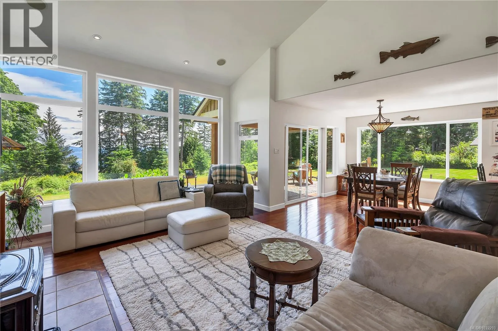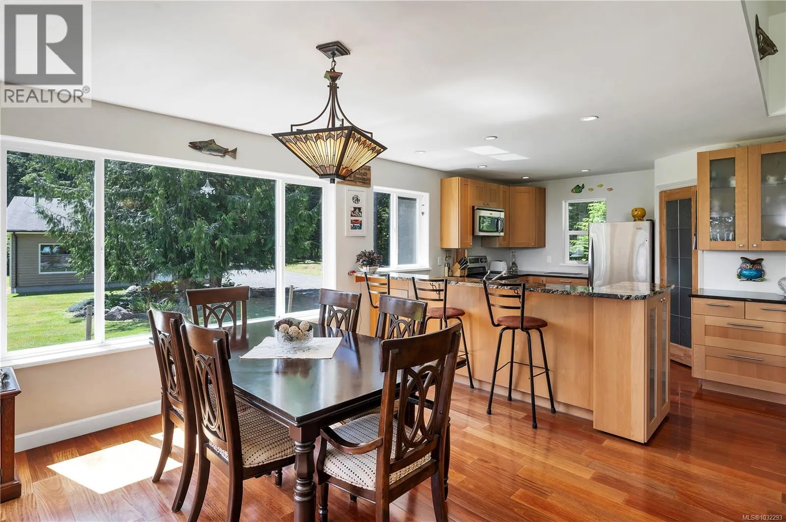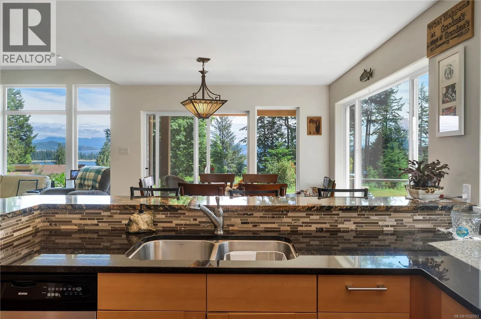 Heriot Bay oceanview home & shop on 10.16 acres! The home was custom built in 2010 & features a main level entry with upper floor & daylight basement layout. The home is efficiently heated with zoned hot water in-floor heating on all 3 levels. The entry opens to the living room with vaulted ceilings, floor to ceiling windows & woodstove on tile hearth. The dining room is adjacent to the living room & has a door out to a covered deck. The kitchen overlooks the dining room & boasts a large corner pantry, granite counters, eating peninsula & stainless steel appliances. There is also a 2pc bathroom on the main floor. The upper floor is the primary bedroom with walk-in closet & 4pc ensuite with tiled shower & soaker tub. Enjoy ocean views & whale watching from the primary bedroom covered deck! The laundry room is also located on the upper floor. The daylight basement has a family room, door to the overheight crawl space, 2 bedrooms & a 3pc bathroom. There is also access to the mudroom/storage room at the front of the house from the lower floor. Next to the home youâll find the 1,500 sq ft shop which was designed & built to be a 2 bedroom secondary dwelling. This building is fully plumbed & wired with a second 200amp hydro panel & connected to an engineered septic system. There is a 3pc bathroom in the shop & a mezzanine area for extra storage. The carport attached to the shop offers more dry storage space. A large lawn area covers the front yard with a fire pit in the middle & there are established gardens including a fenced rhododendron garden, natural garden next to the shop, ornamental garden beds around the home & another fenced garden area with blueberry plants & 2 apple trees. 5 acres of this oceanview property is untouched with paths that wind through the mature forest. Located in a popular residential area in Heriot Bay, on a quiet no thru road, with ocean views over Drew Harbour & Rebecca Spit Provincial Park. Come see all this beautiful property has to offer! (id:27476)